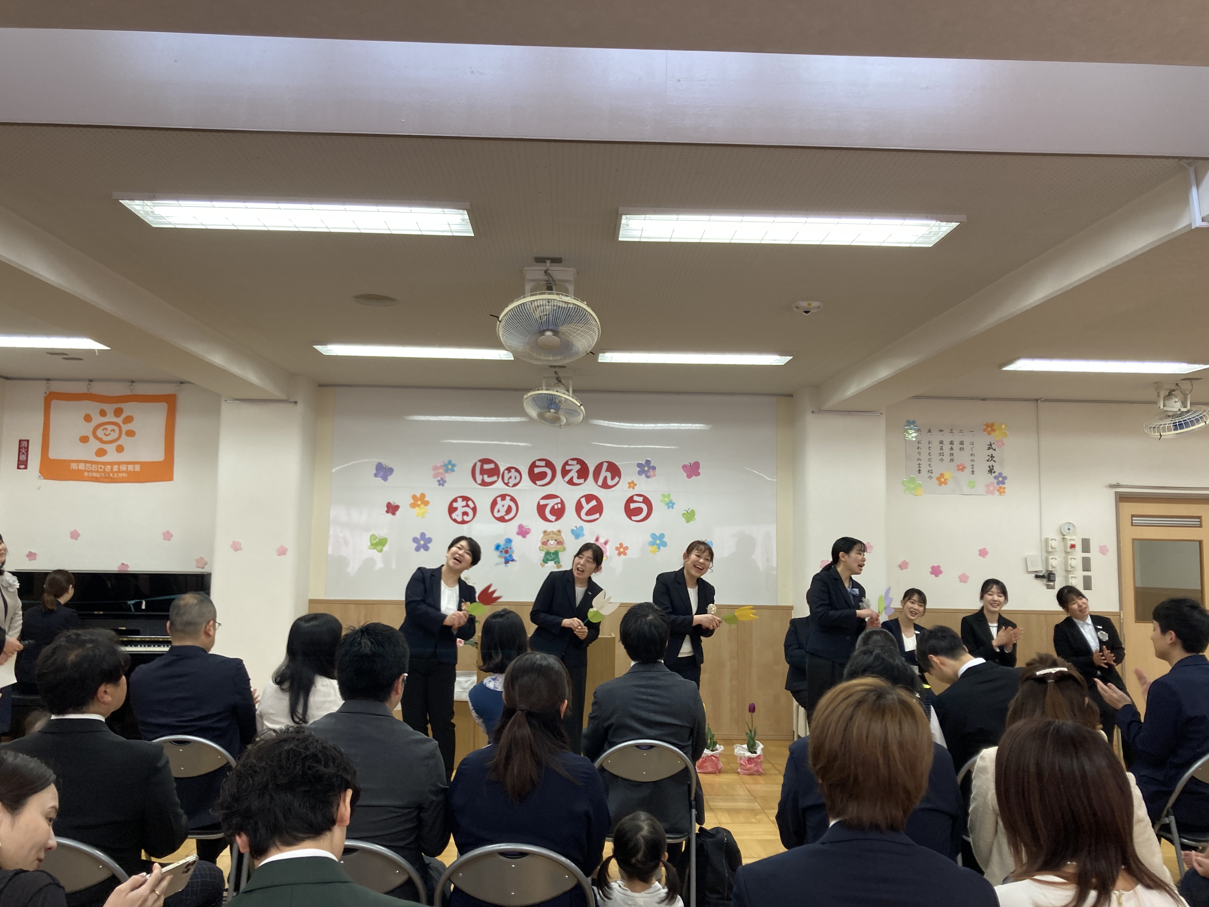 職員からのお楽しみでは、「しあわせならてをたたこう」「ミックスジュース」の手遊びをしてみんなで楽しみました。