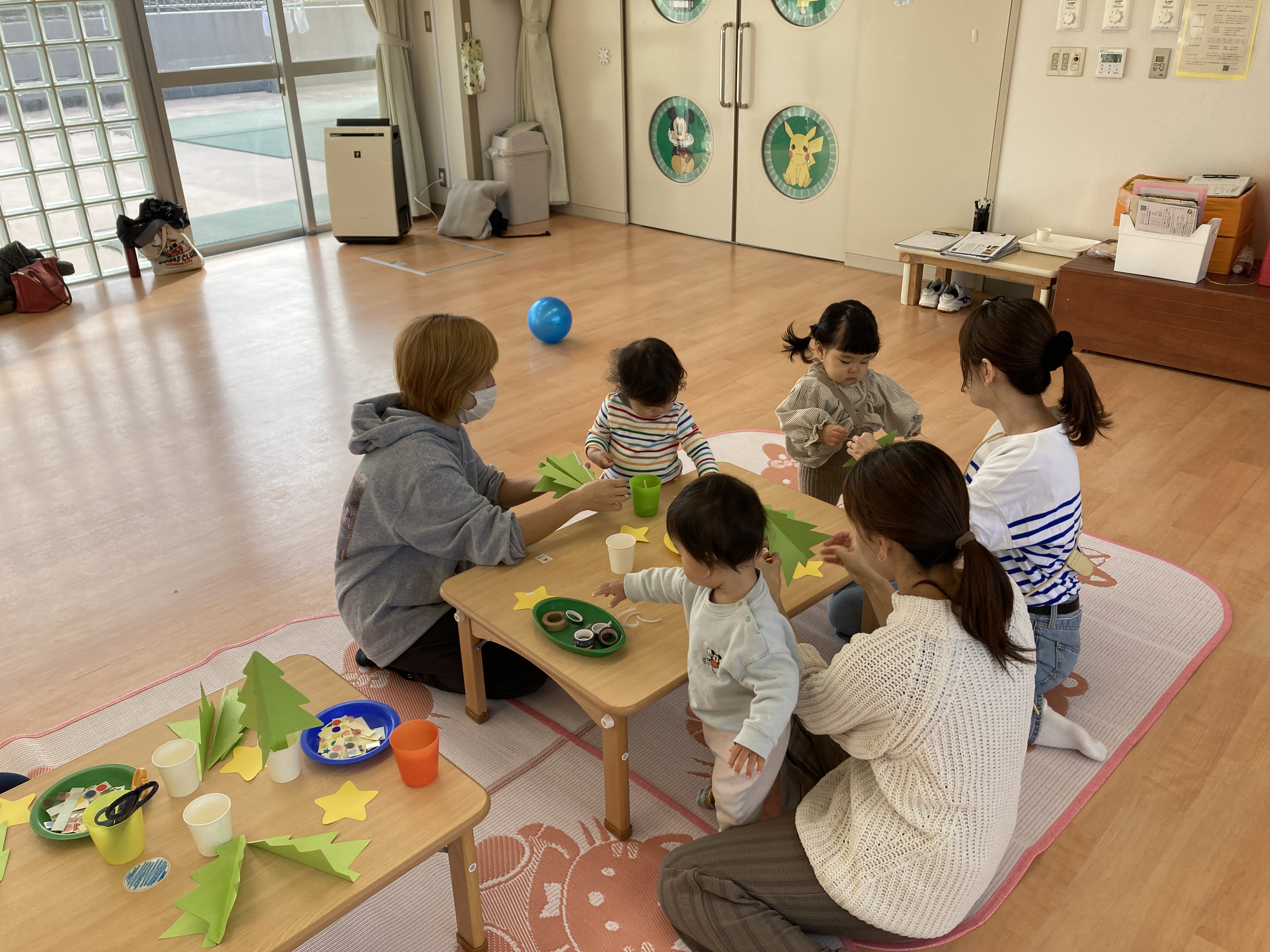 ホールへ入るなり、用意されていた制作物に興味を持って手を伸ばすお友達もいて嬉しく思いました。