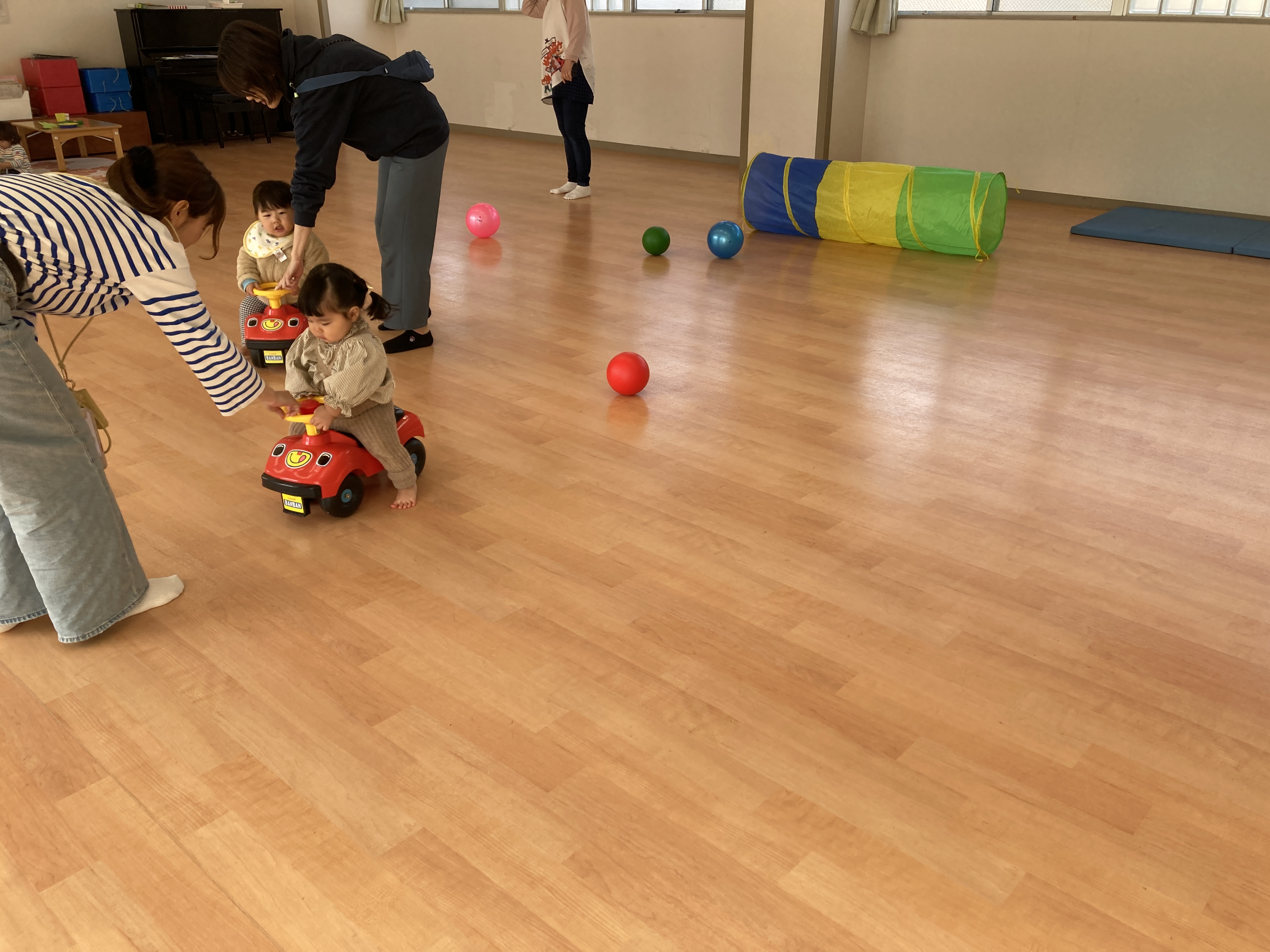 制作の後は、ボールやトンネル・コンビカーなどを用意し、