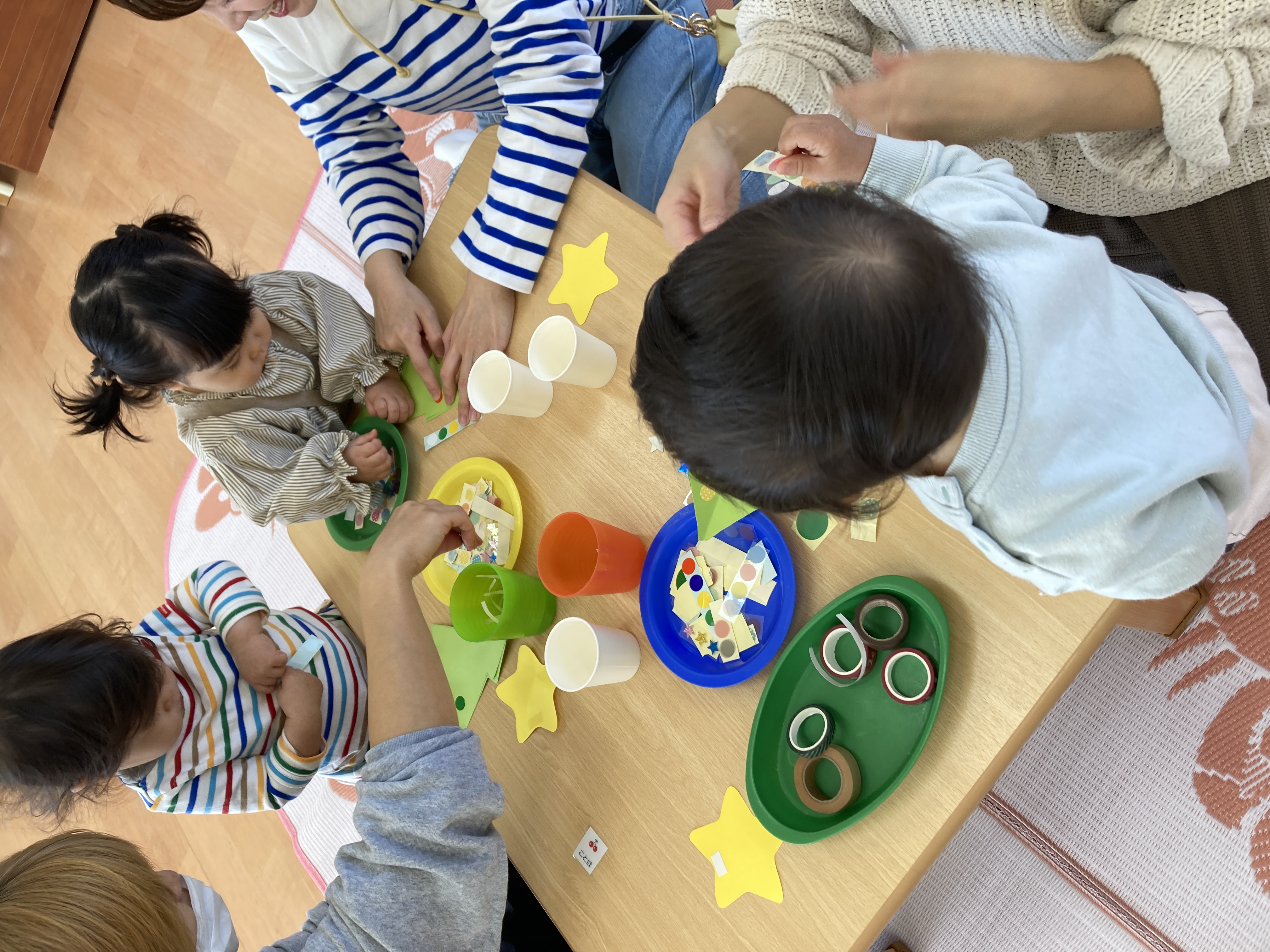 保護者の方と一緒にシール貼りを行いました。