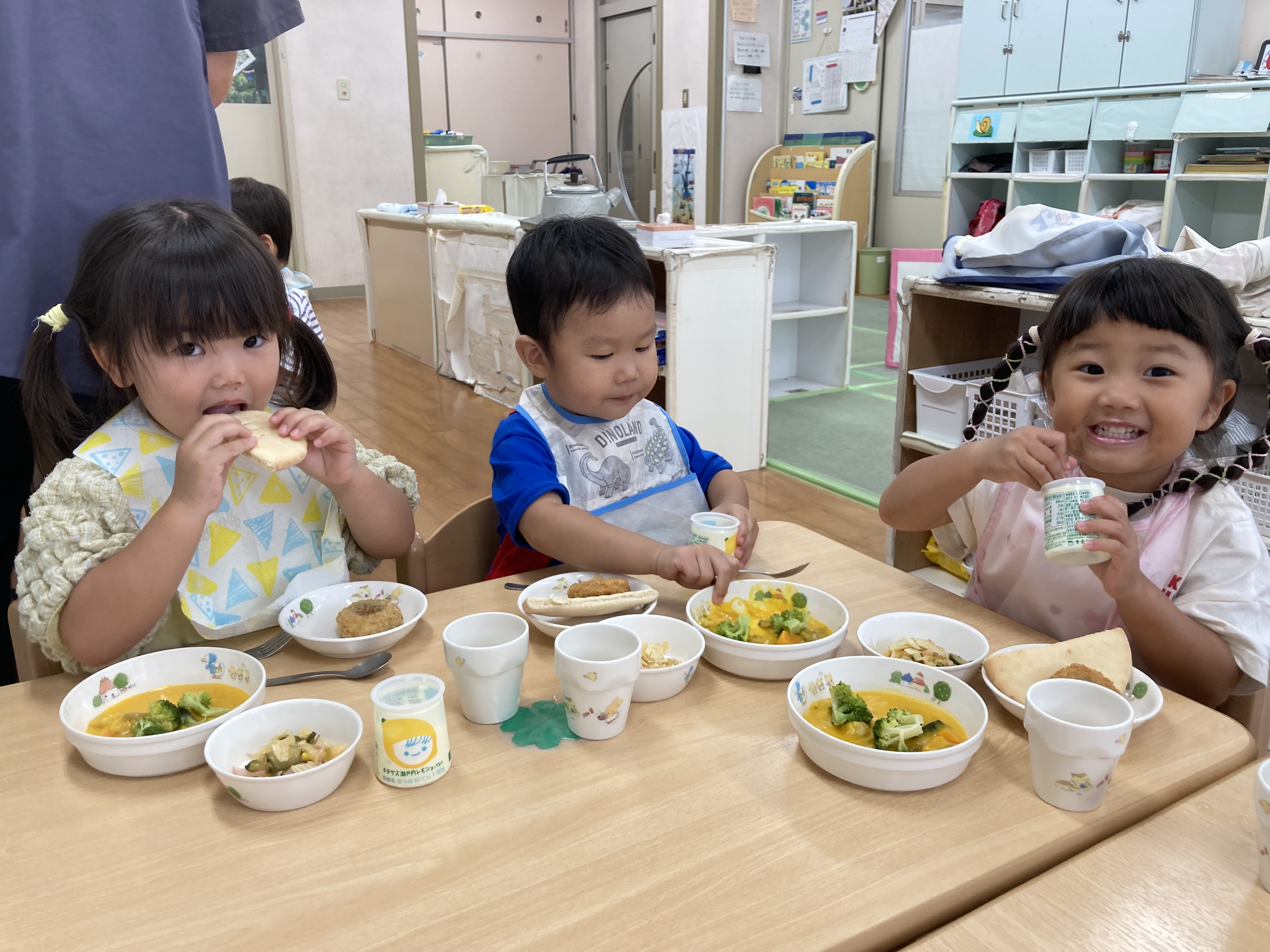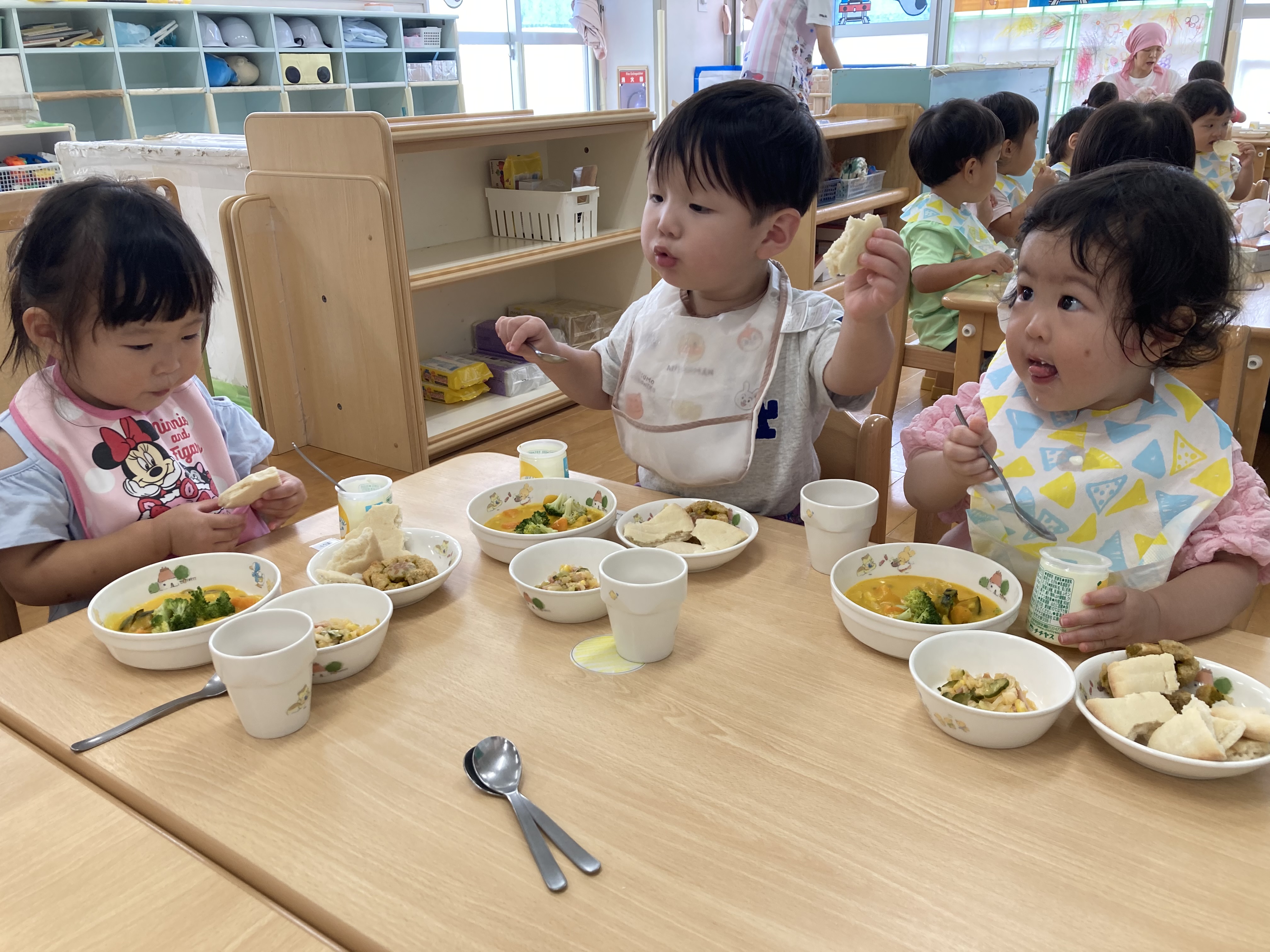 上手にコロッケをはさんで美味しそうに食べる子ども達でした。