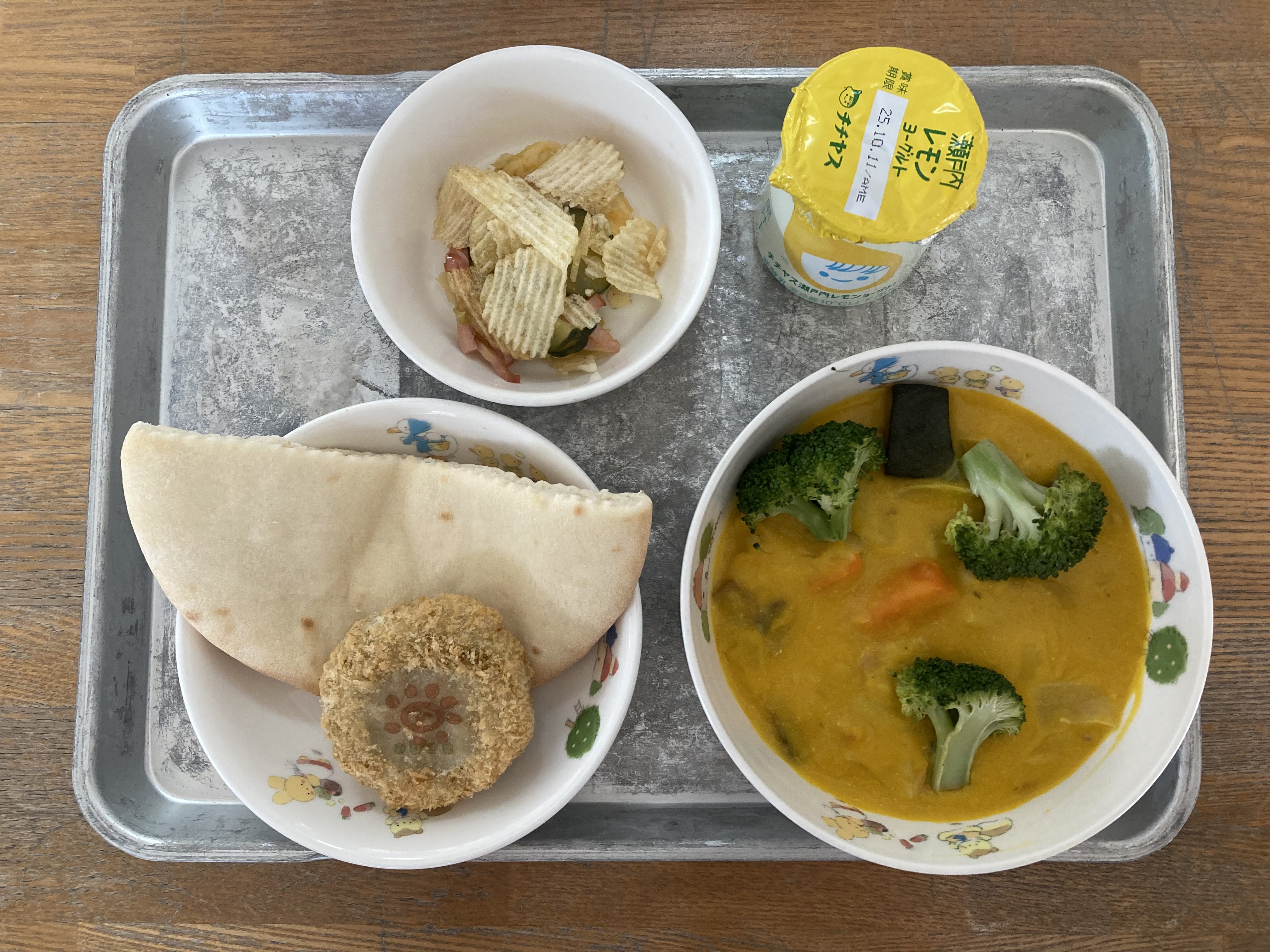 コロッケにはおひさまのイラストがあり、わくわくがいっぱいなメニューで喜んでいました!