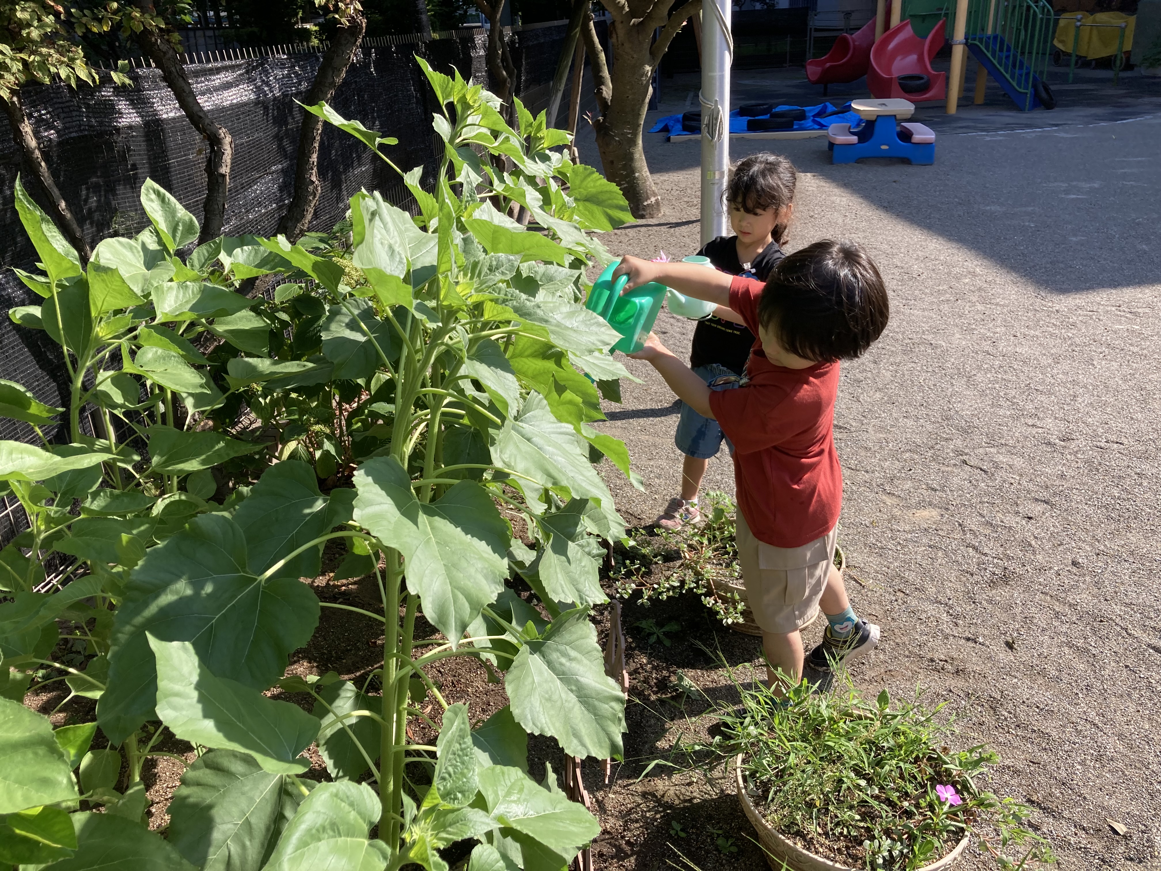 大きくなってきました!自分たちの身長より多くなり、お花が咲くのが楽しみでした。