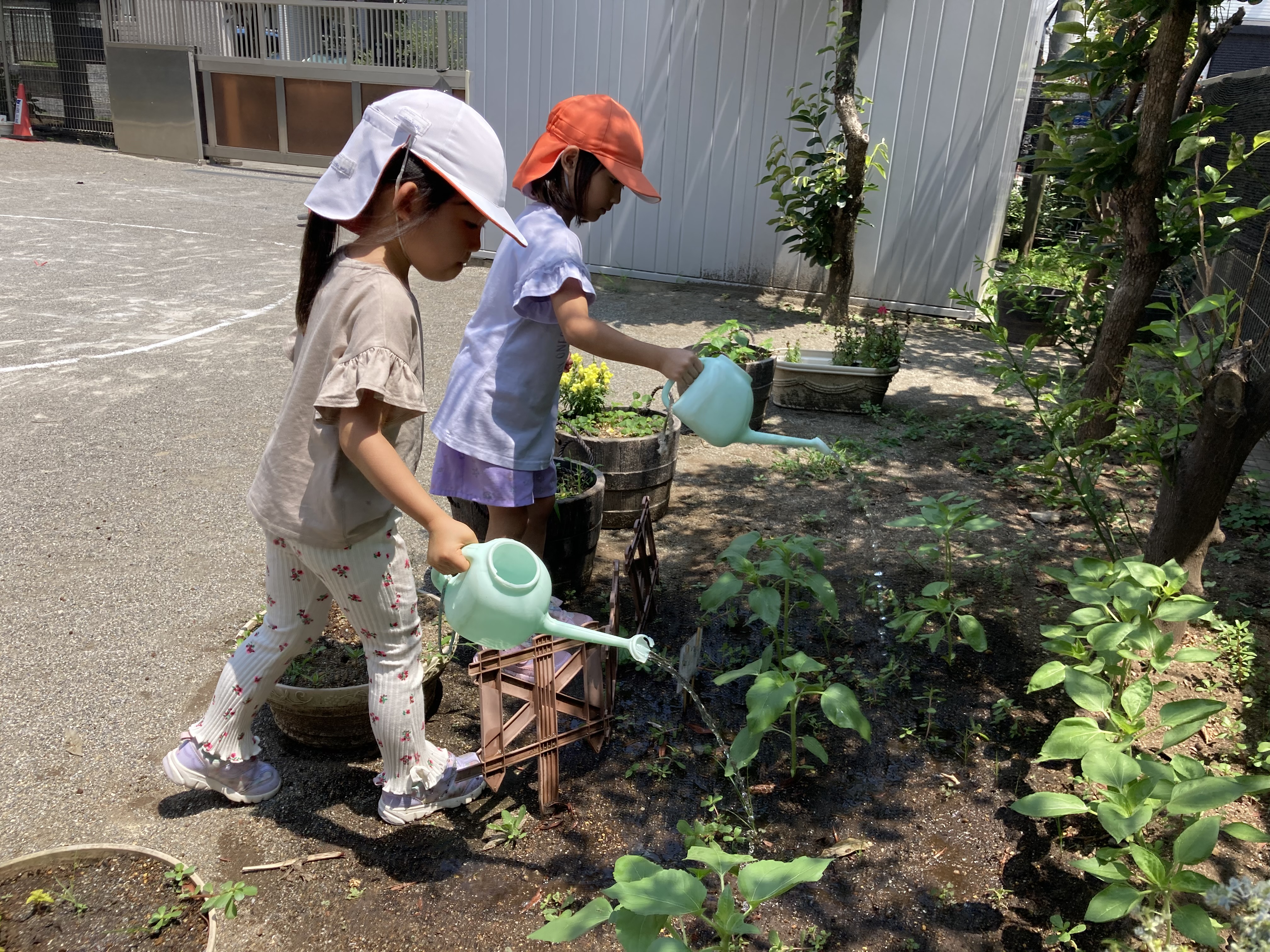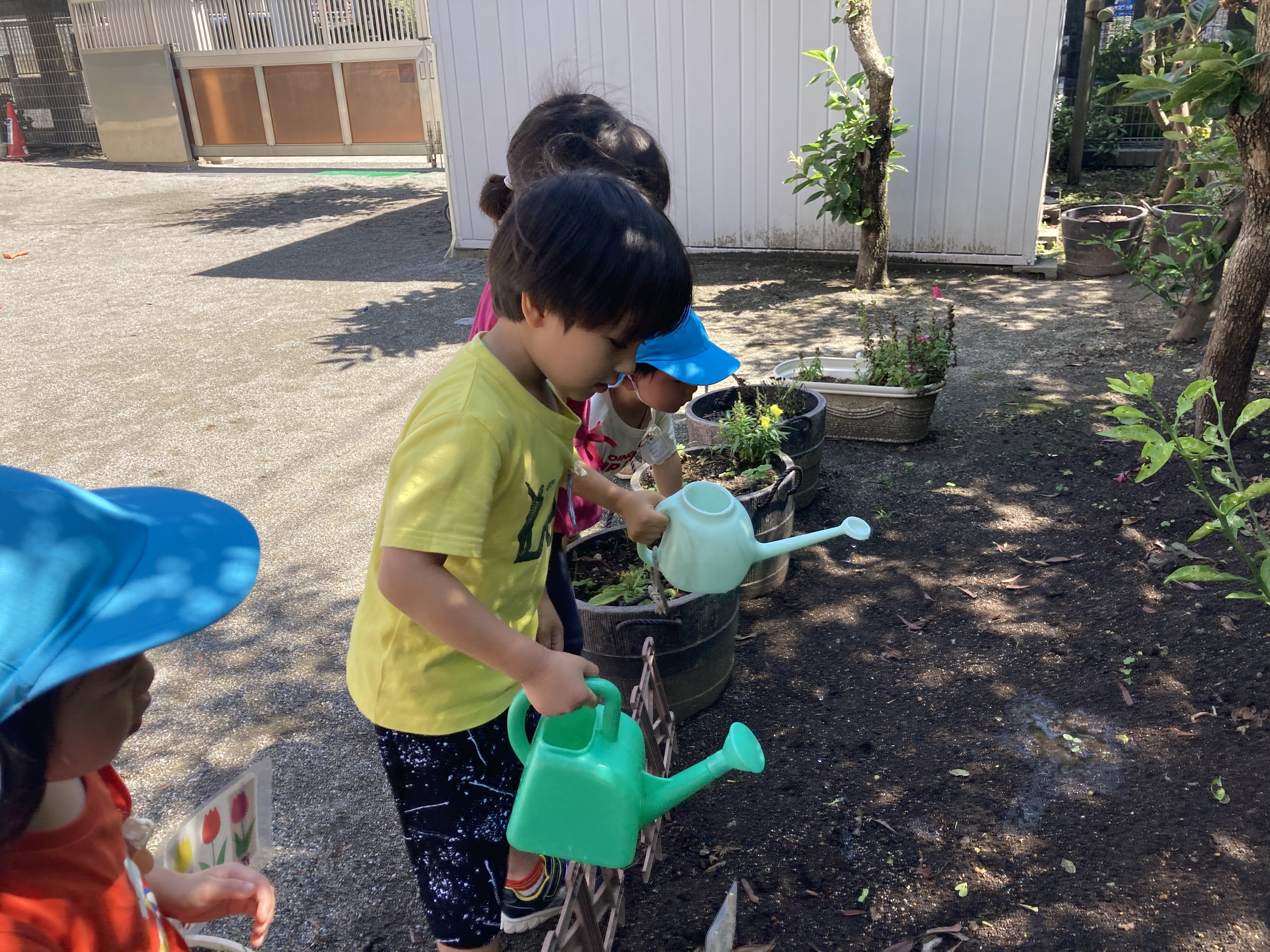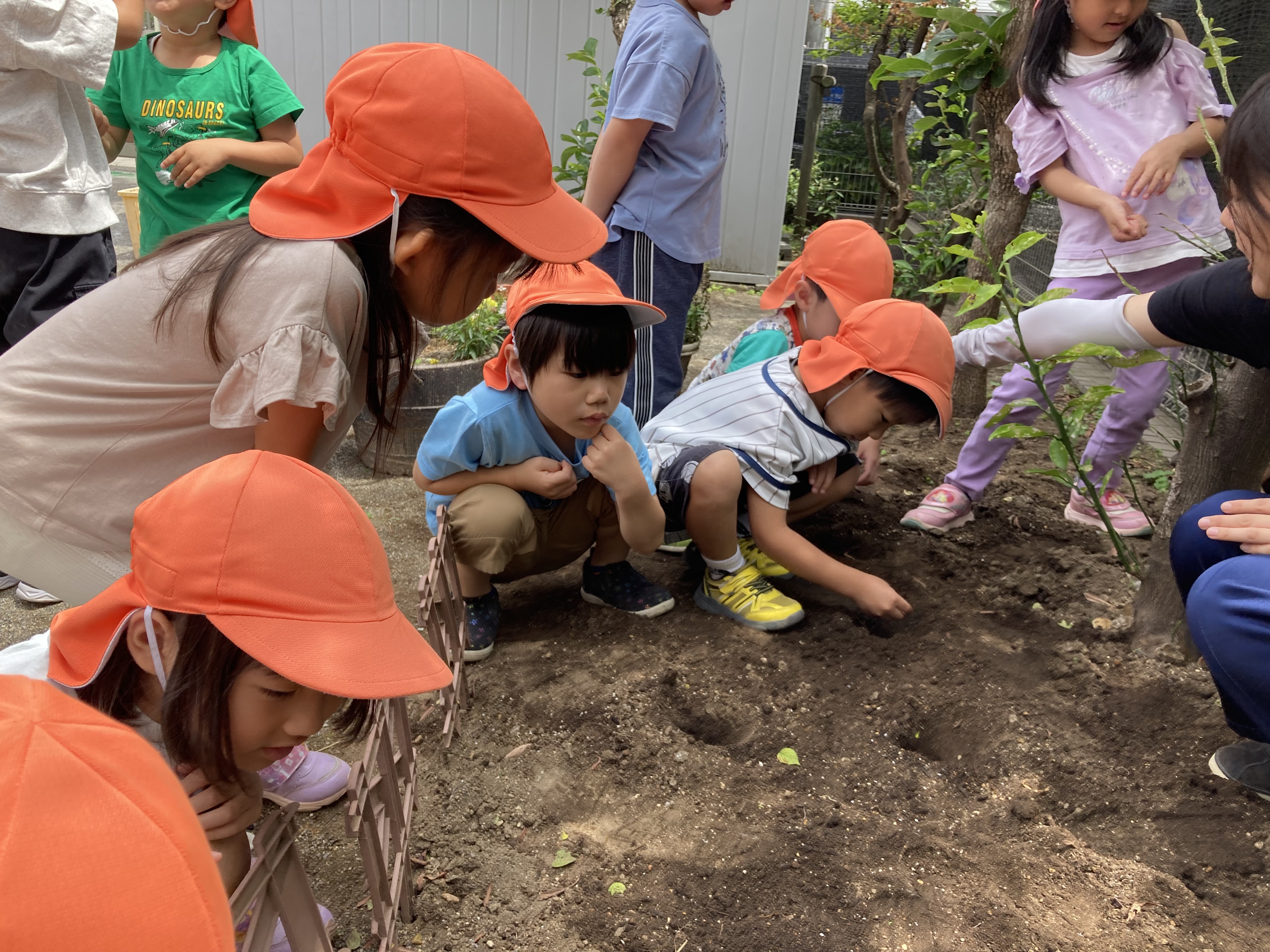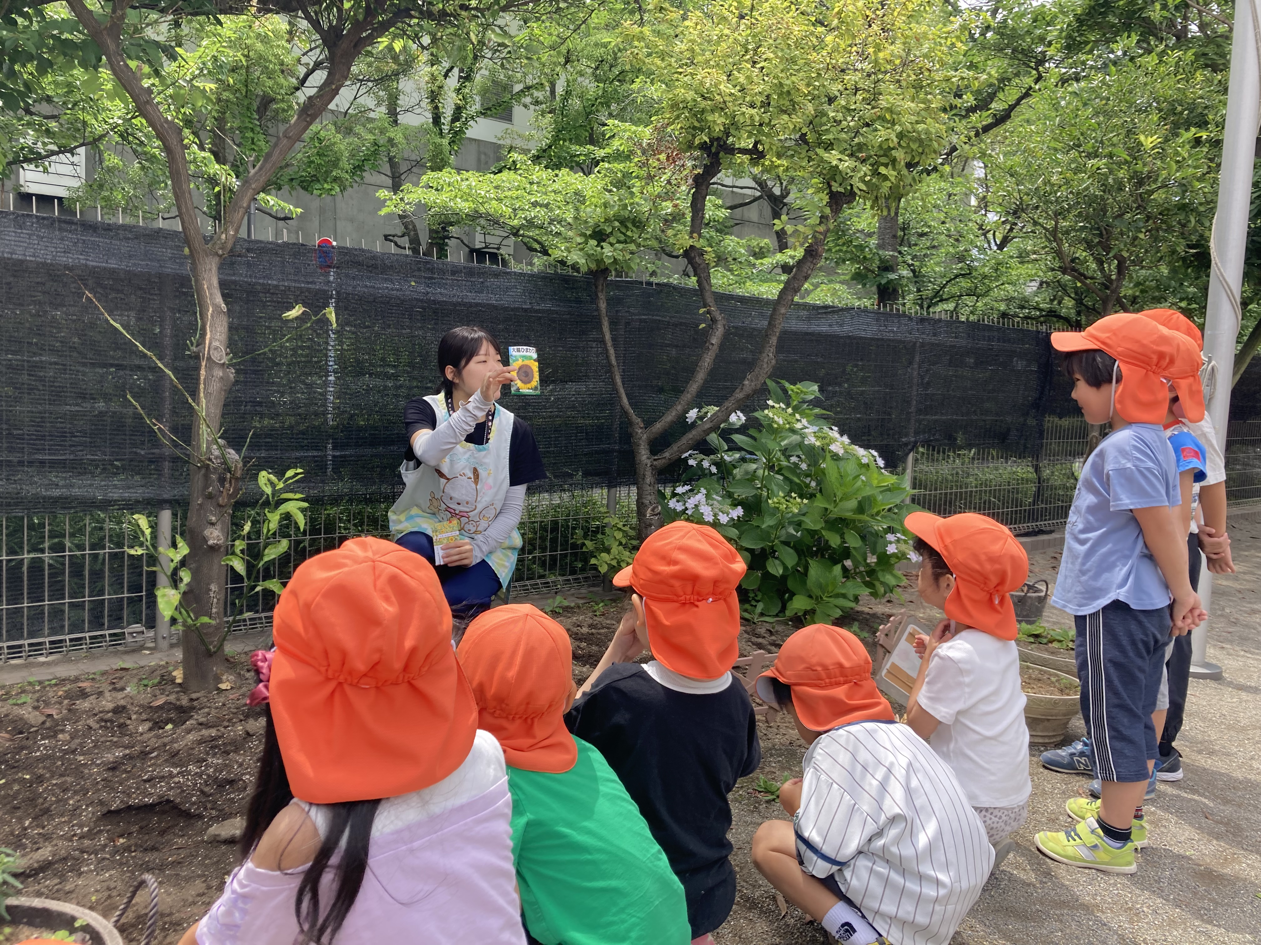 南篠崎おひさま保育園では、ひまわり組が代表で6月9日に種植えをしました。