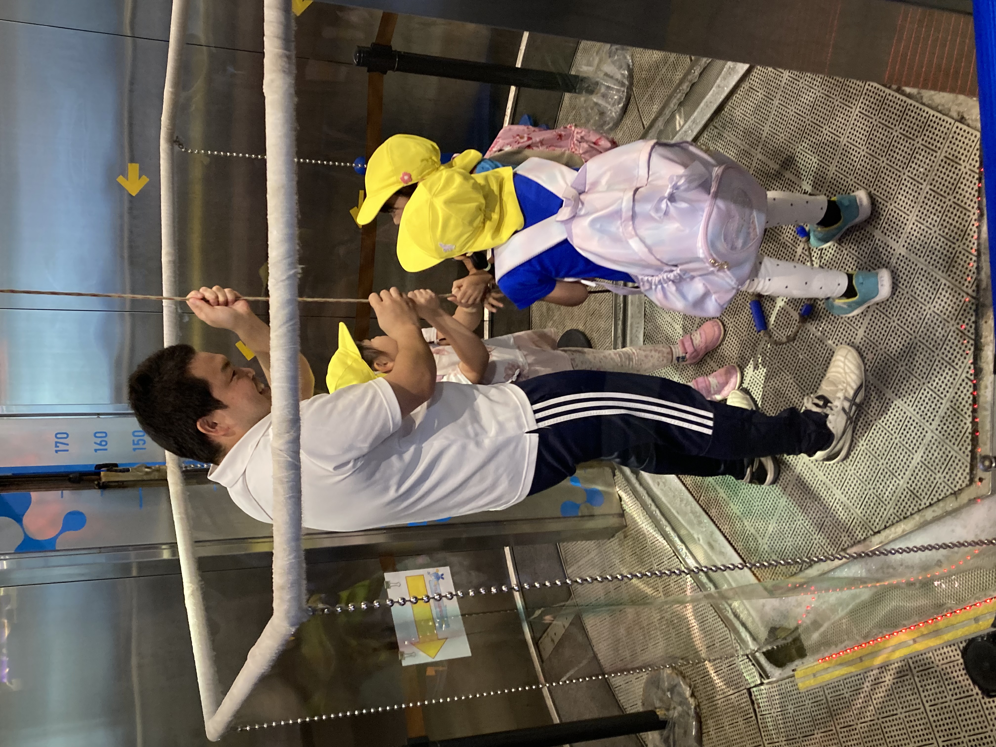 4歳こすもす組と5歳ひまわり組はバスに乗り水の科学館と若洲海浜公園へ遠足に行きました。