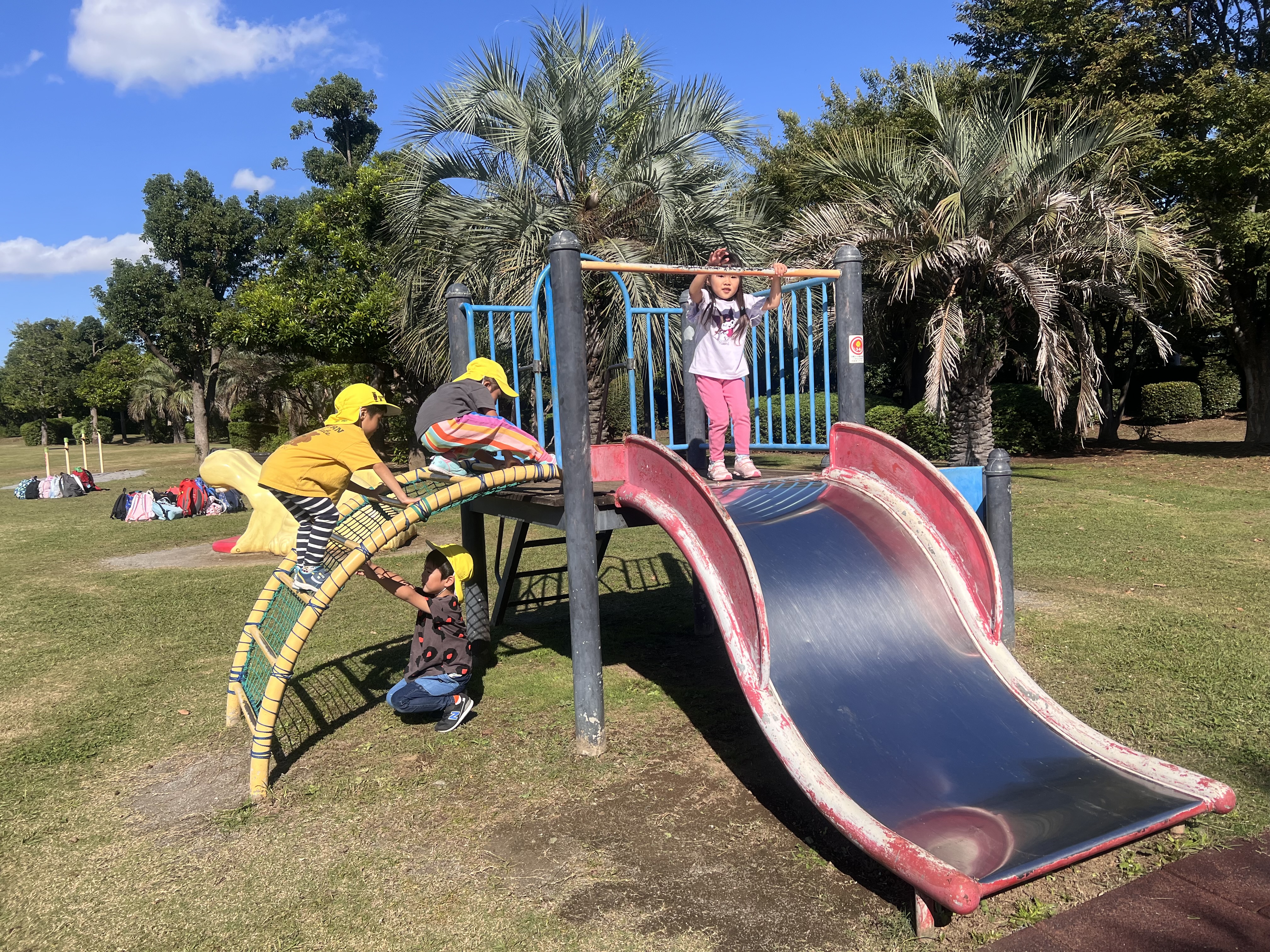 若洲海浜公園に行き、お弁当を食べました。作ってもらったお弁当を喜びお友だちや保育士に見せ合いながら楽しい雰囲気の中、食事をしていましたよ。食事の後は、遊具や広場で身体を動かしたくさん遊びました。