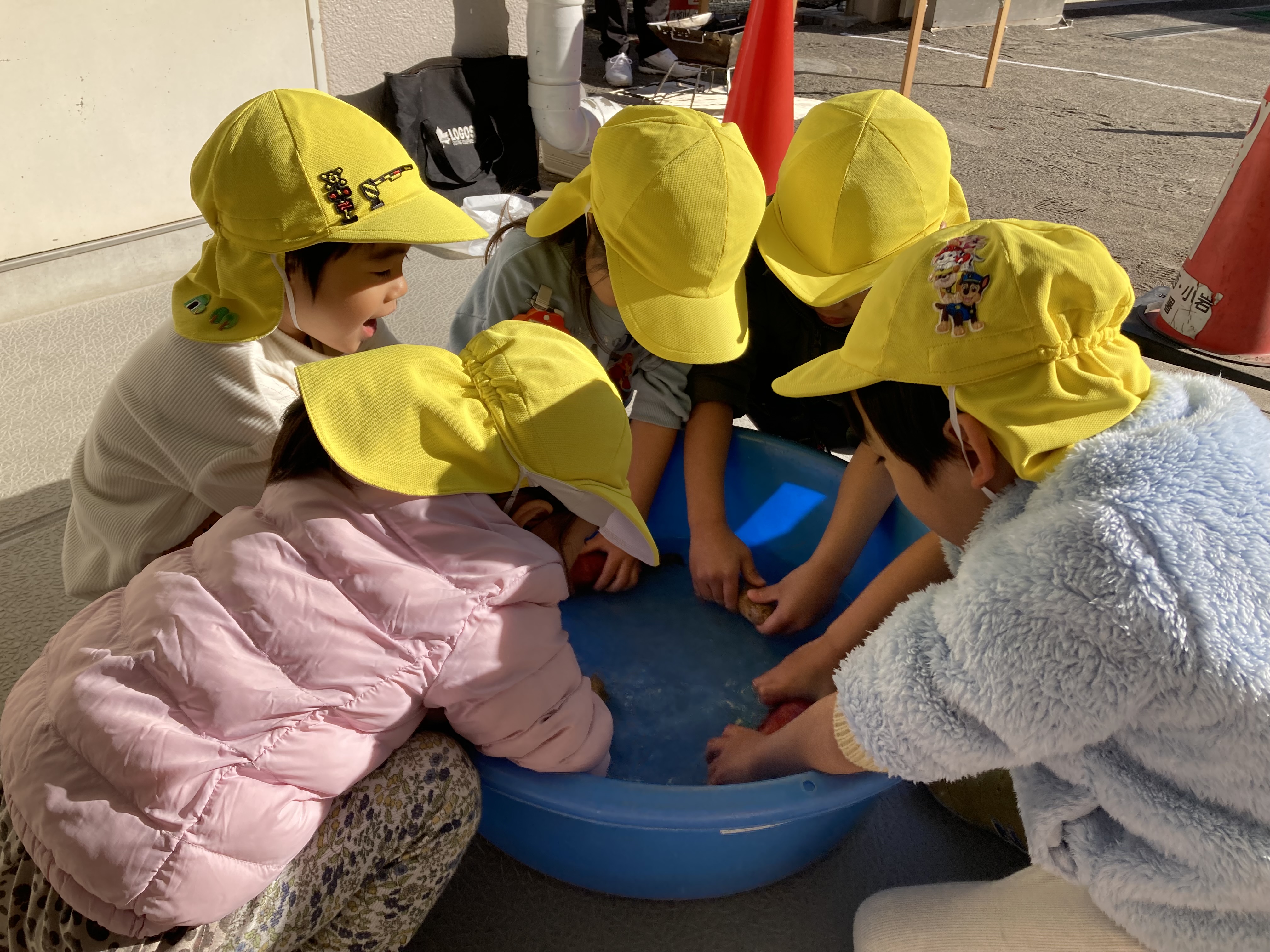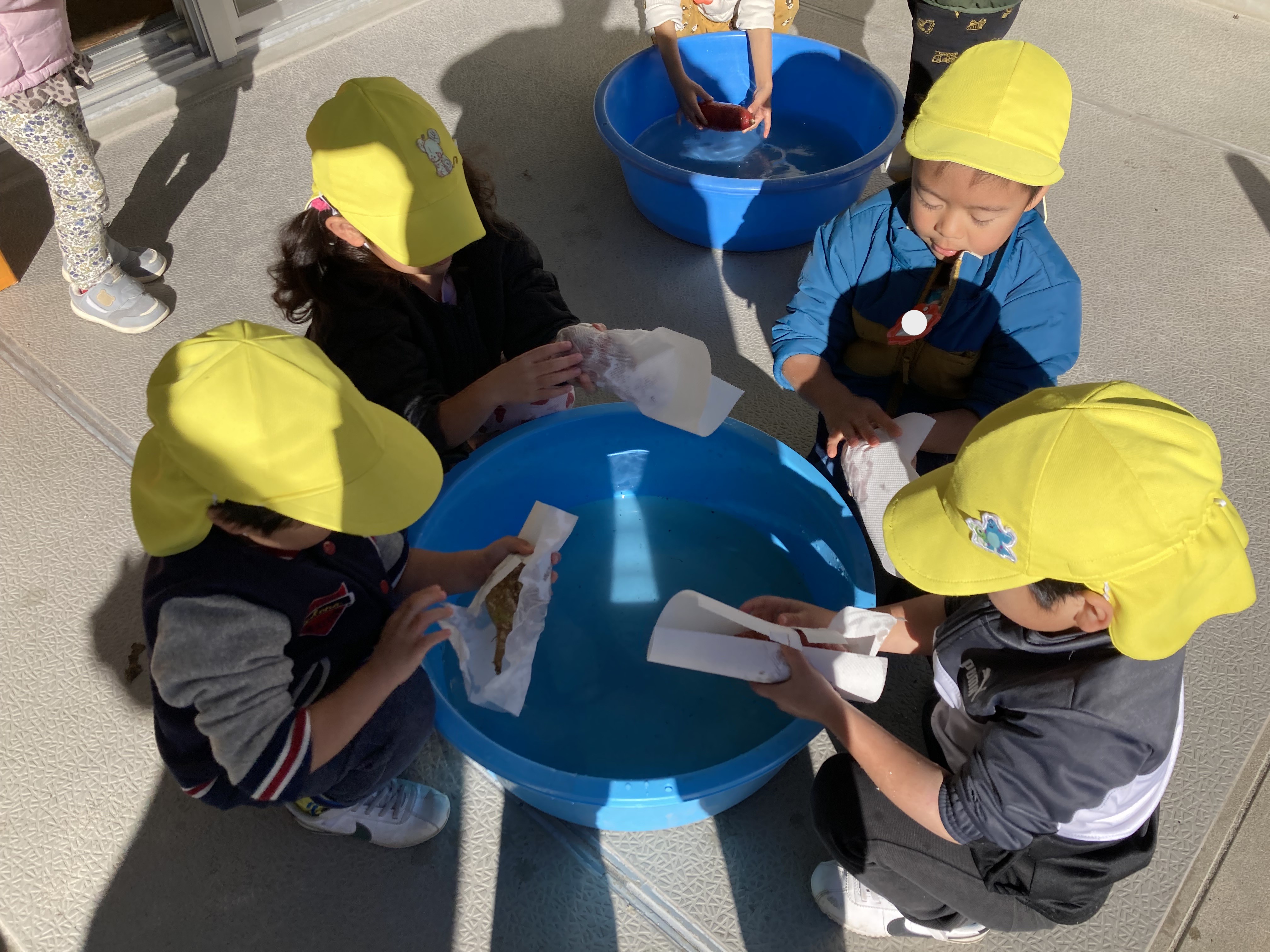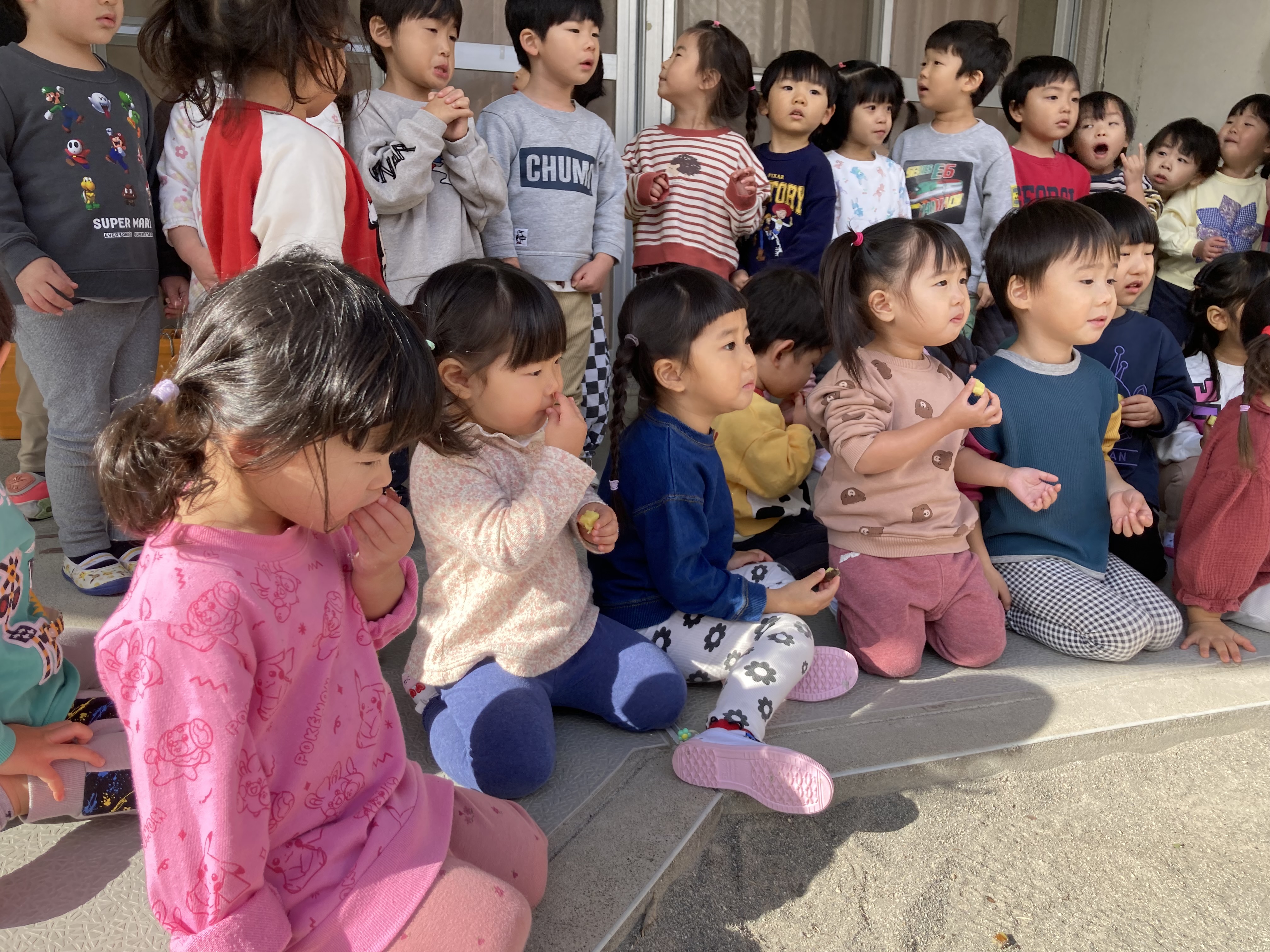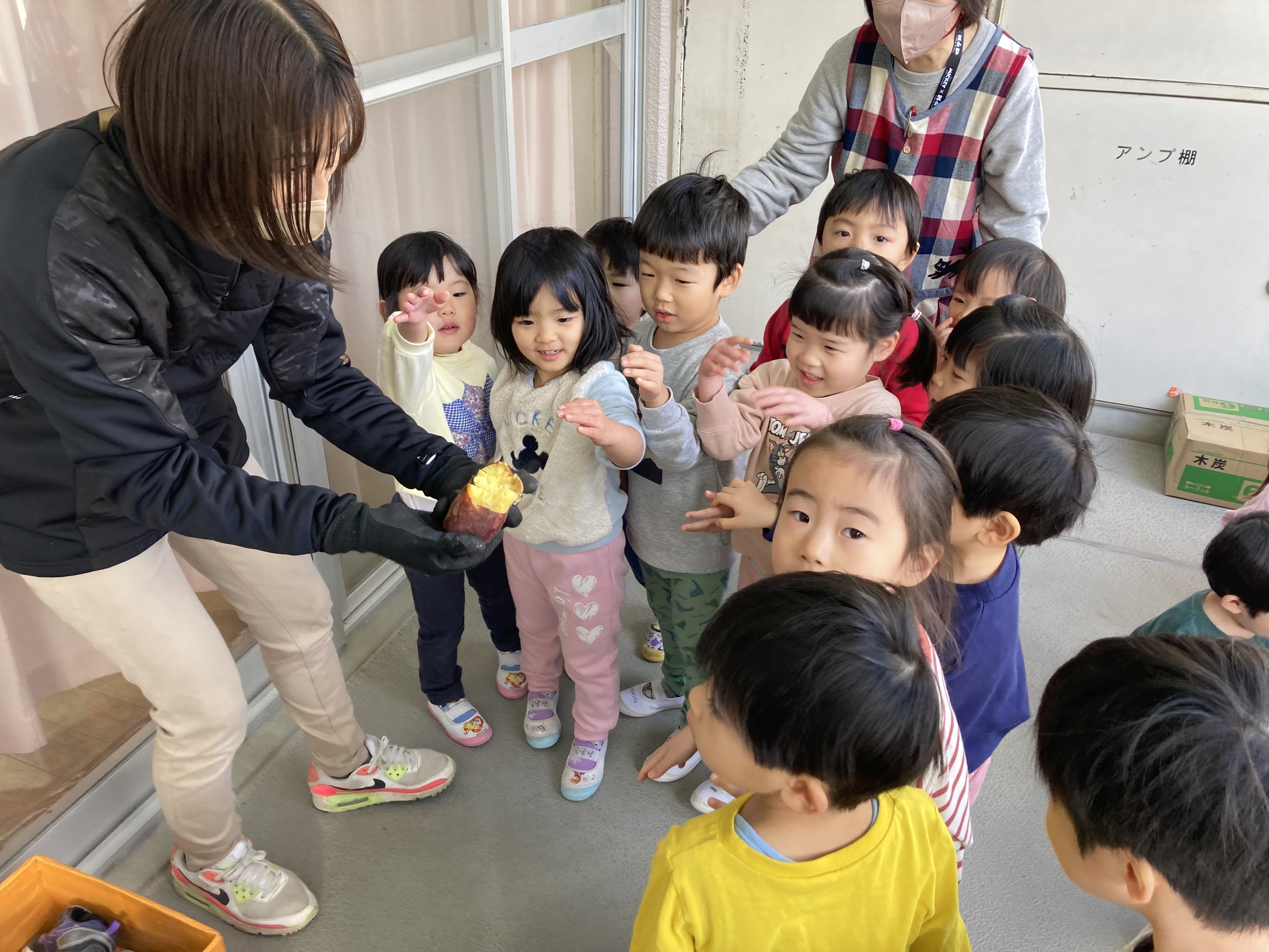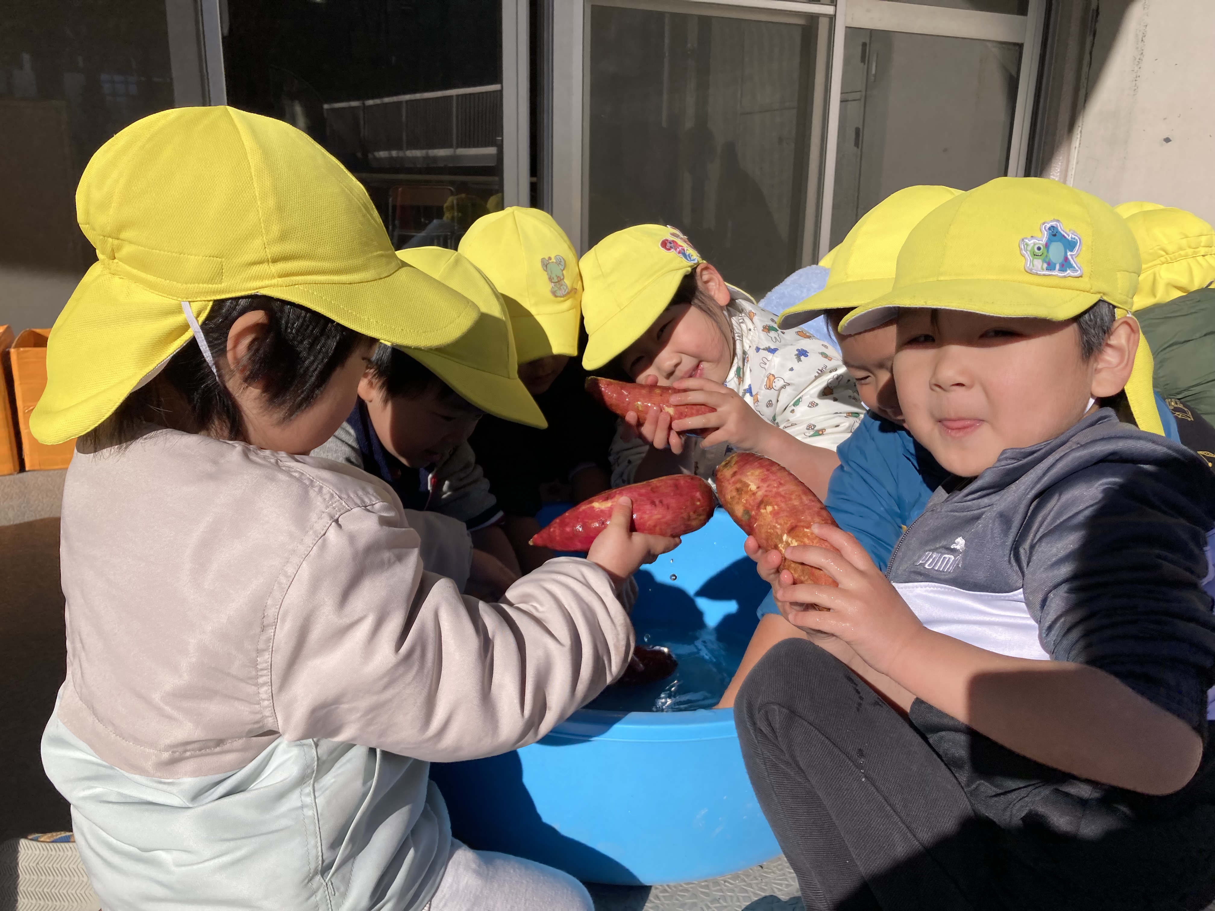 保育園で育てたさつまいもと、こすもす組がスーパーで買ったさつまいもを