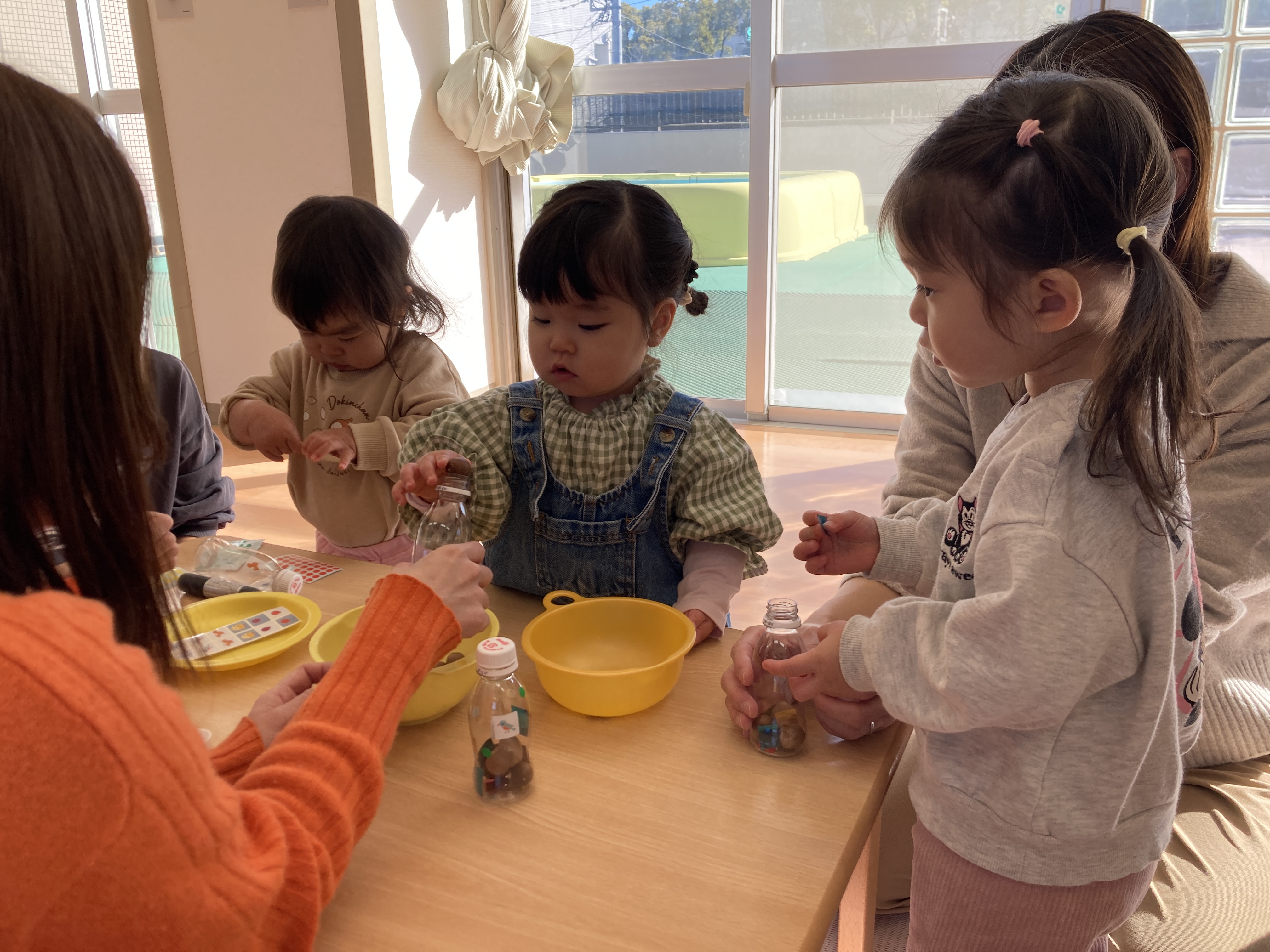 好きなどんぐりを選ぶと、落とさないように丁寧に入れることができていました。