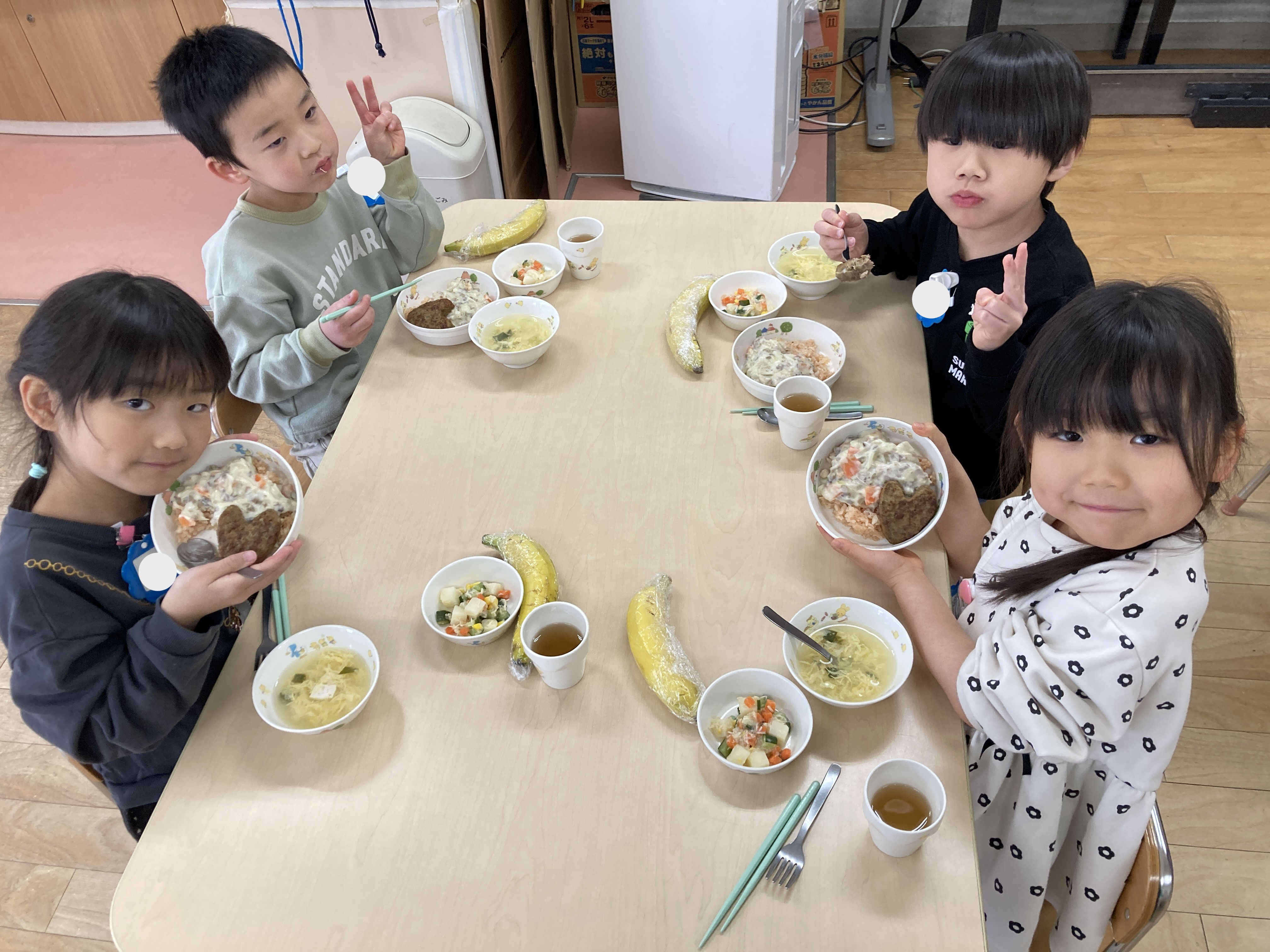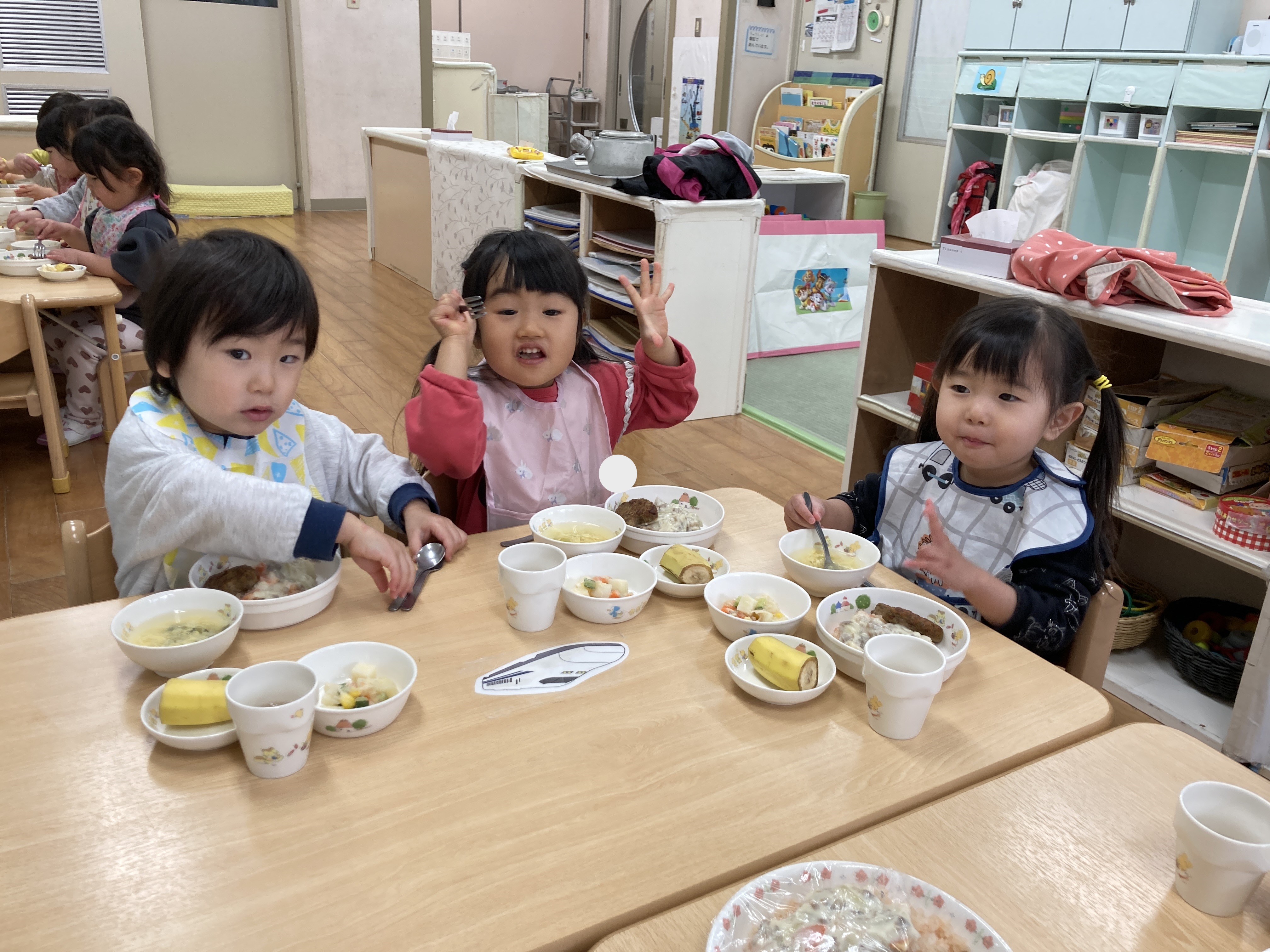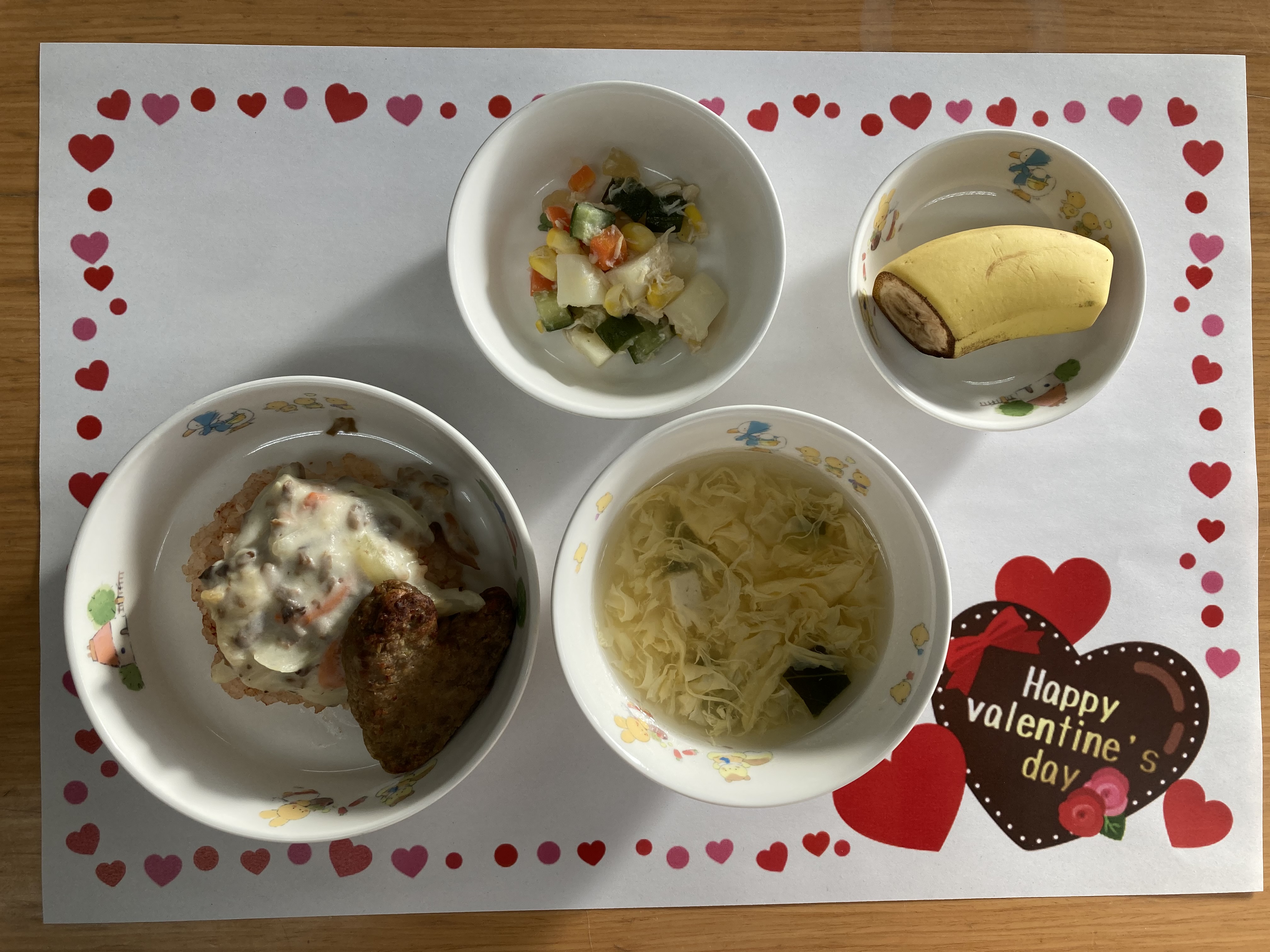 ハートの形のハンバーグを見て「かわいい」と喜んでいました。
