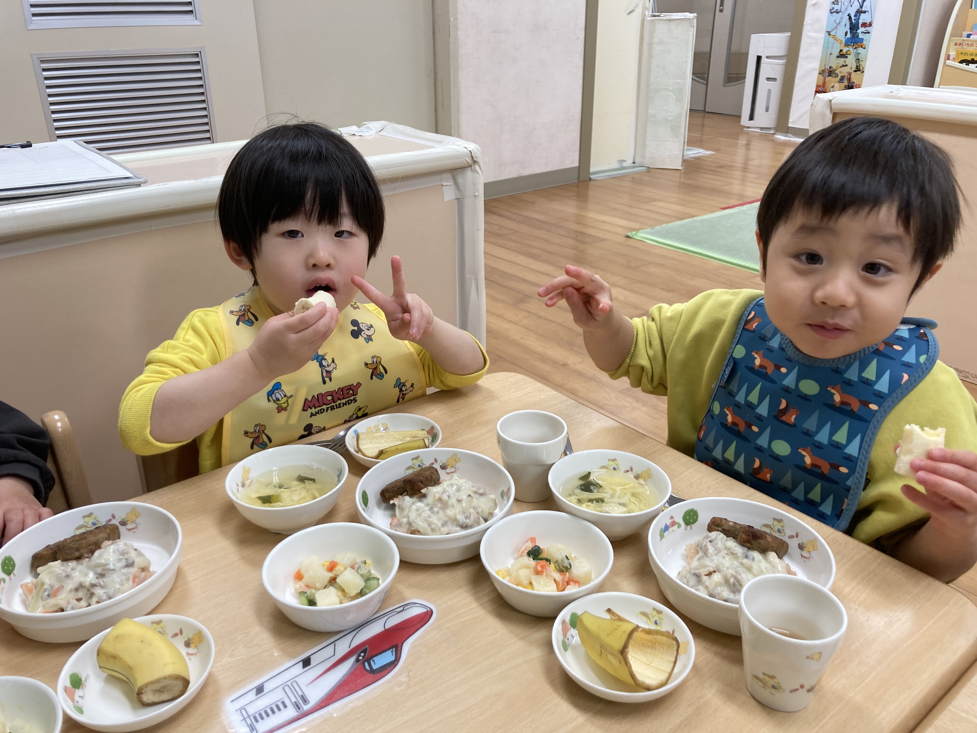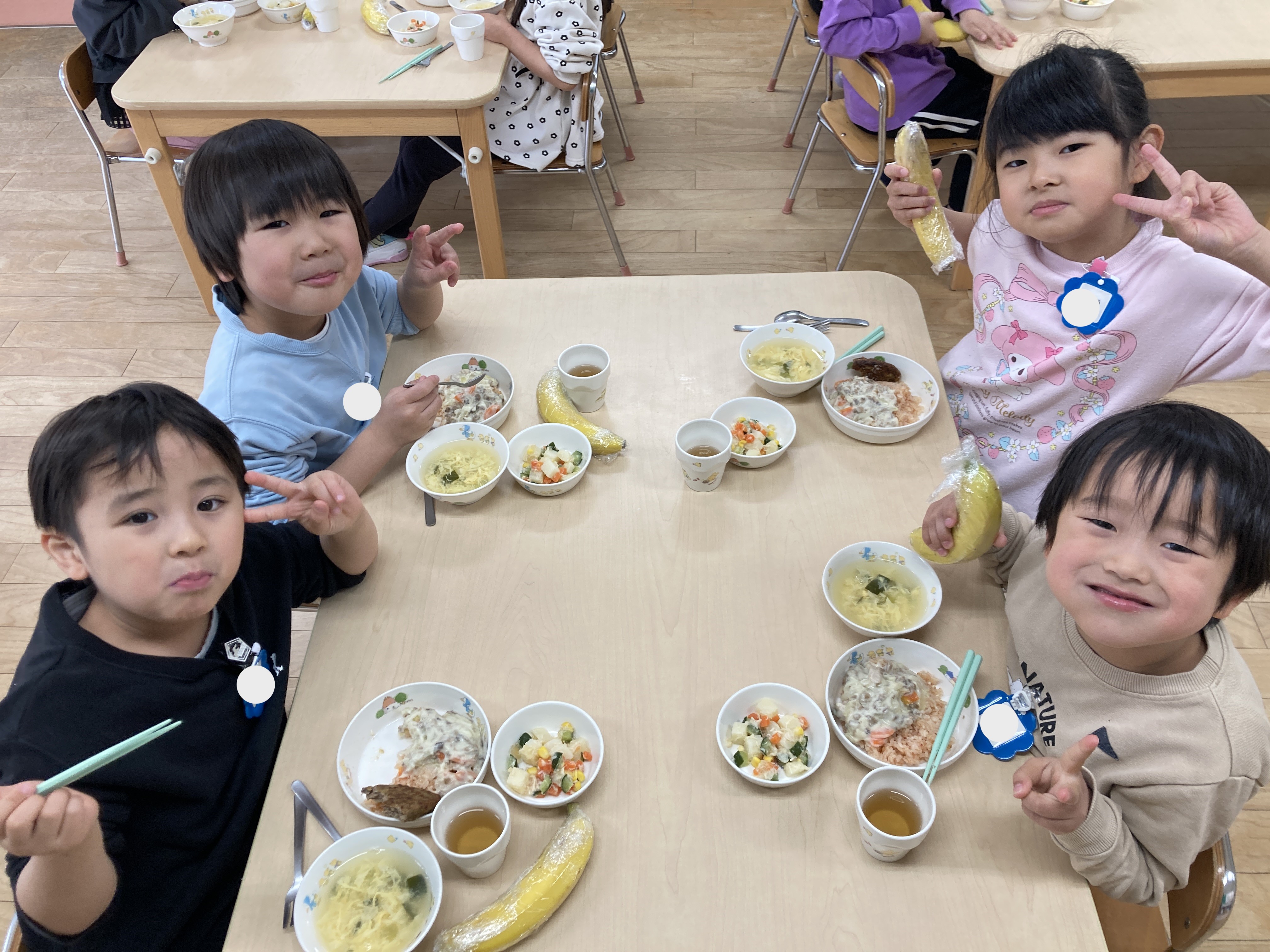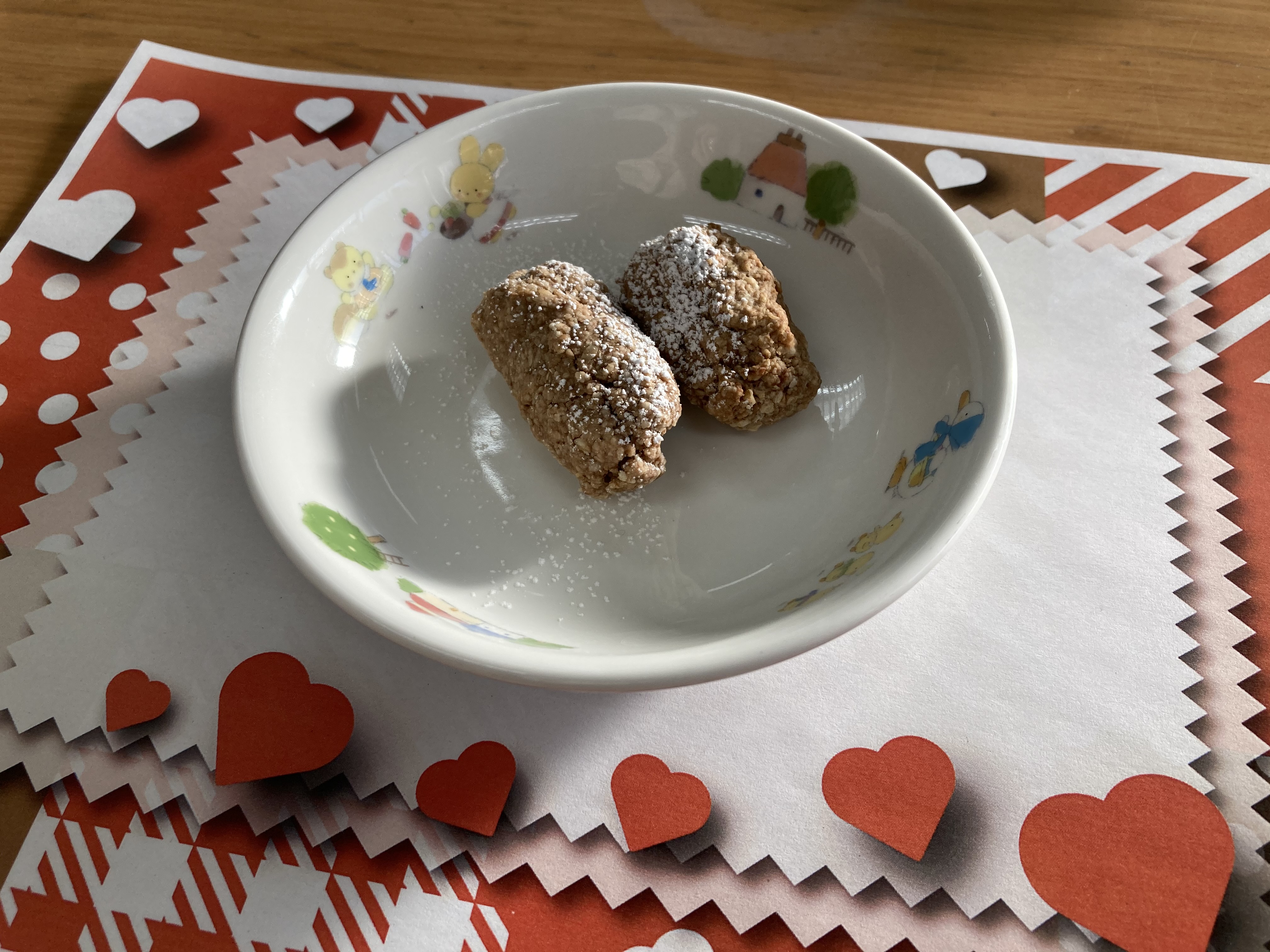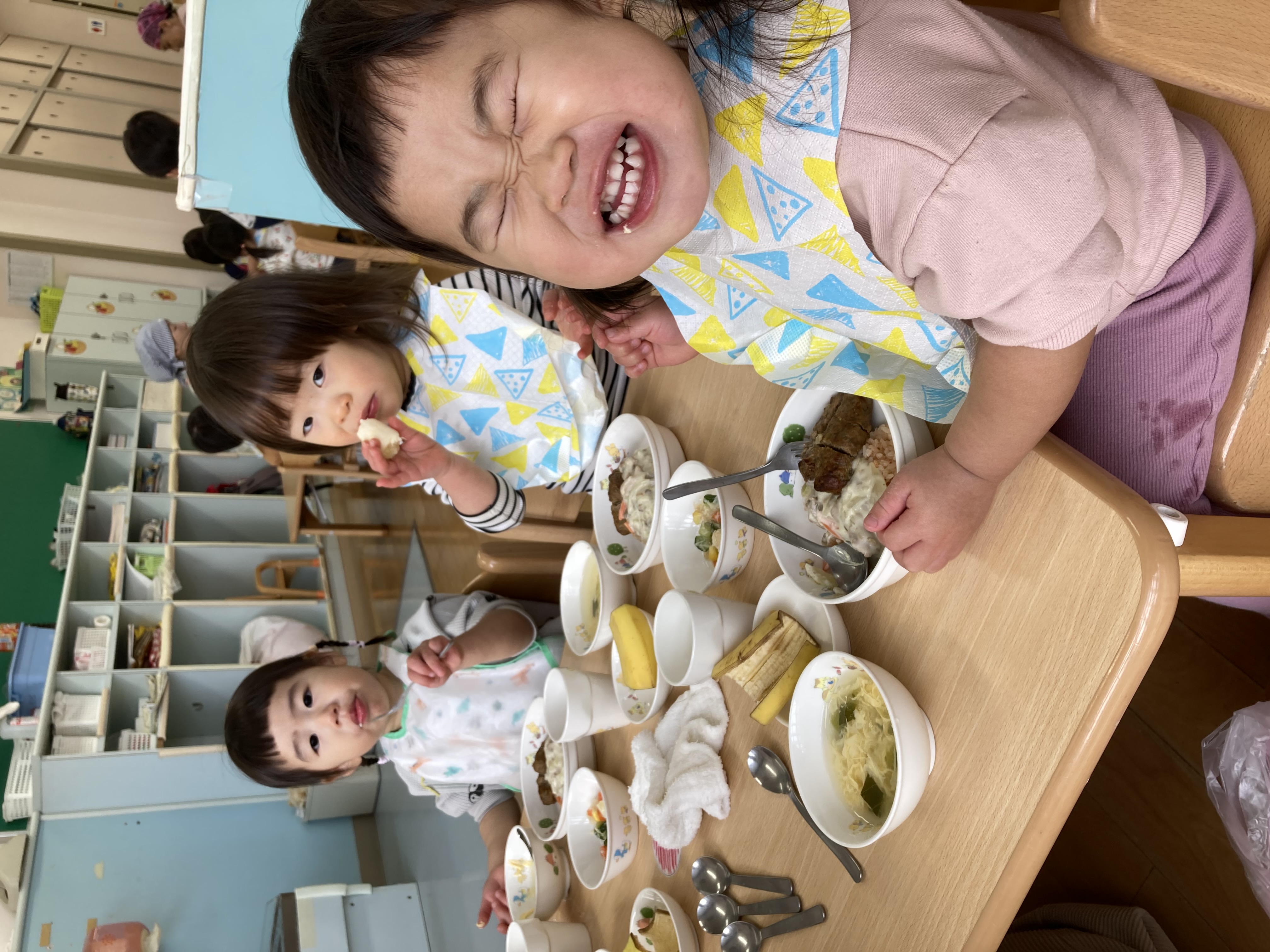 ハートの形のハンバーグを見て「かわいい」と喜んでいました。
