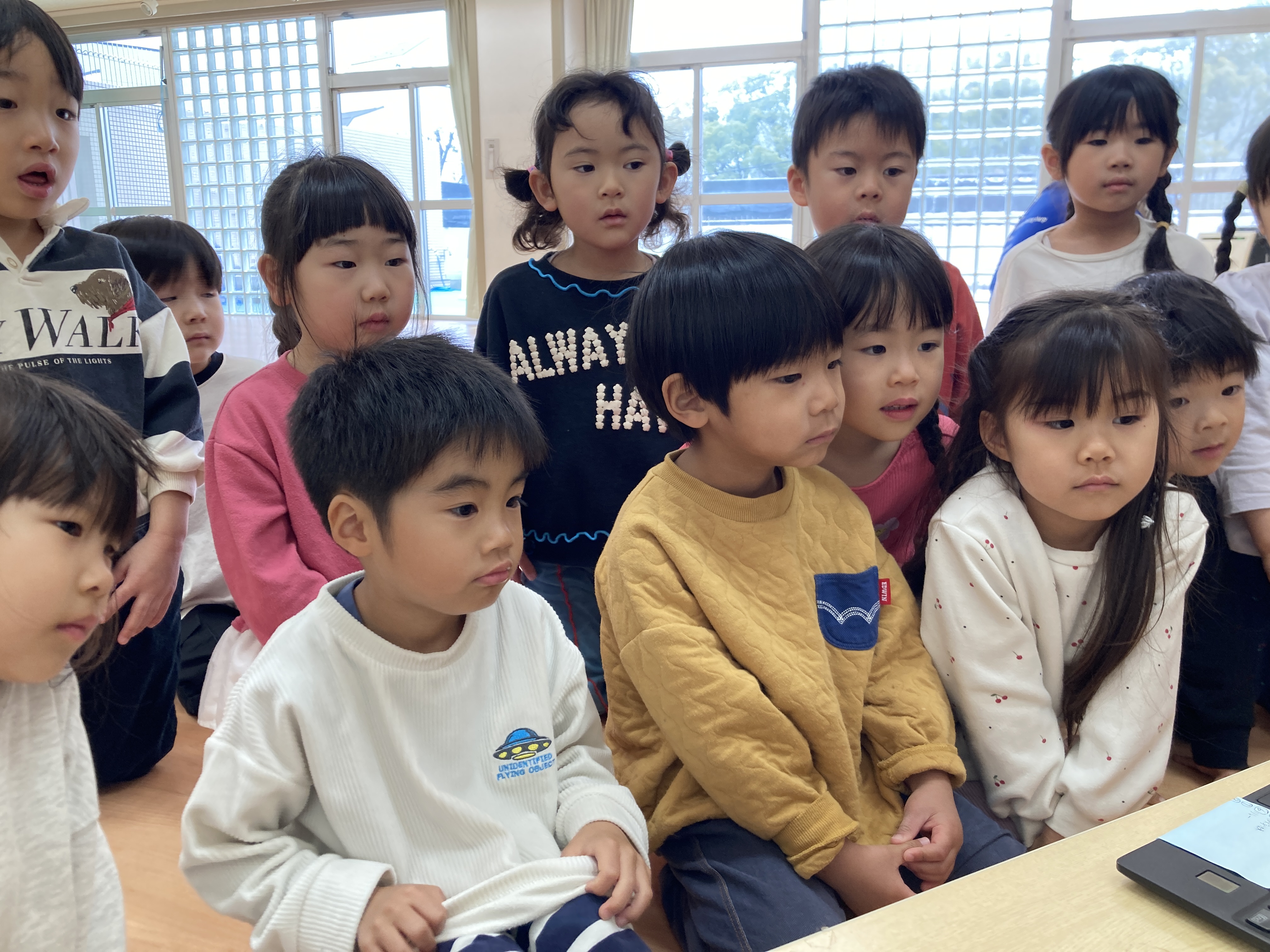手を振ったり、画面に近づいてお友達を覗き込む姿が見られました。