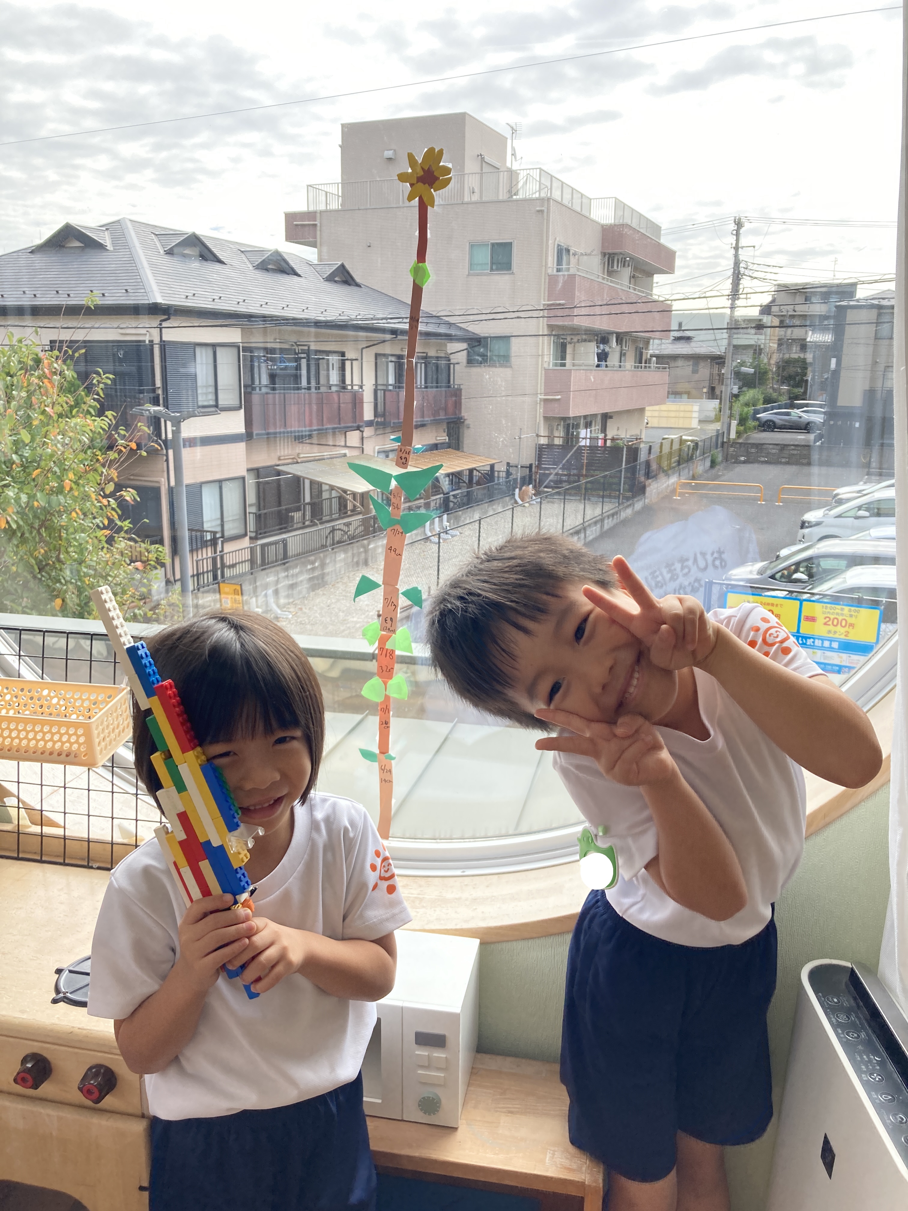 「かわいいね。」「10月でも咲くんだね♪」と子どもたち。