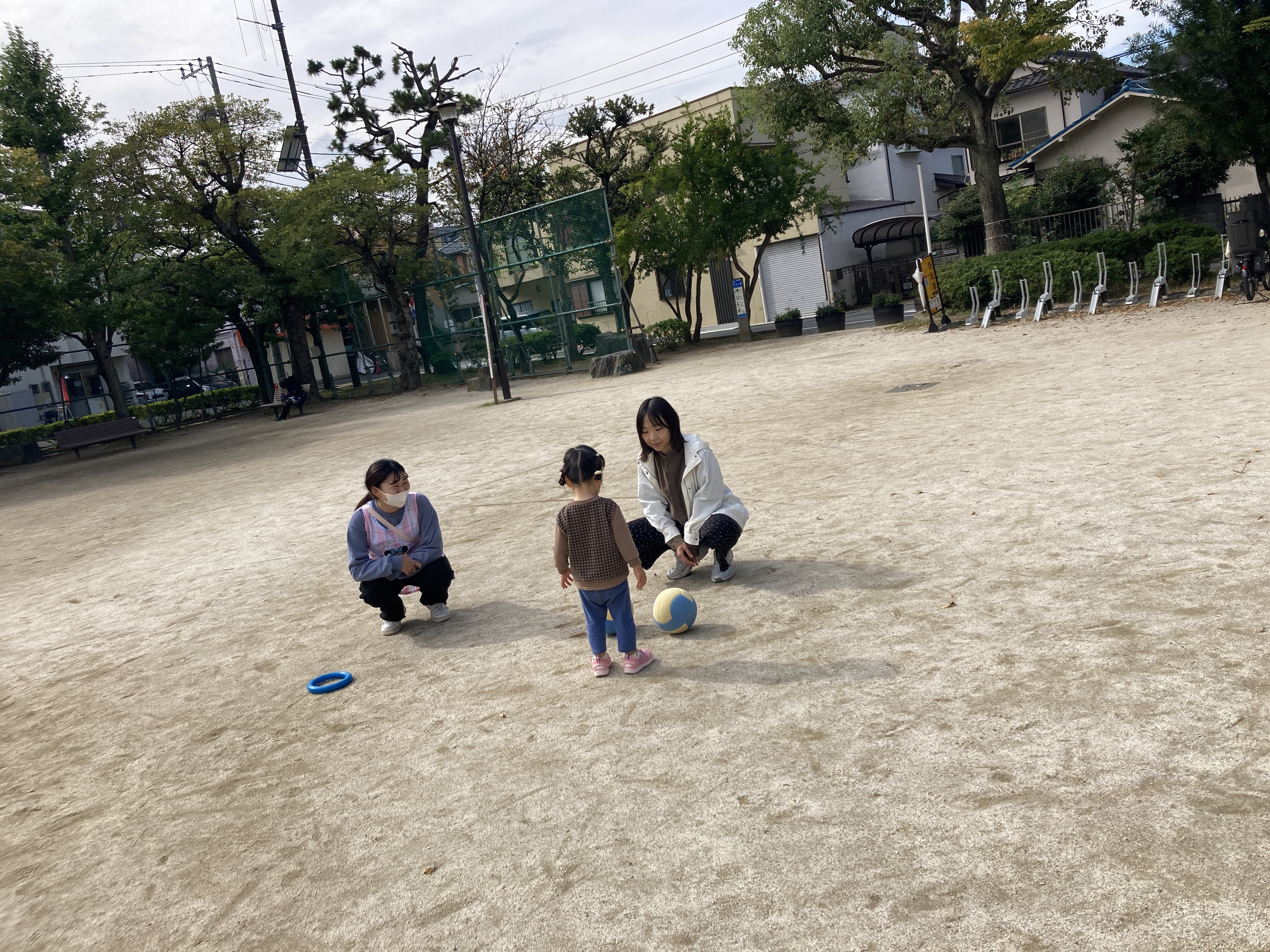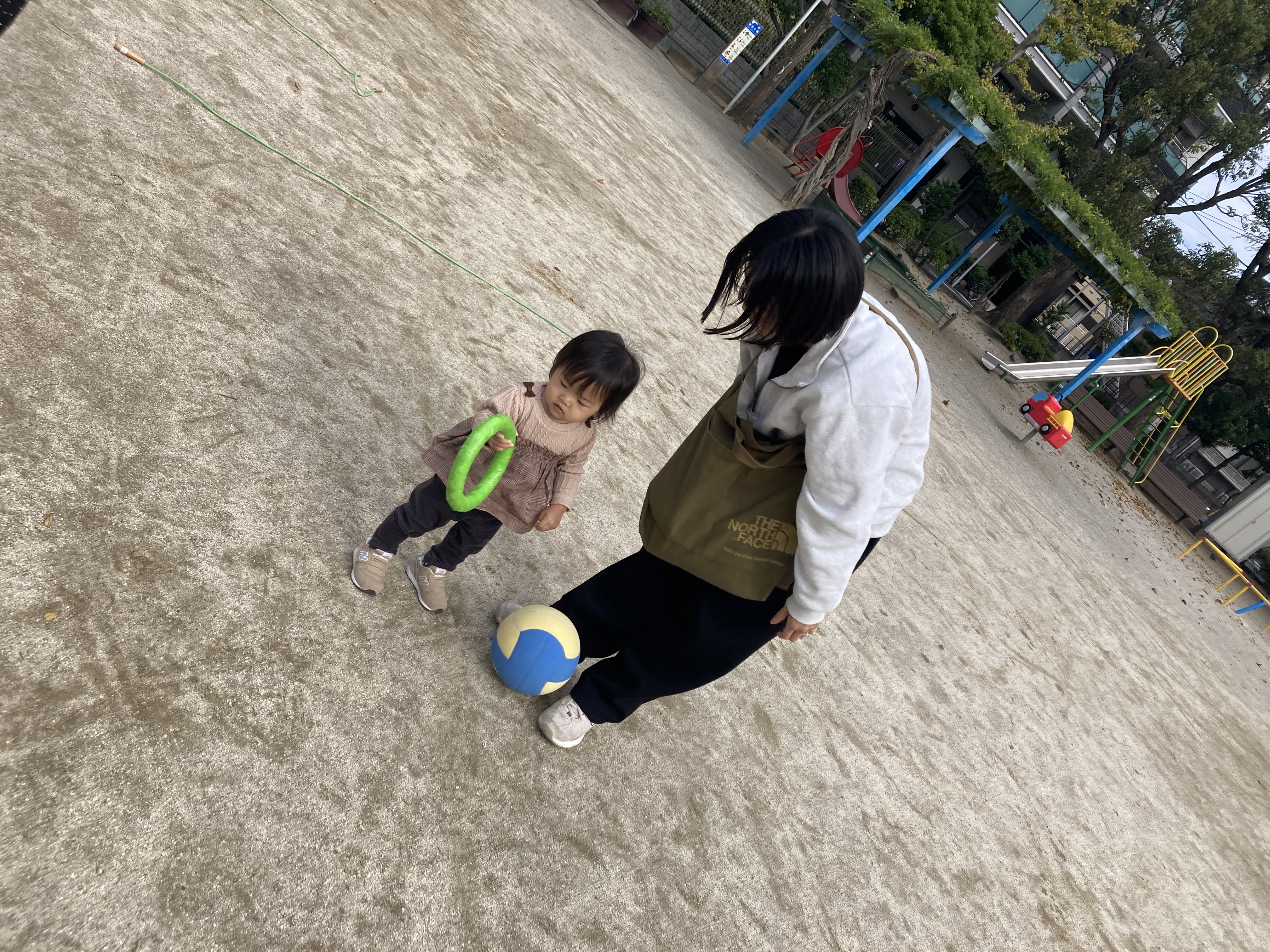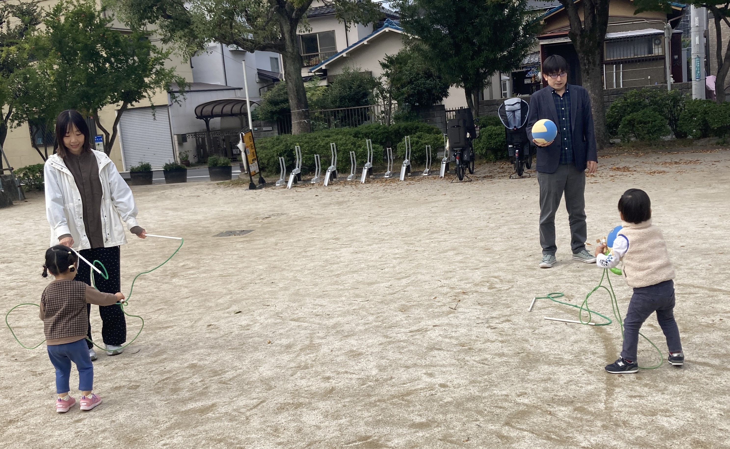 広場ではボールや短縄を手に取って遊ぶお友達でした。