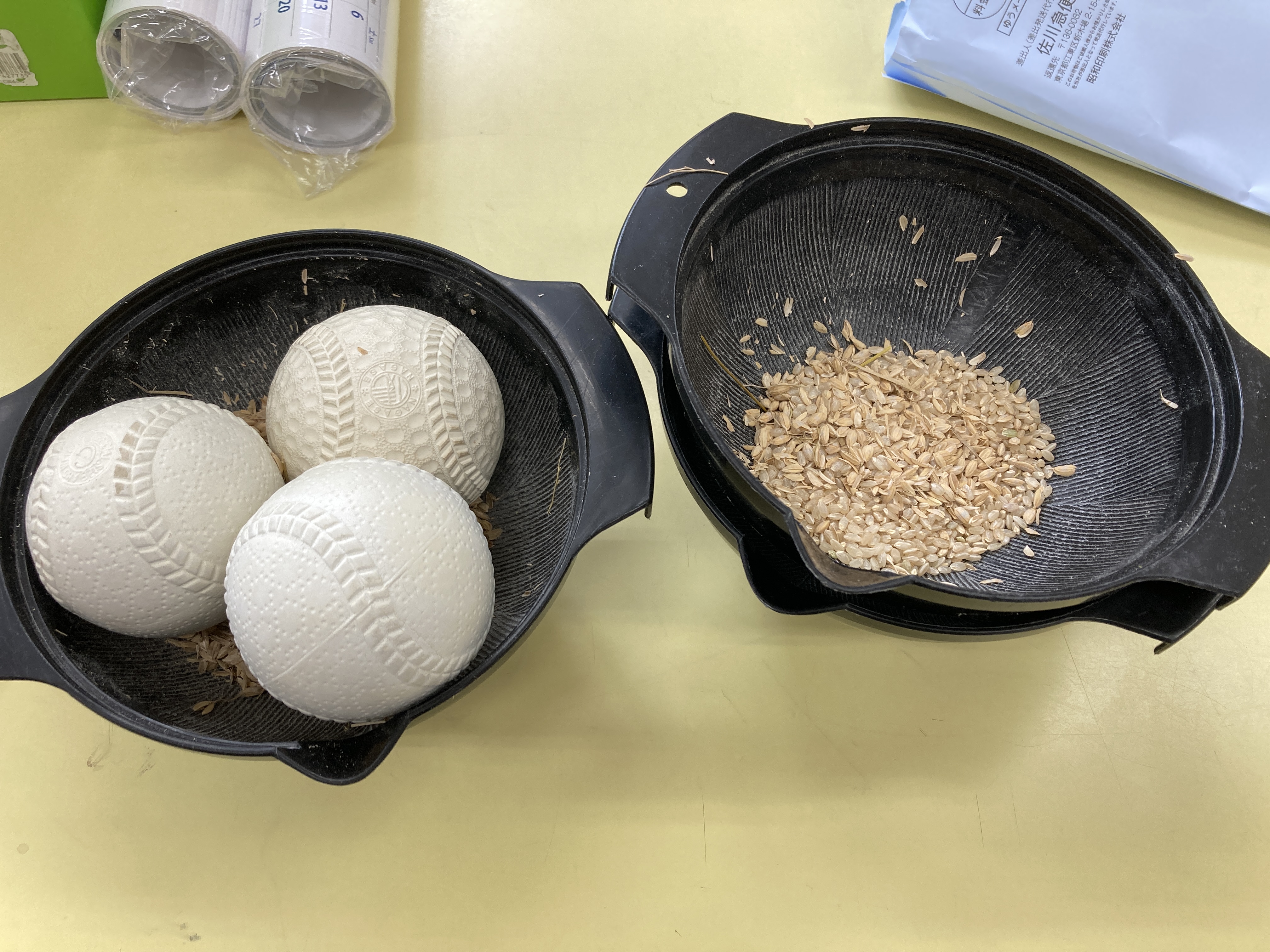 ここから野球ボールとすり鉢で脱穀作業していきました。