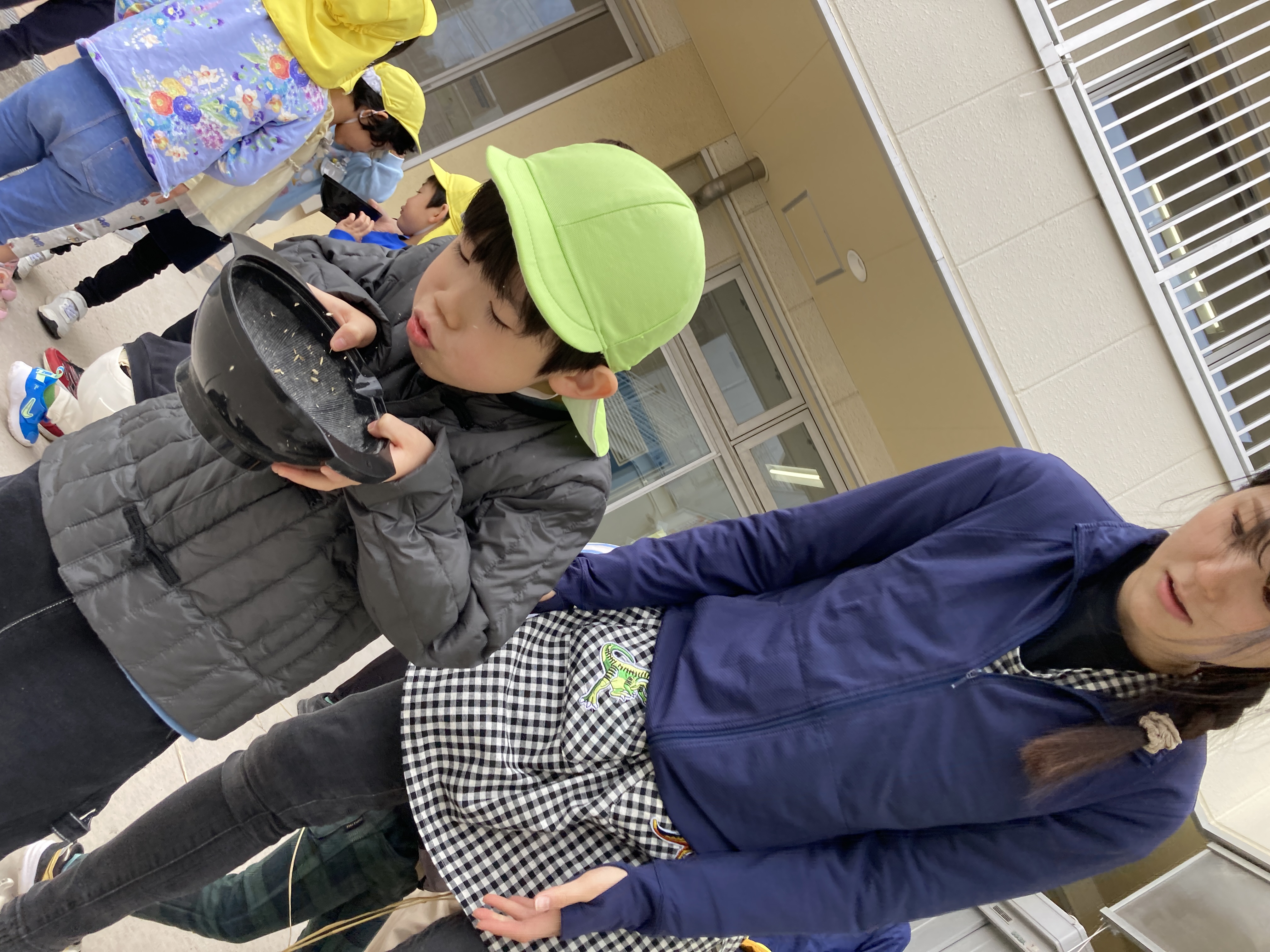 ふ~っと、もみ殻を吹き飛ばします。この作業が楽しかったようで、