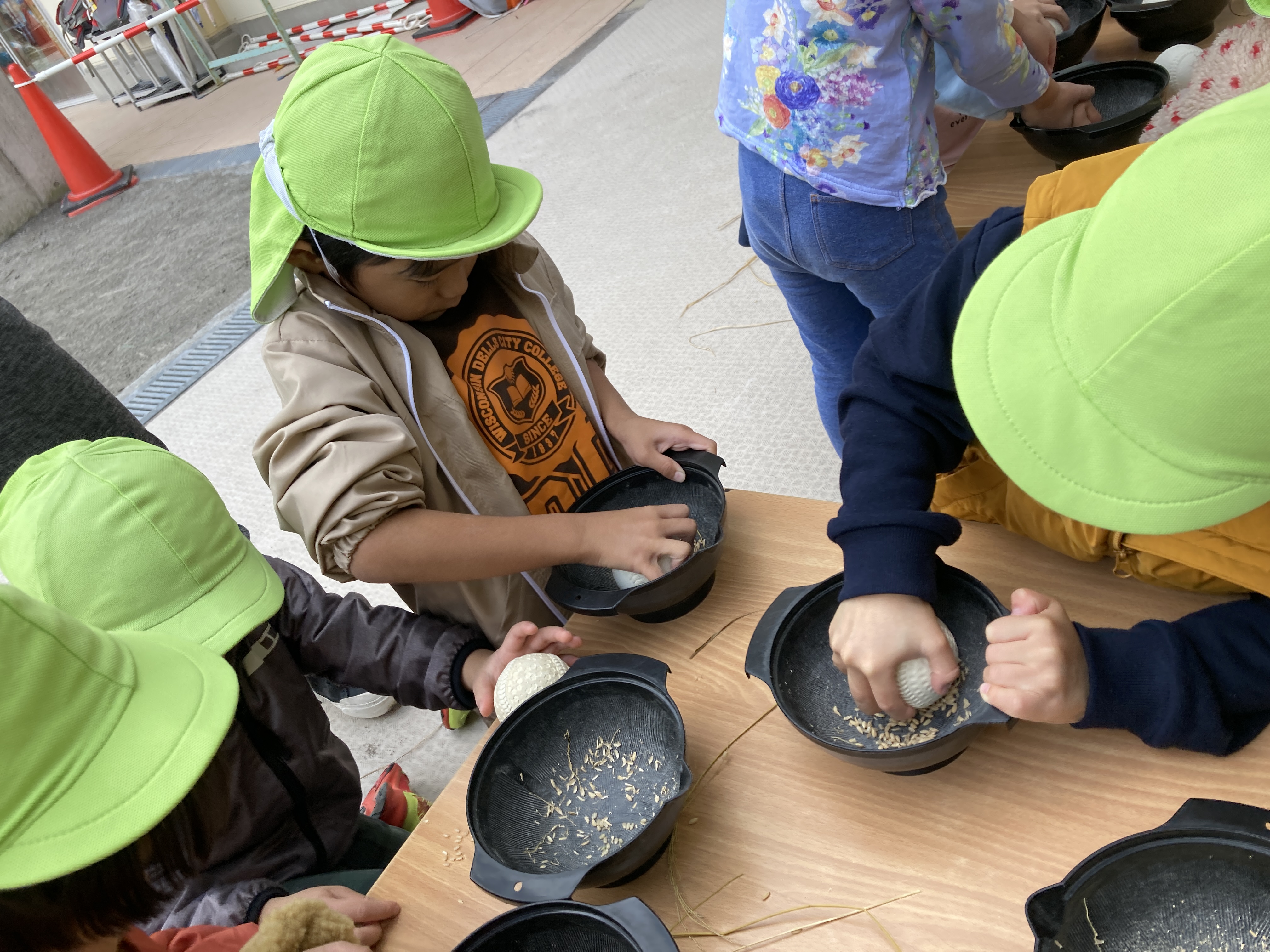 今日は5歳児ぶどう組がお米の収穫体験を行いました!