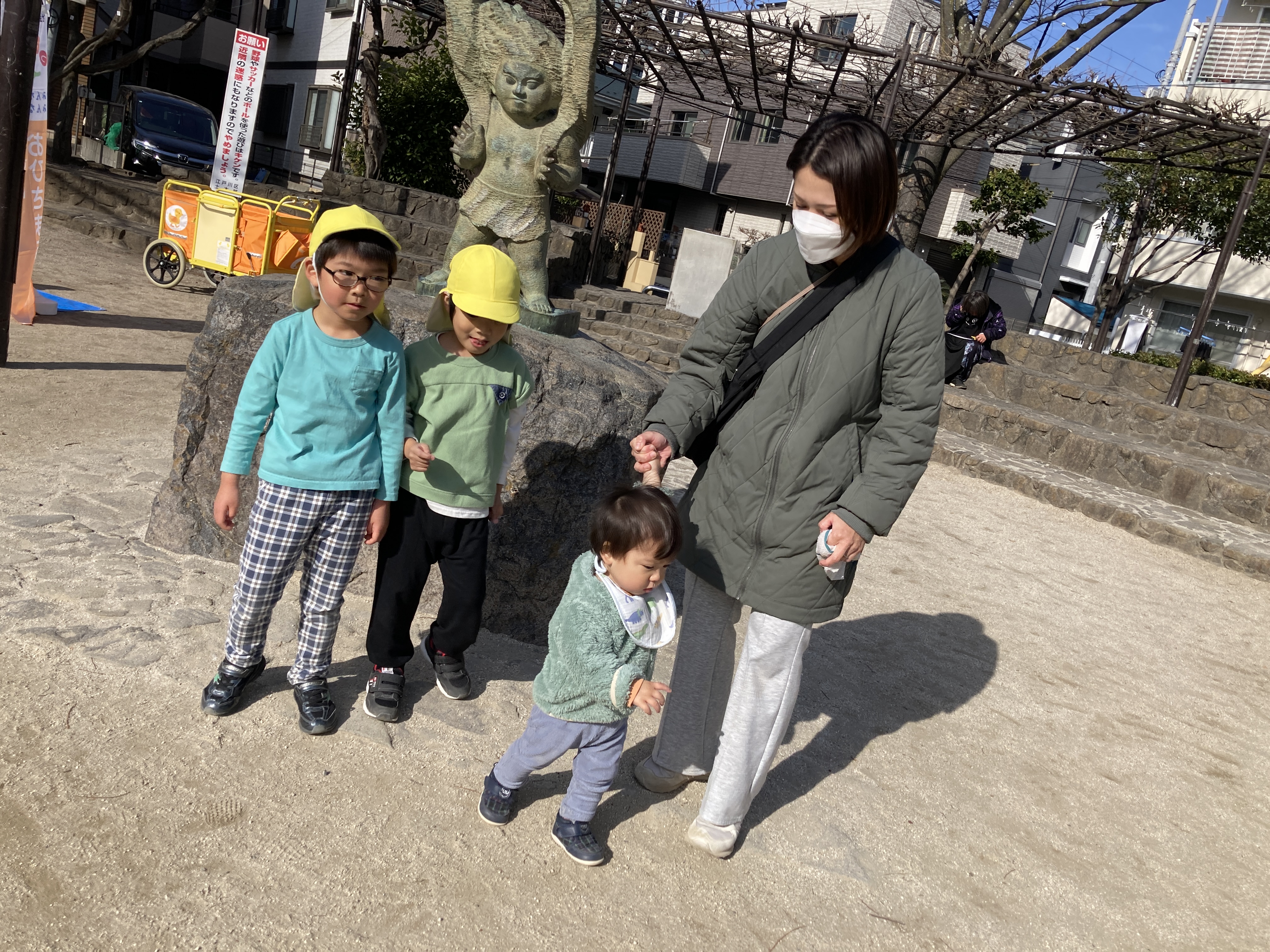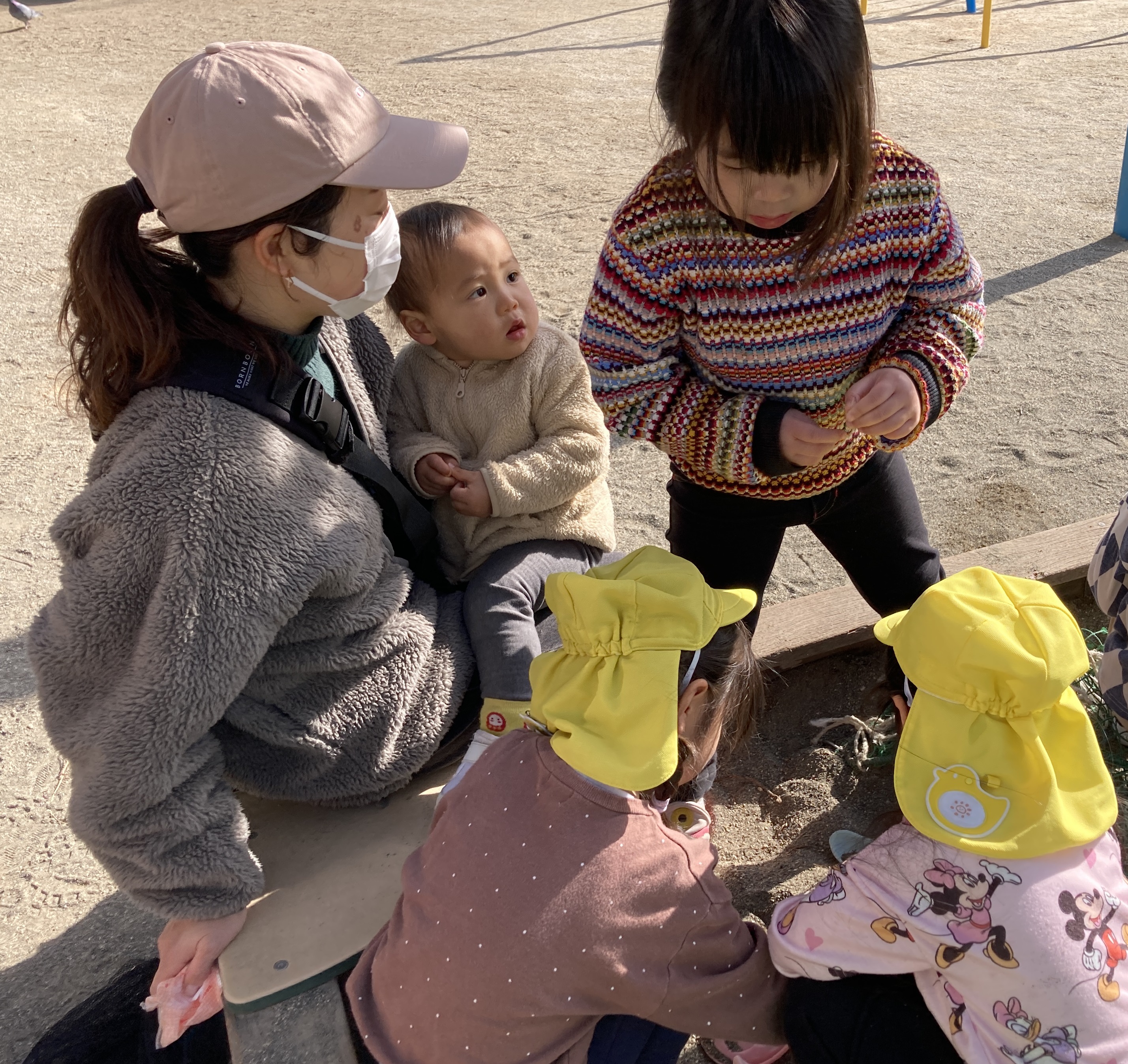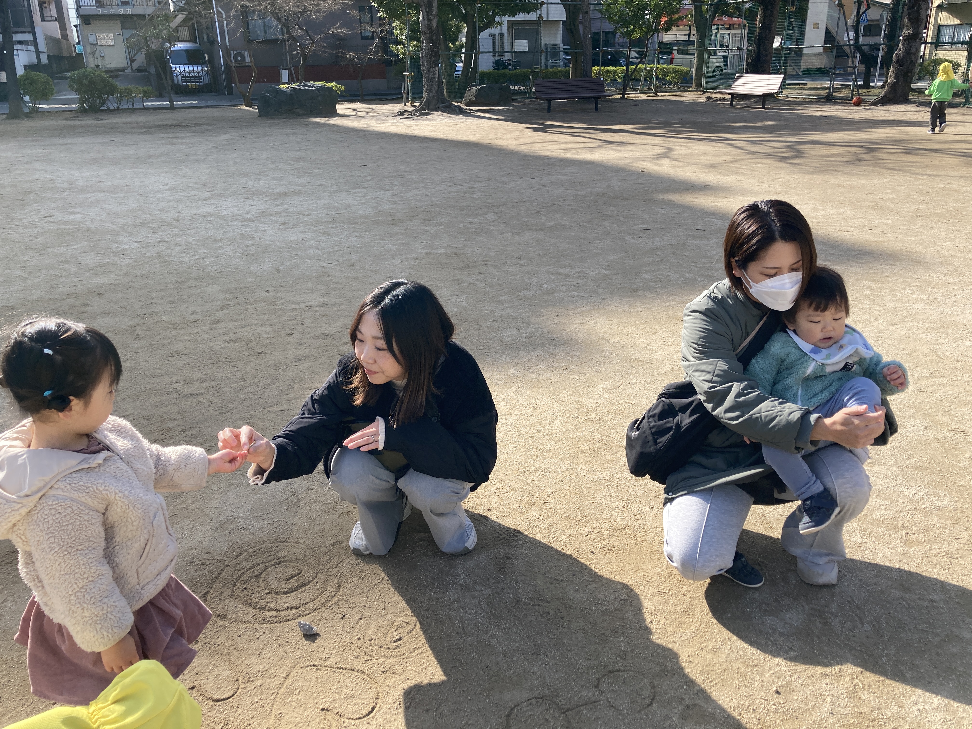 新田公園で出張☆おひさま子育てひろばを行いました。めろん組の友達も一緒に参加しました。