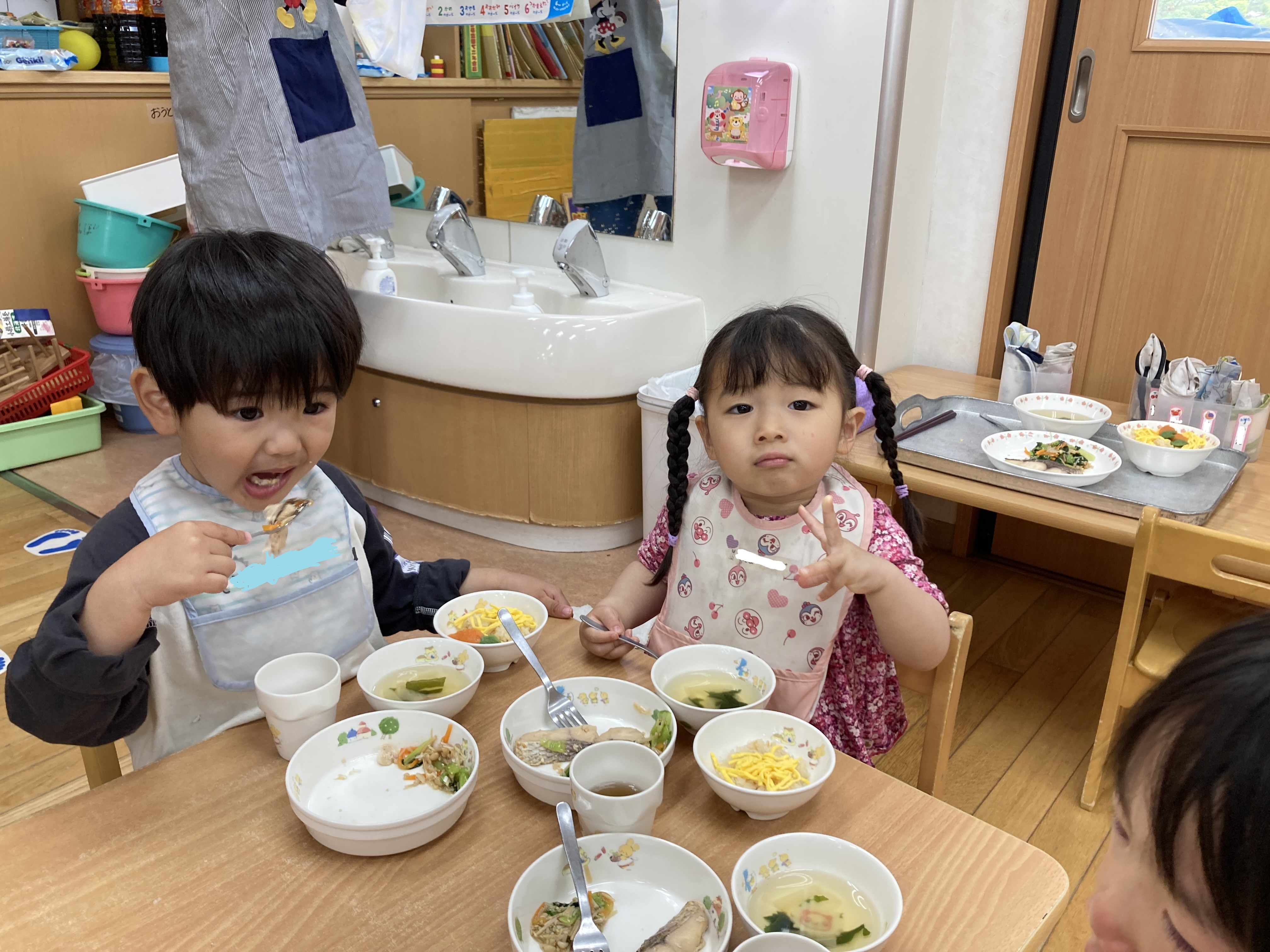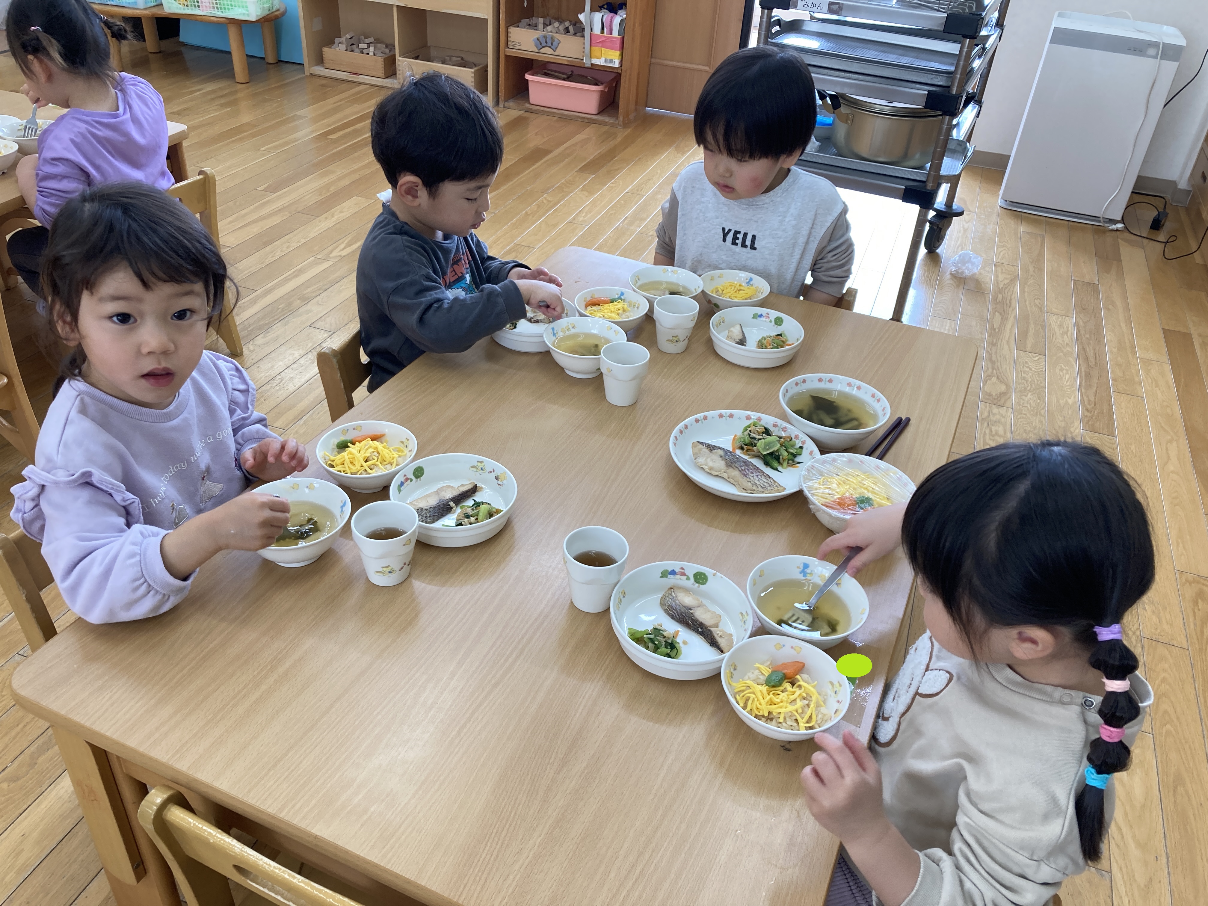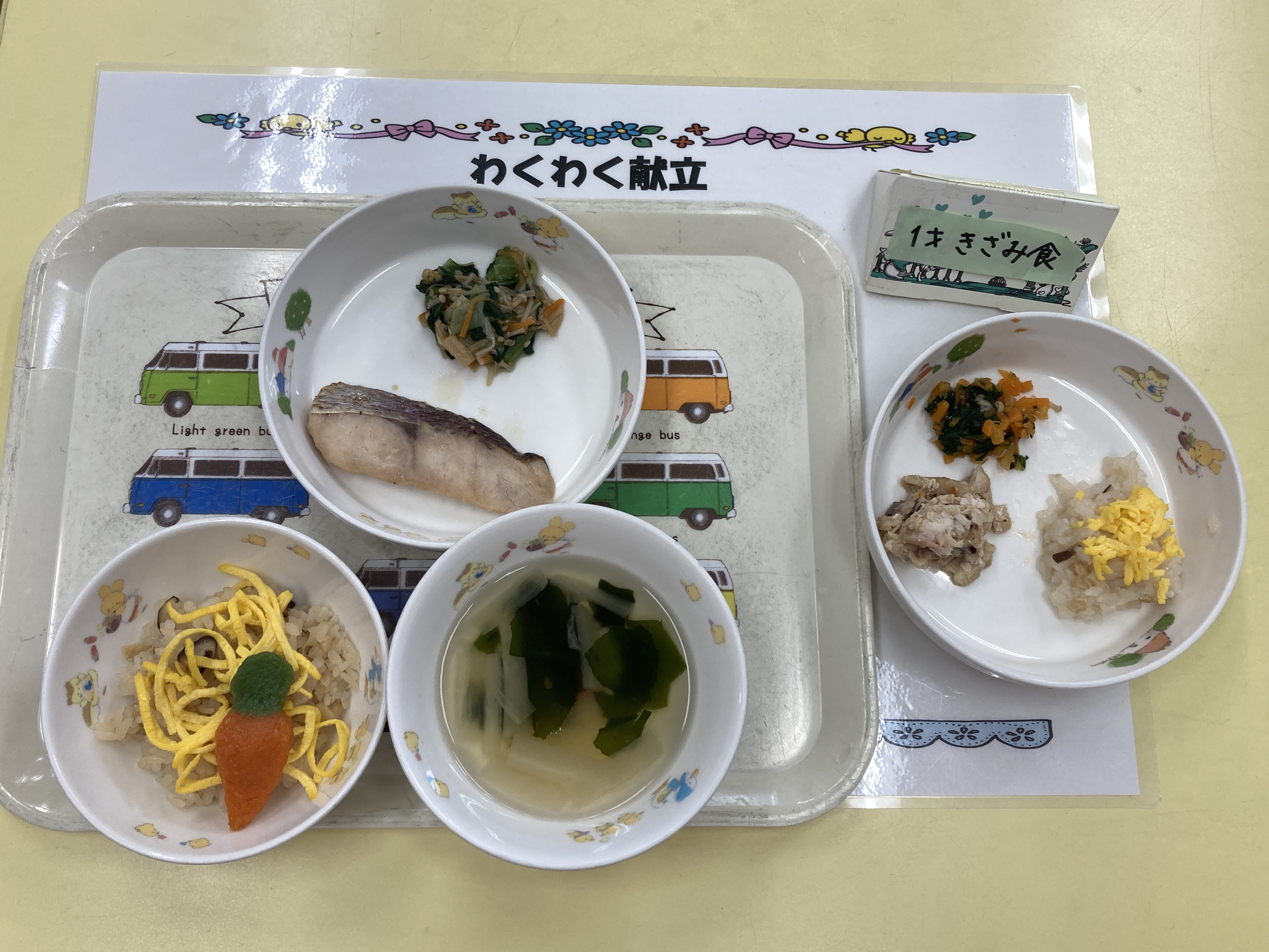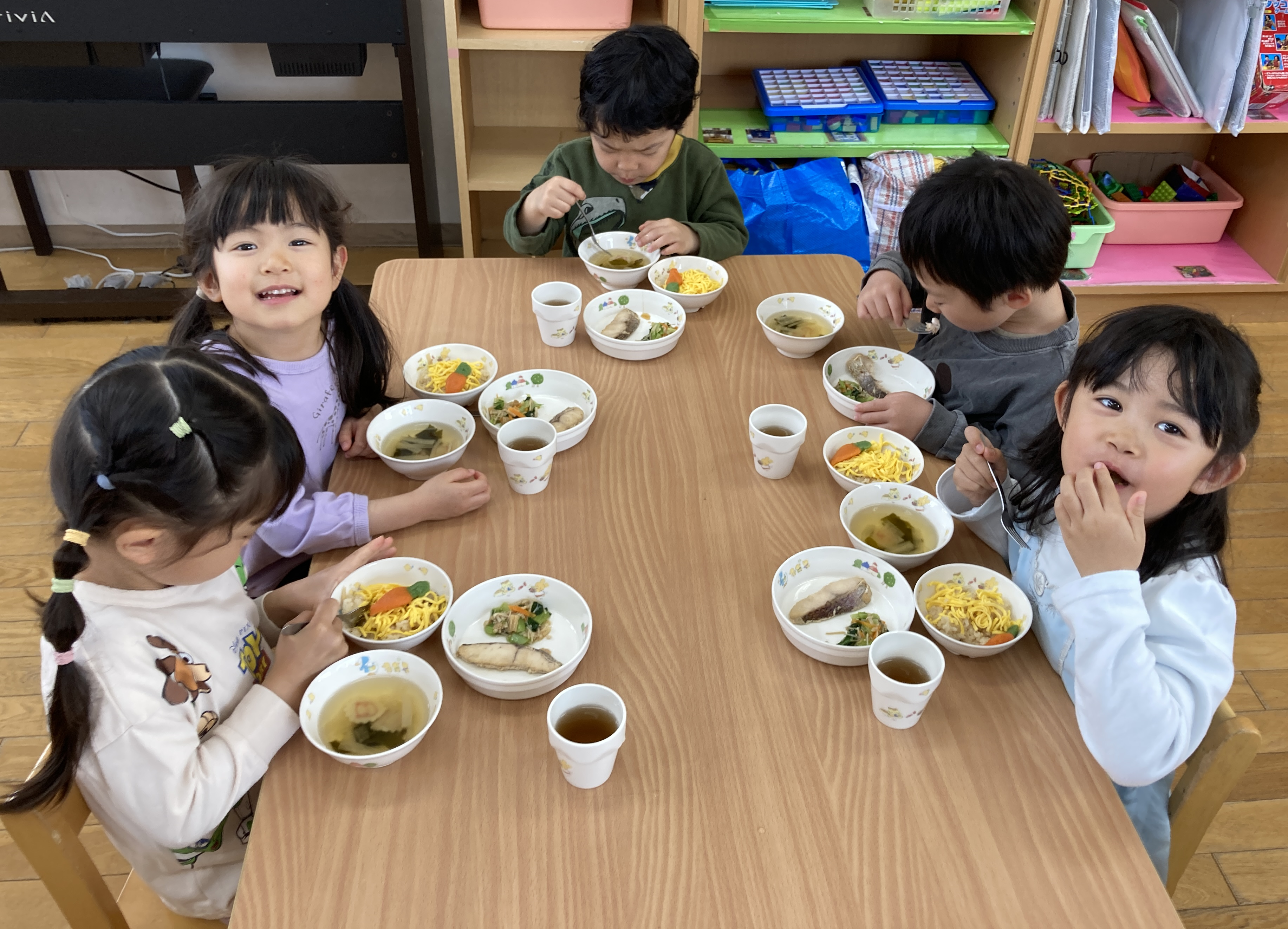 春色ごはんは彩りが綺麗なことから「食べるのがもったいないね」と子ども同士の会話が聞かれました。