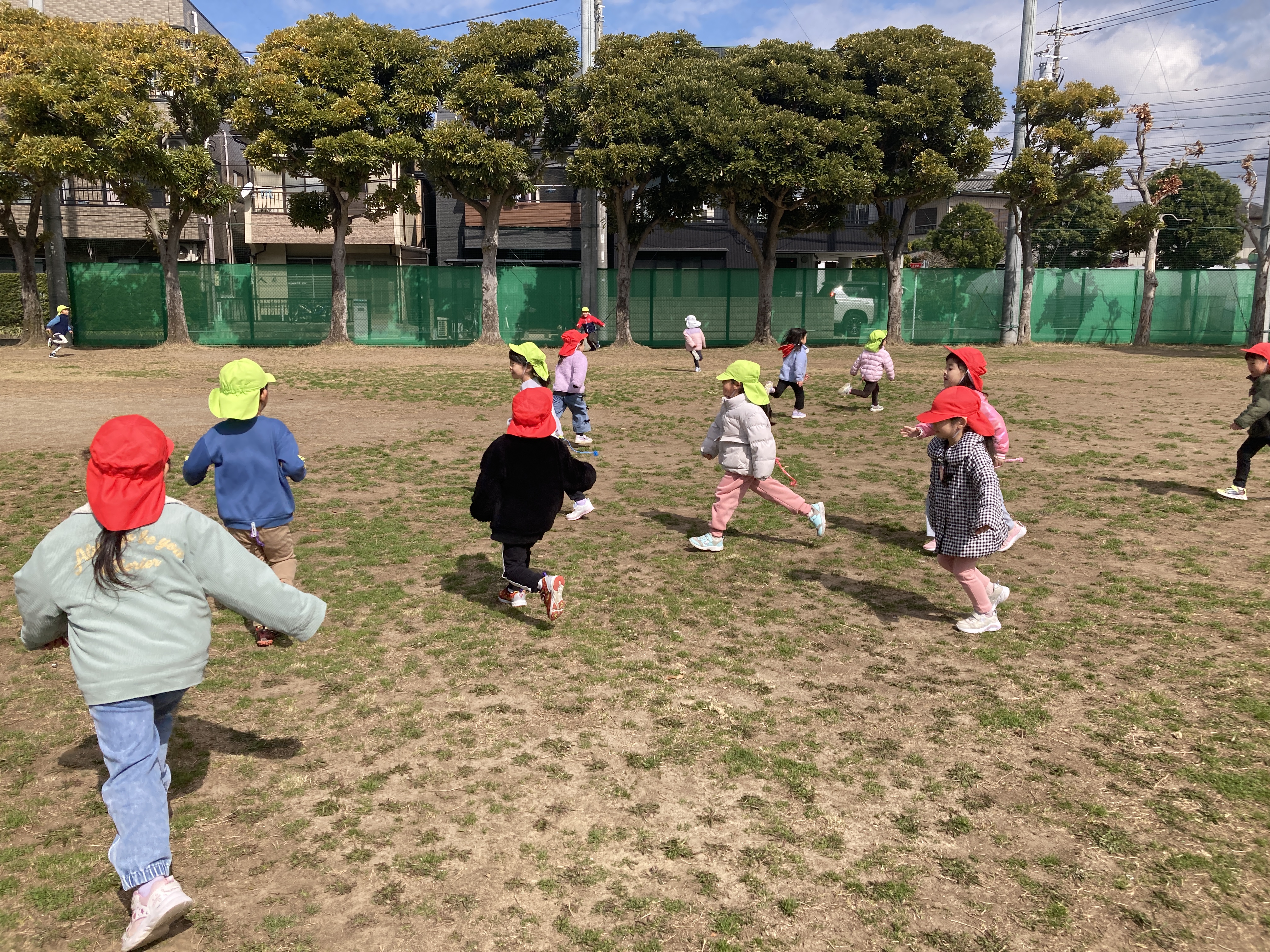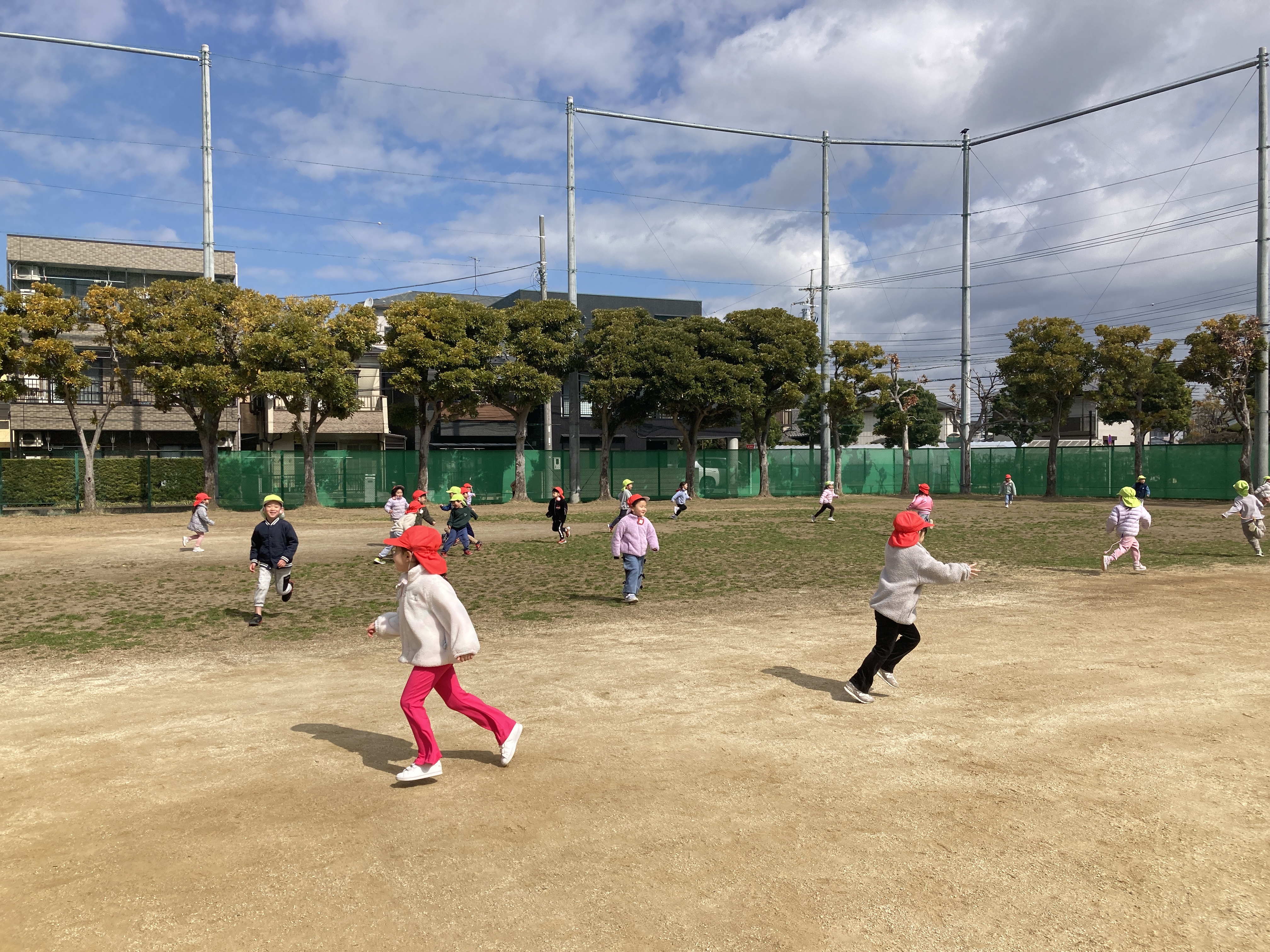 良い天気の中、たくさん走って楽しく過ごした子どもたち。息を切らしながらも多くのしっぽを取ろうと最後まで頑張っていました。