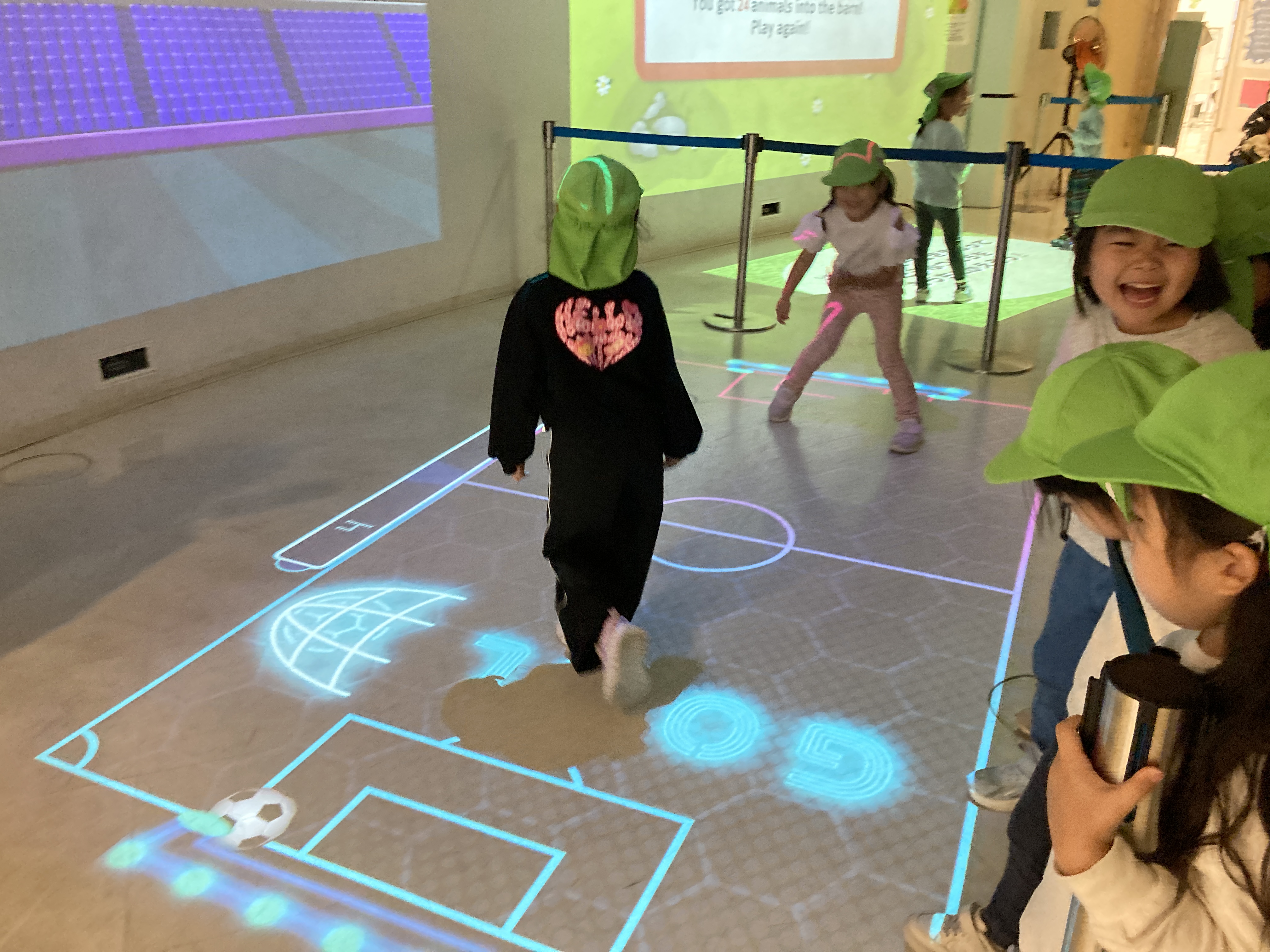 クライミングに挑戦したり、デジタルサッカーをしたり、塗り絵をしました。