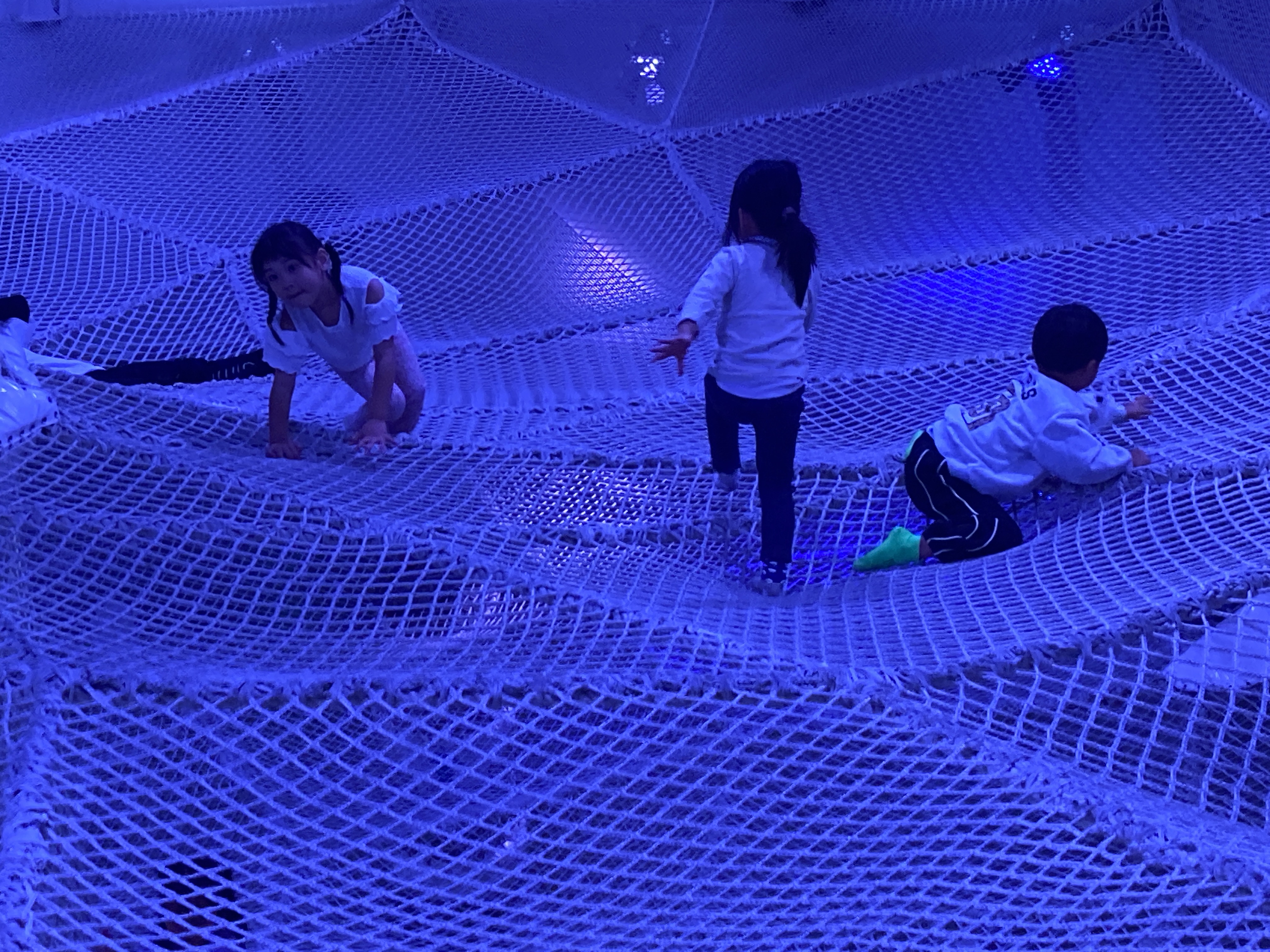 その後、みんなが楽しみにしていたネット遊具。全身を使ってジャンプし、「きゃー!」と大はしゃぎしながら何度も楽しんでいました。