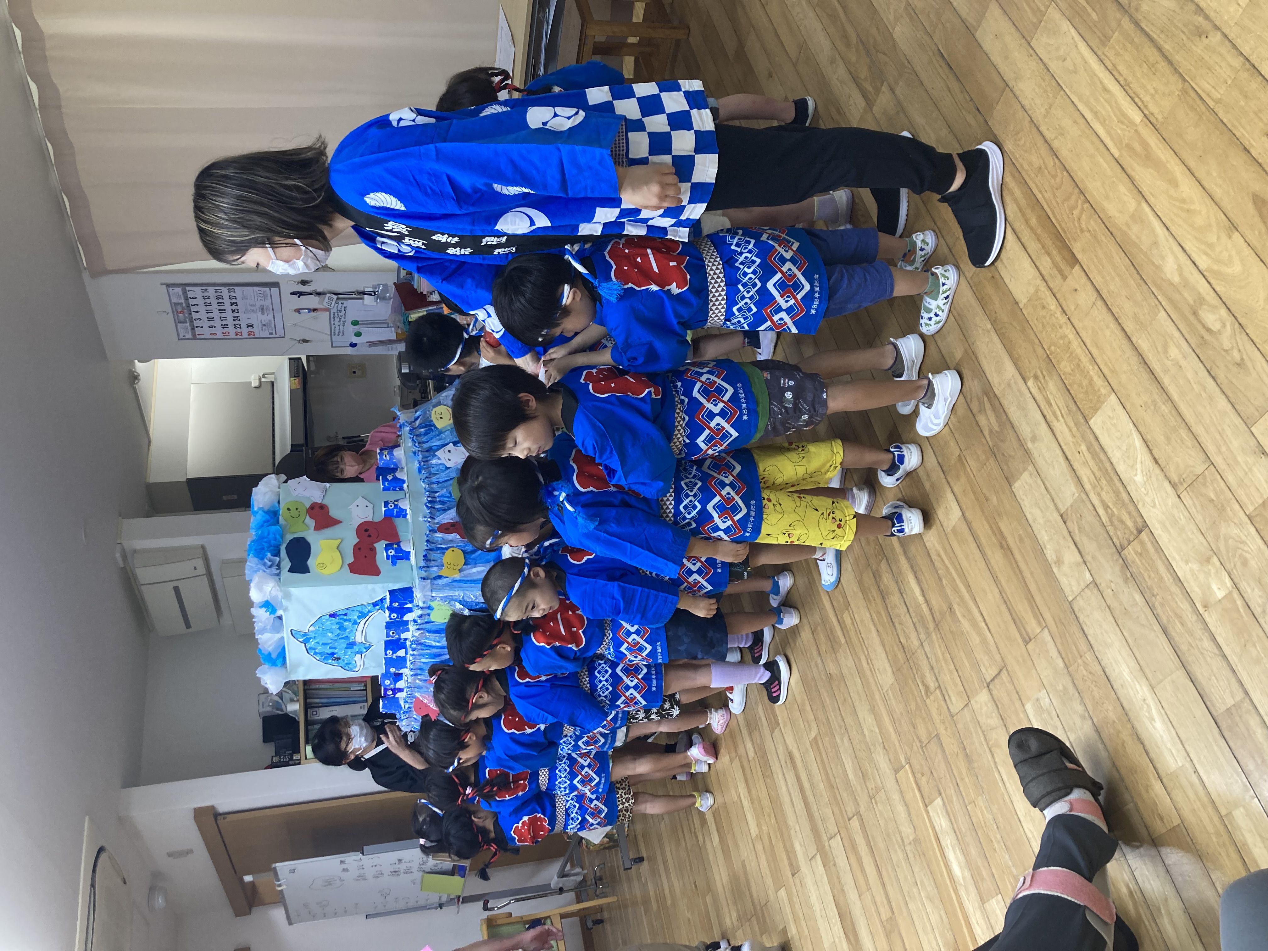 5歳児が近隣の施設を訪れ、神輿や踊りを披露。