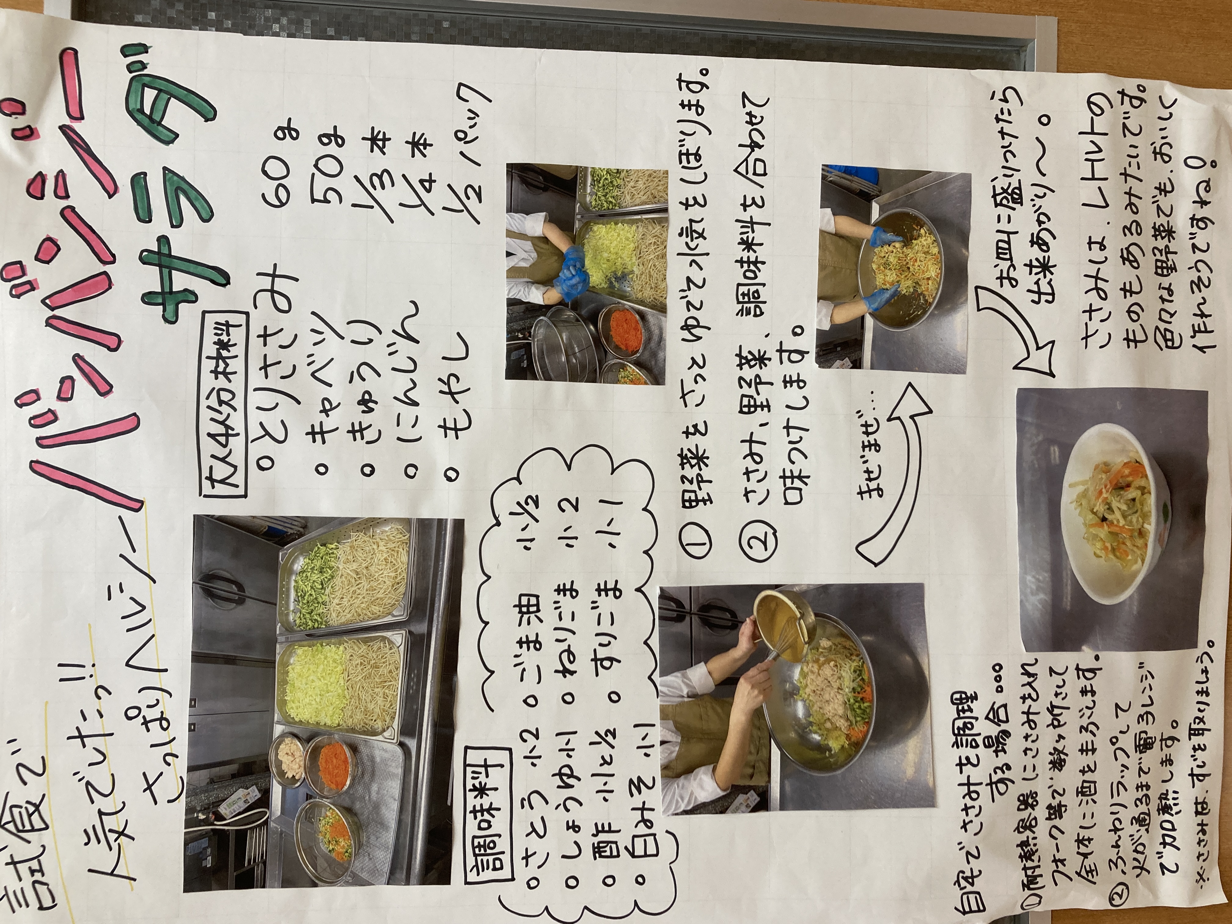 給食の中から人気の献立の作り方を写真入で大きく掲示しています。