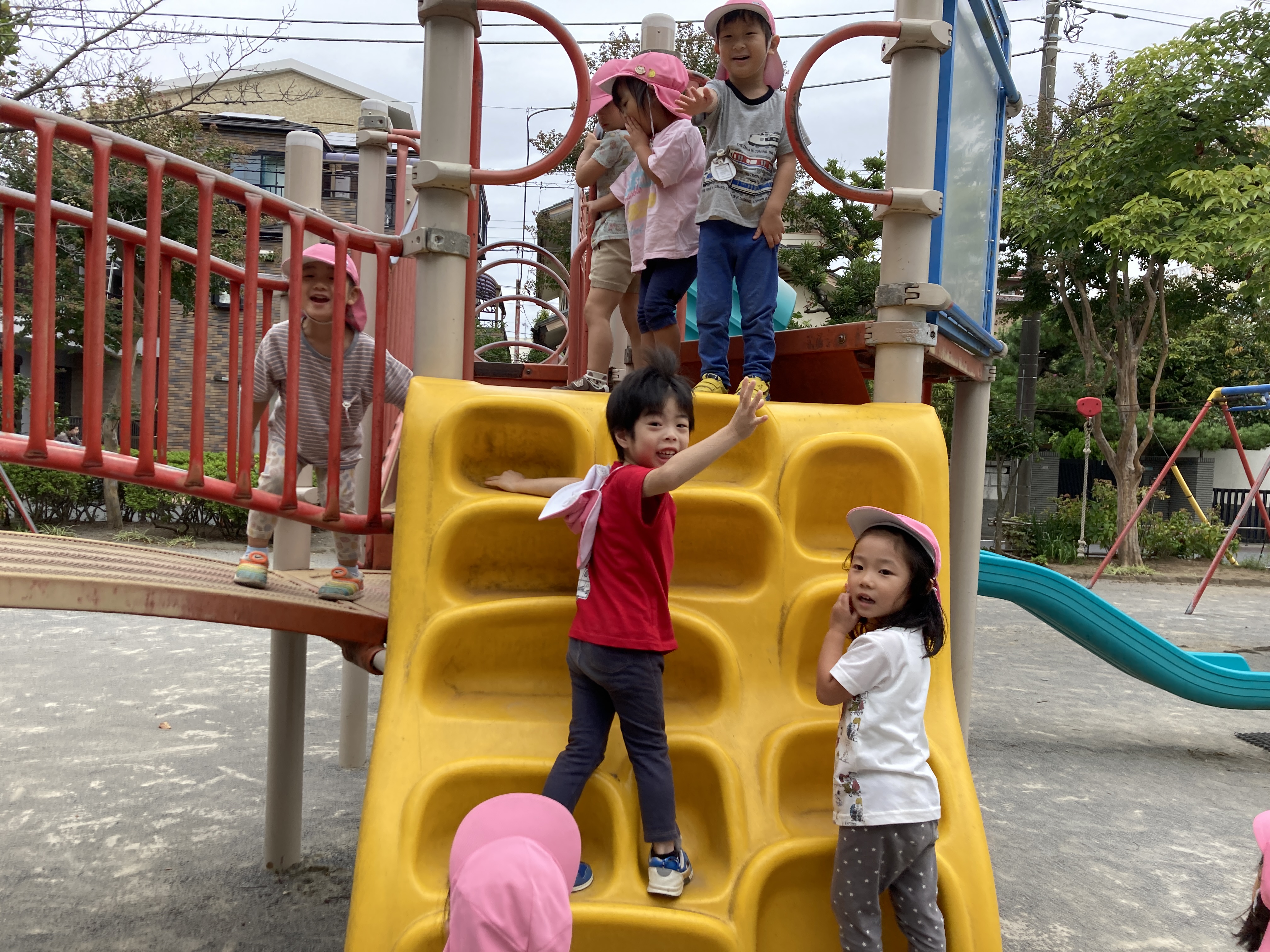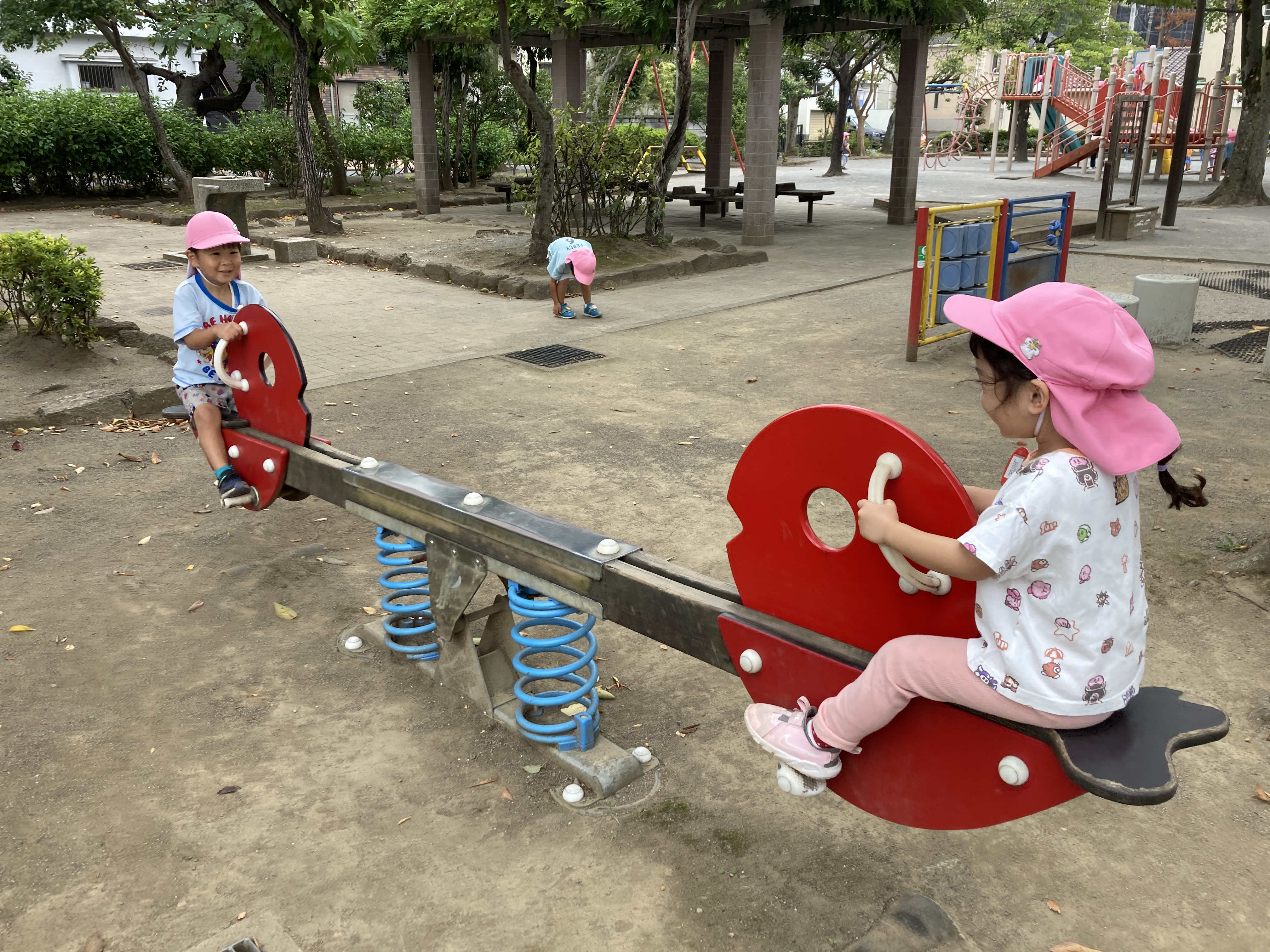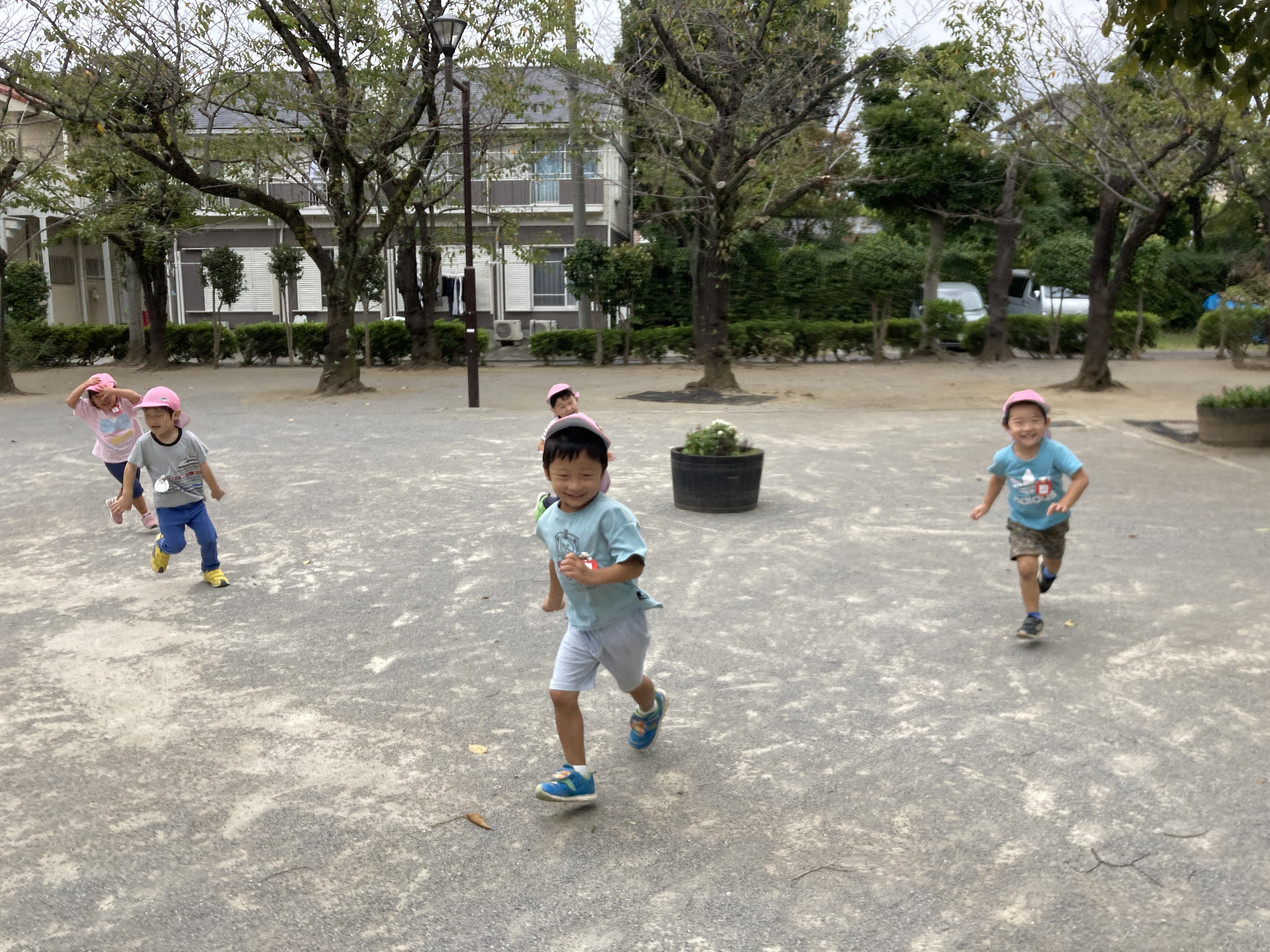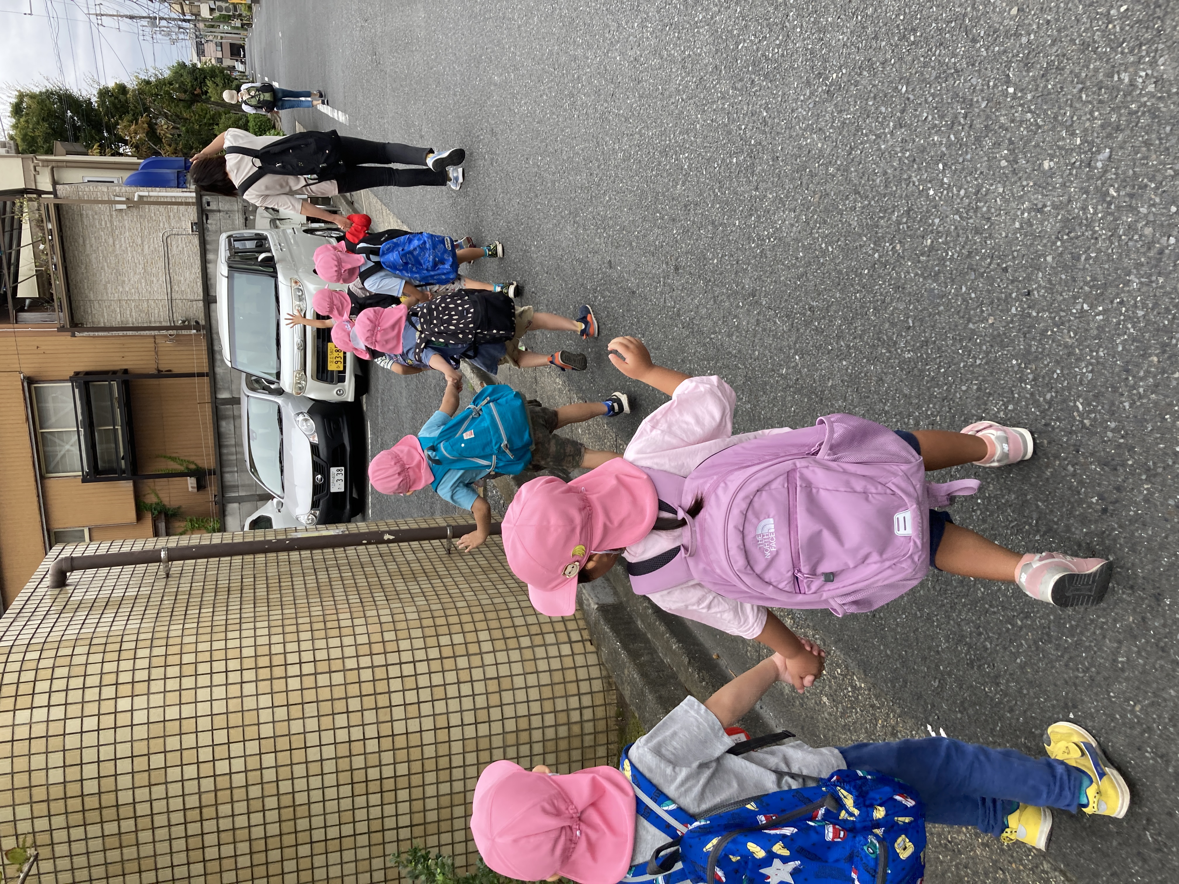 今日はみんなが楽しみにしていた歩き遠足でした。天気が少し心配だったのですが、無事に春江公園まで行き楽しく遊ぶことができました。