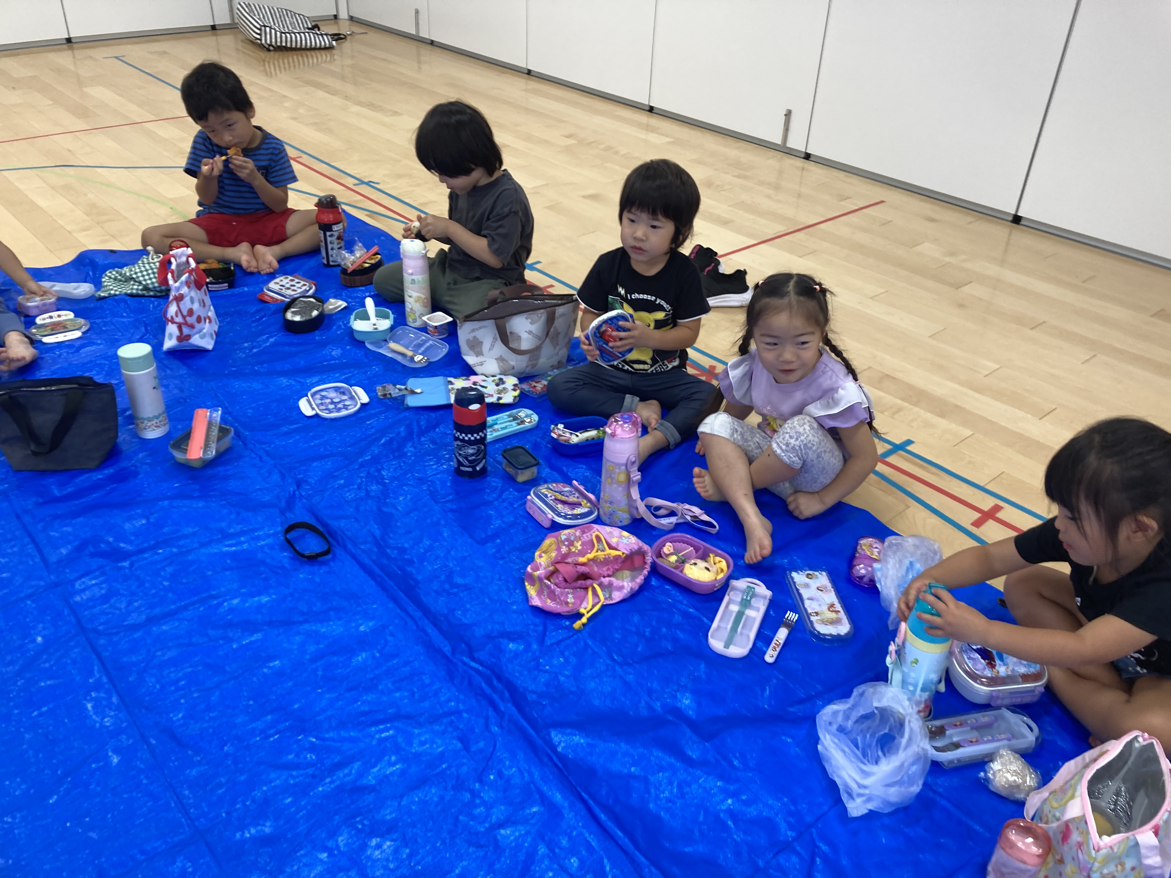 元気いっぱい遊んだ後は、園に戻って遊戯室でお弁当タイム!美味しそうなお弁当をお友達と見せ合いながら、嬉しそうに頬張っていました。