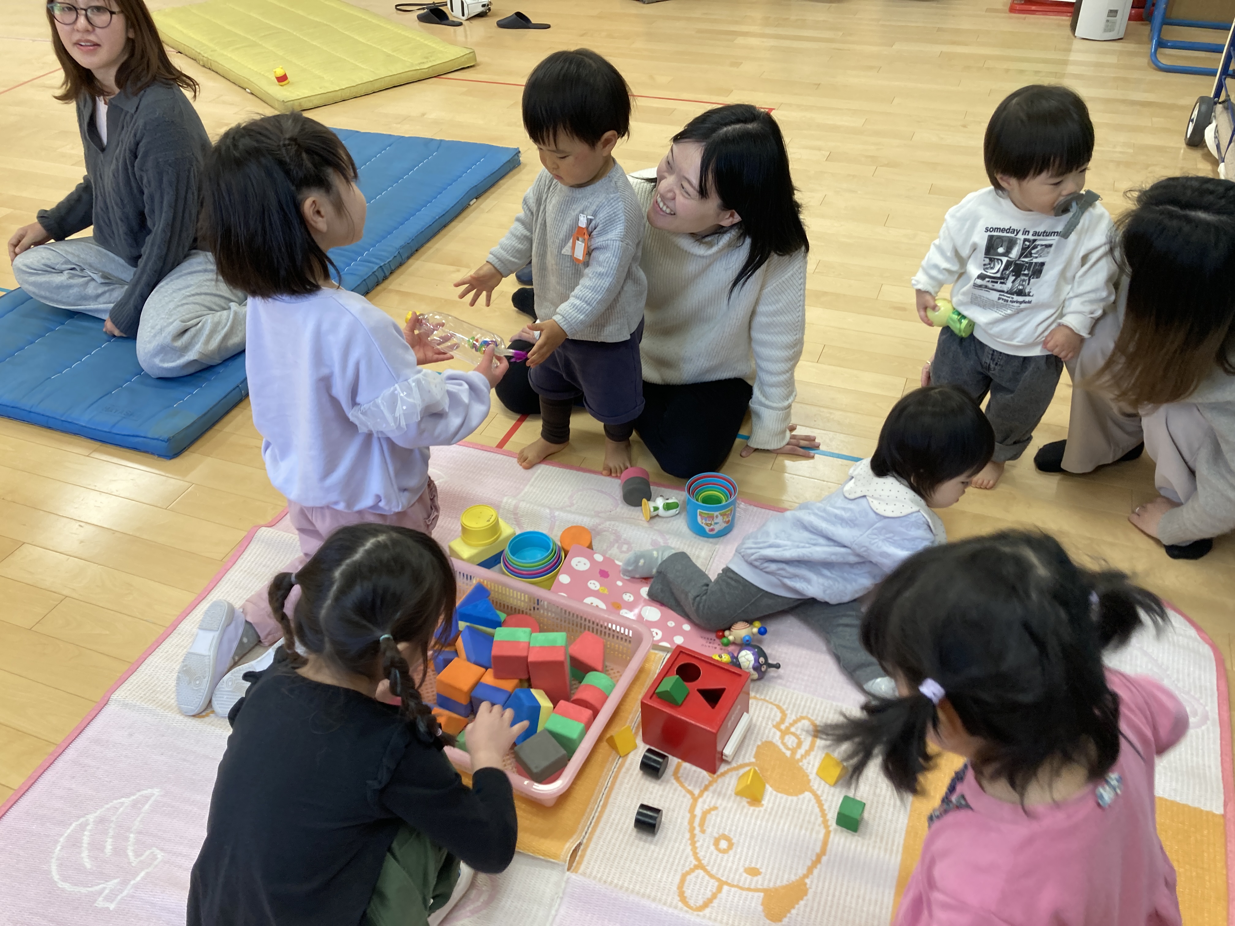 小さなお友だちのリクエストでおもちゃのチャチャチャの手遊びを楽しみました。