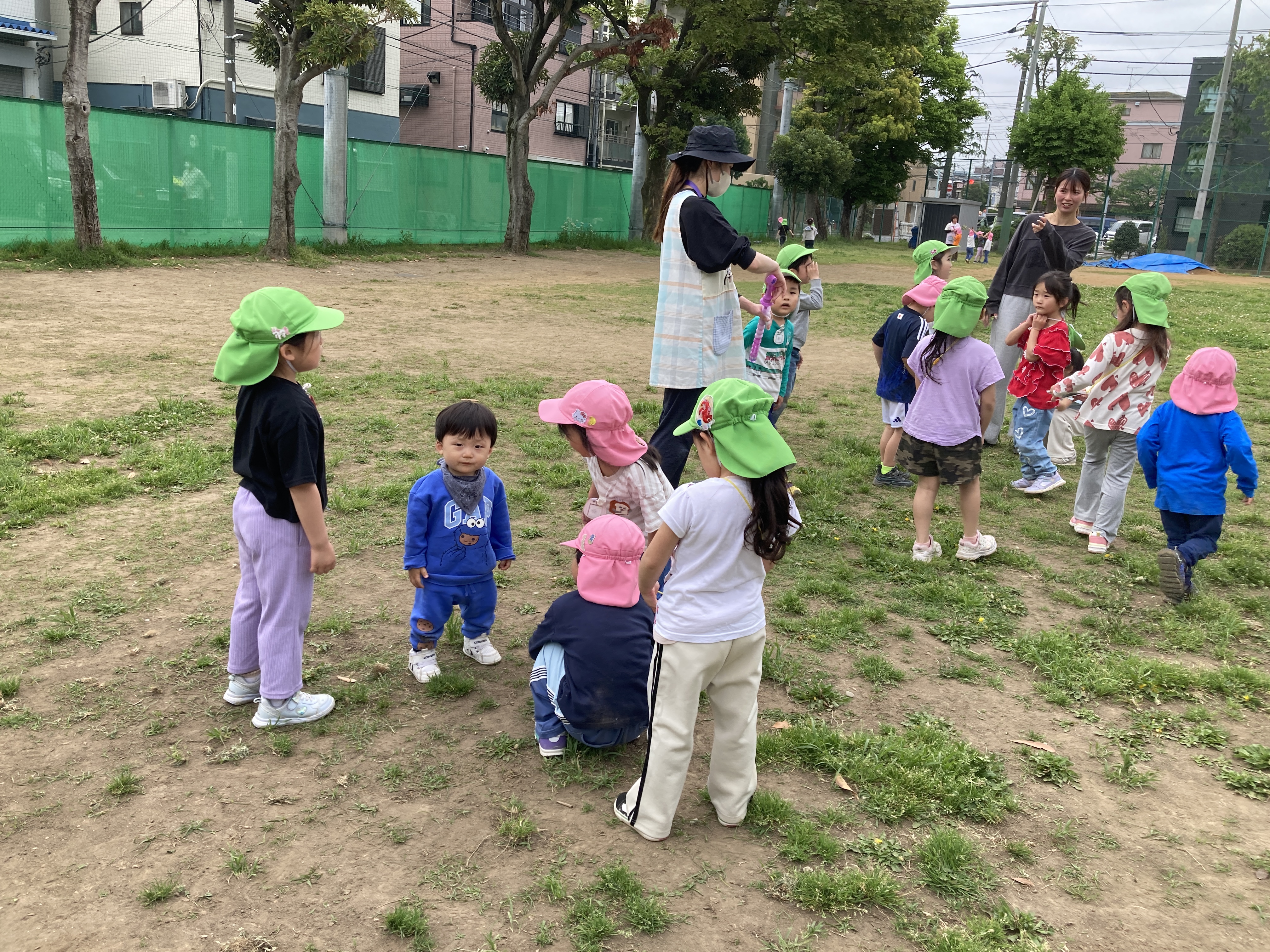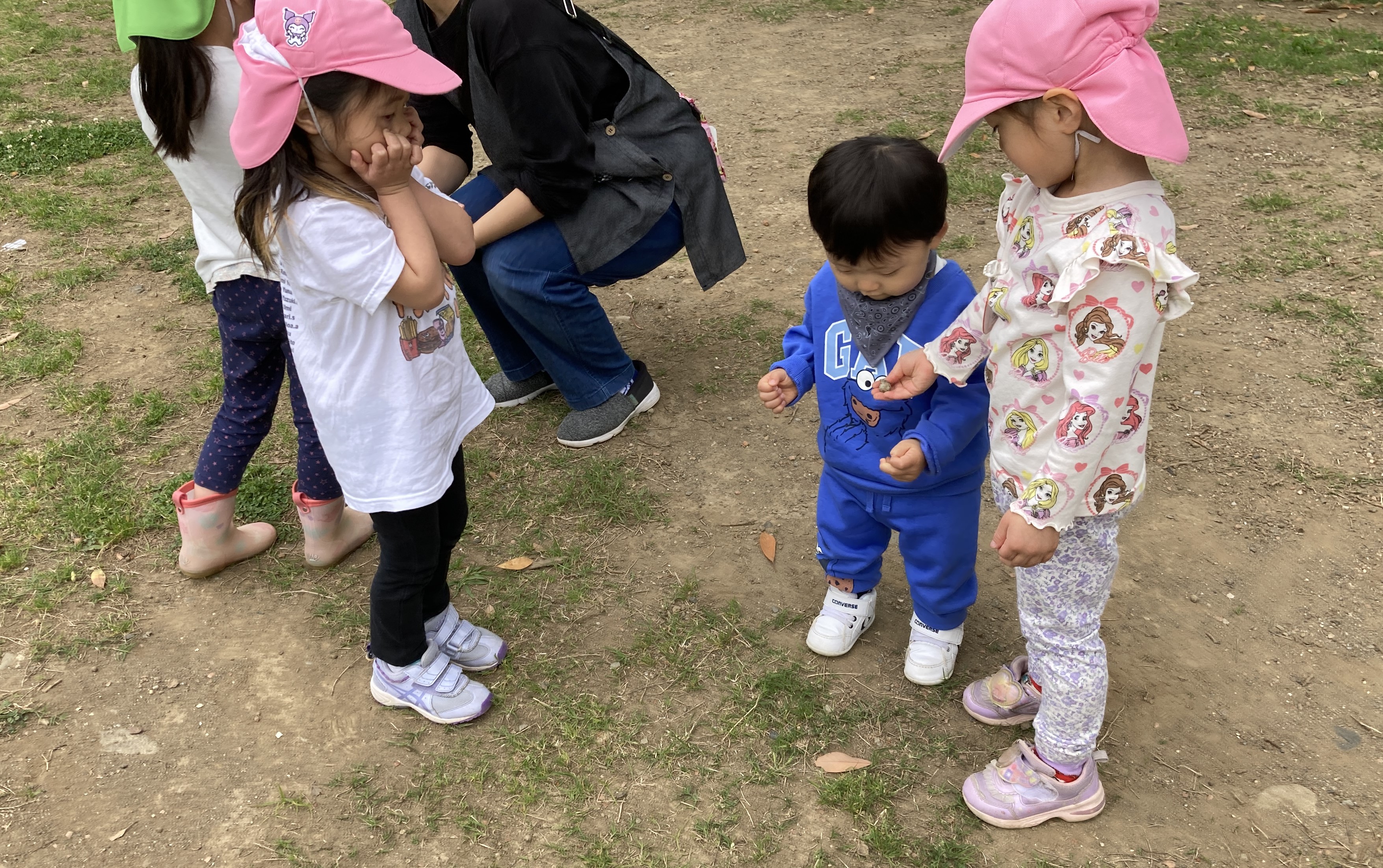 タンポポやハルジオンが咲いていたり、だんごむしがたくさんいて、公園内を探索をしながら楽しみました。