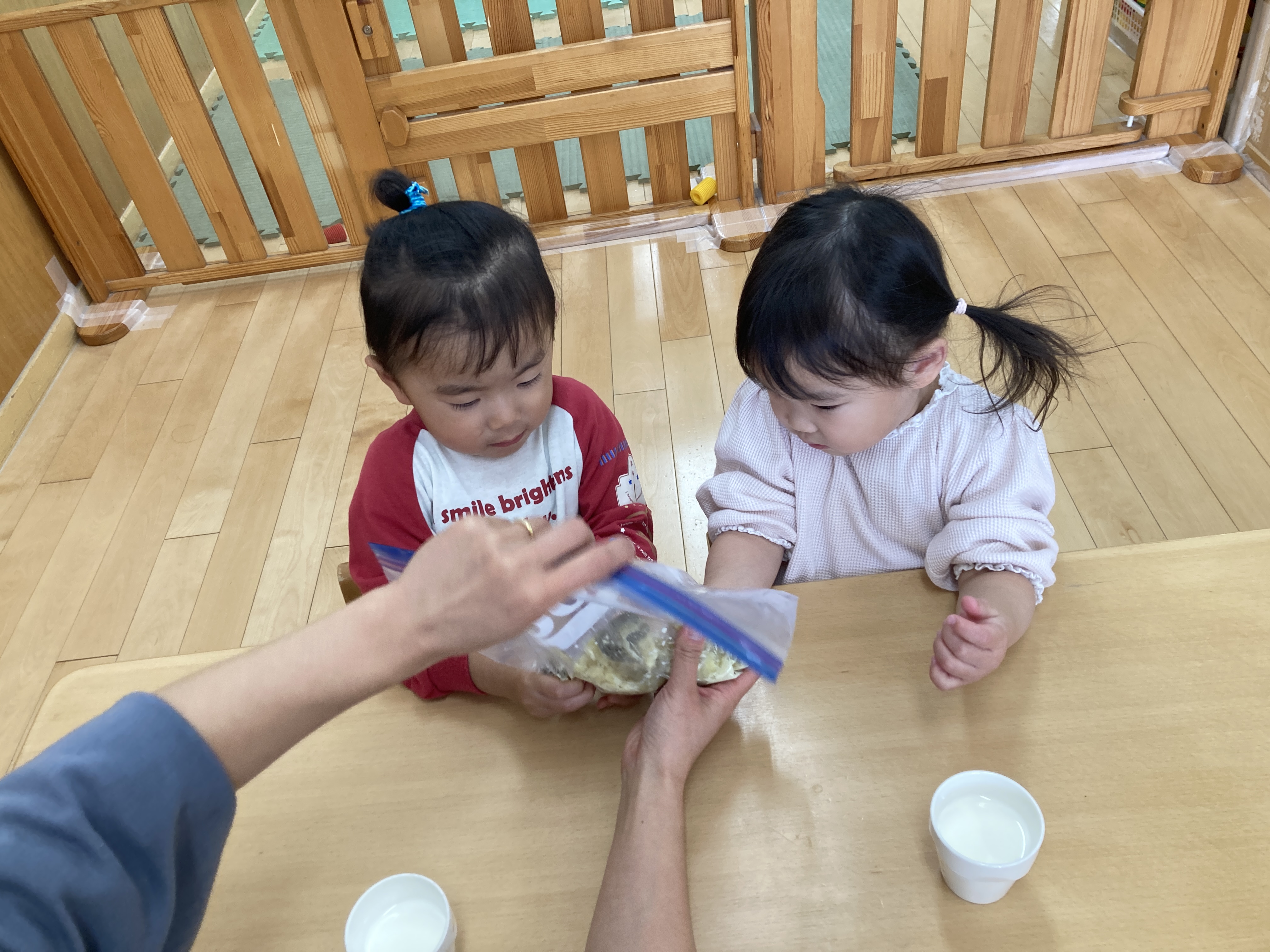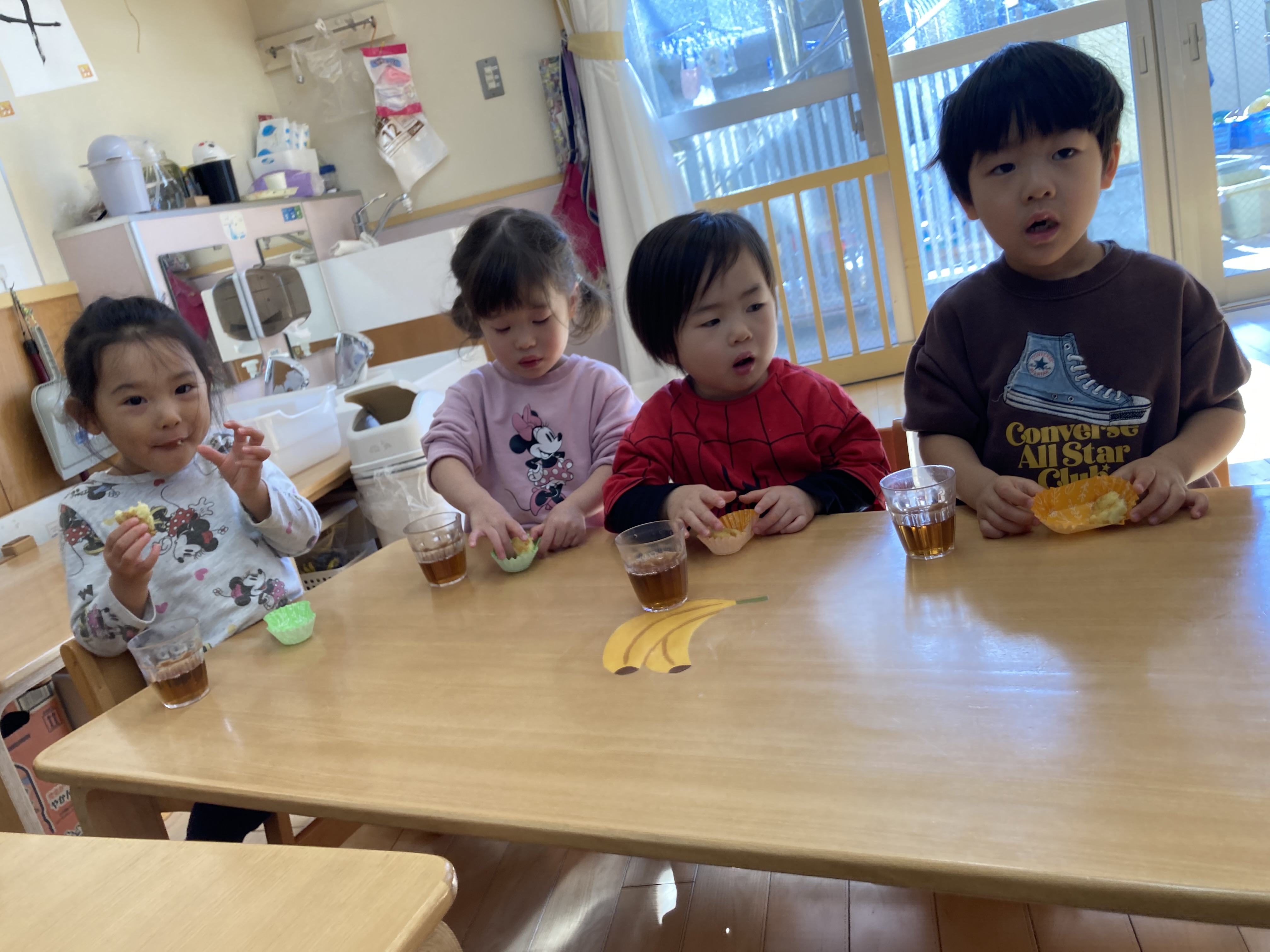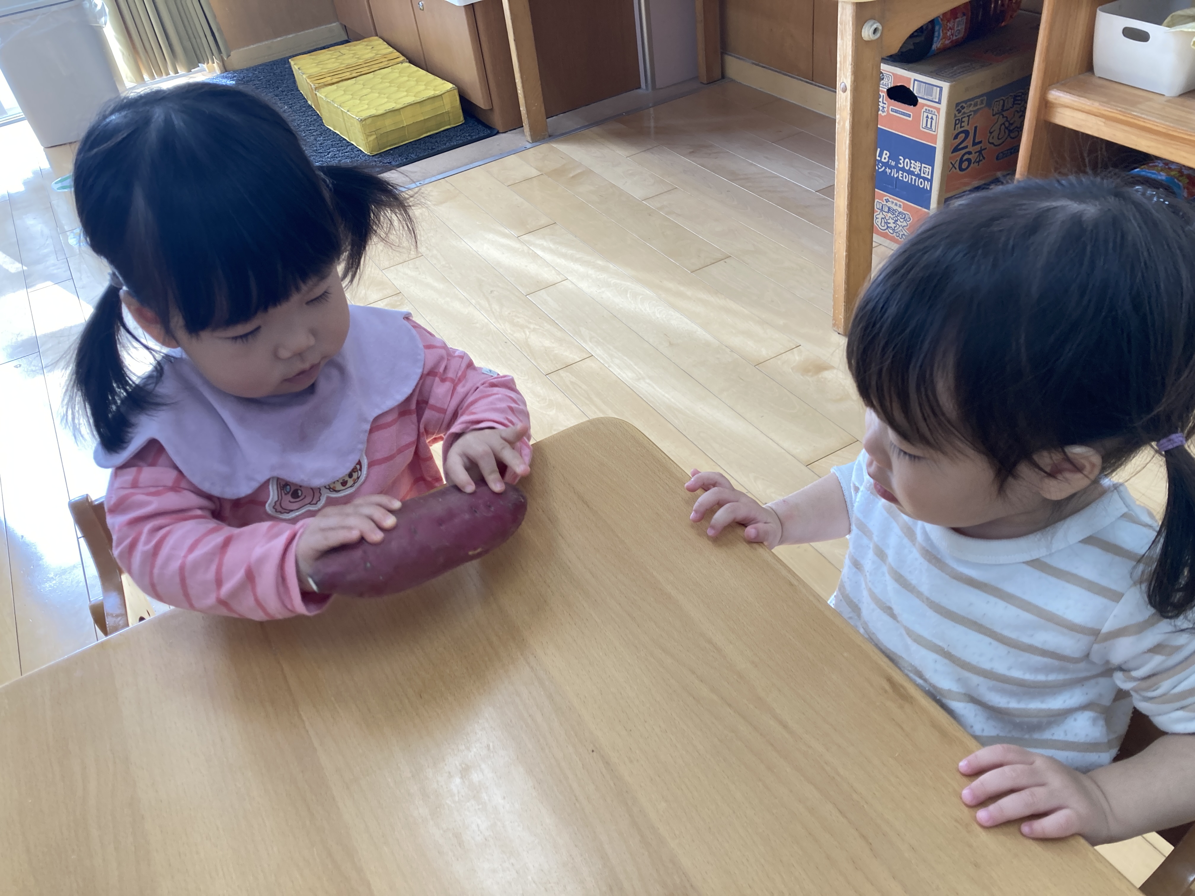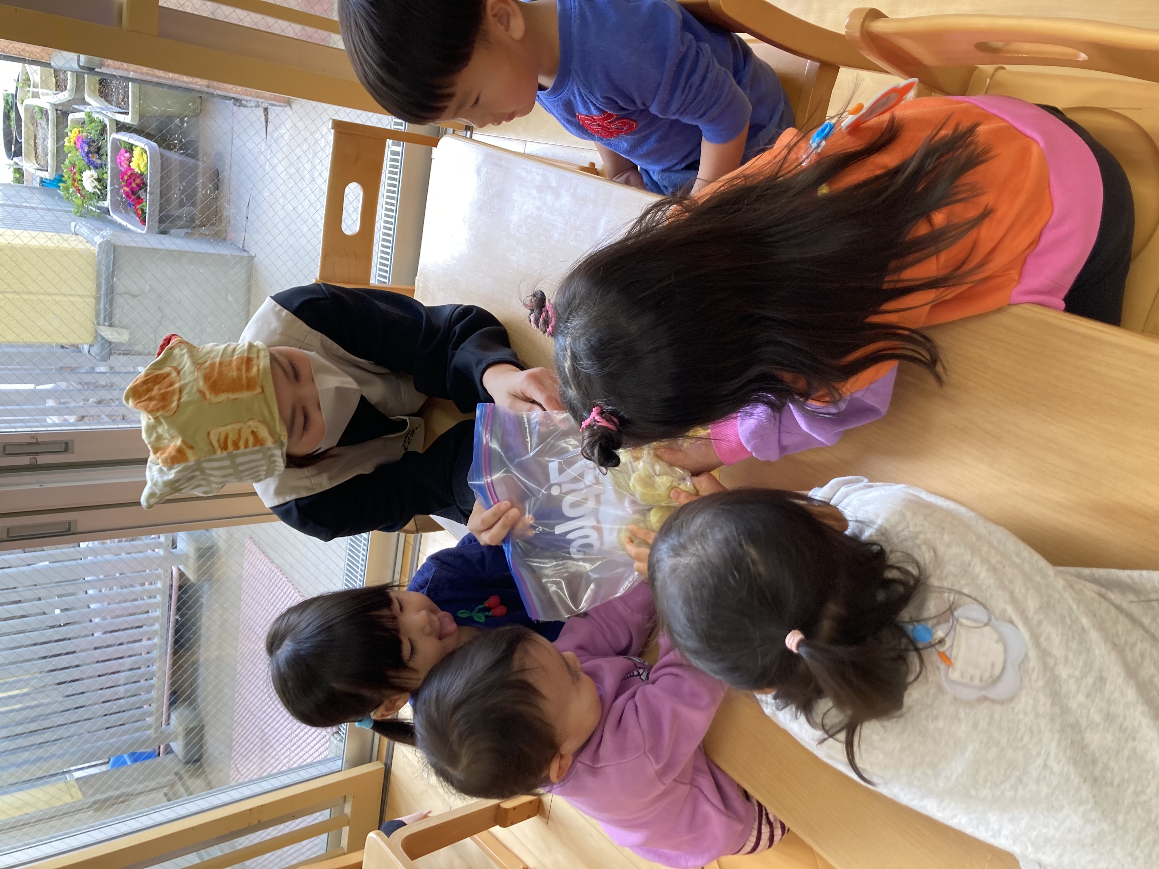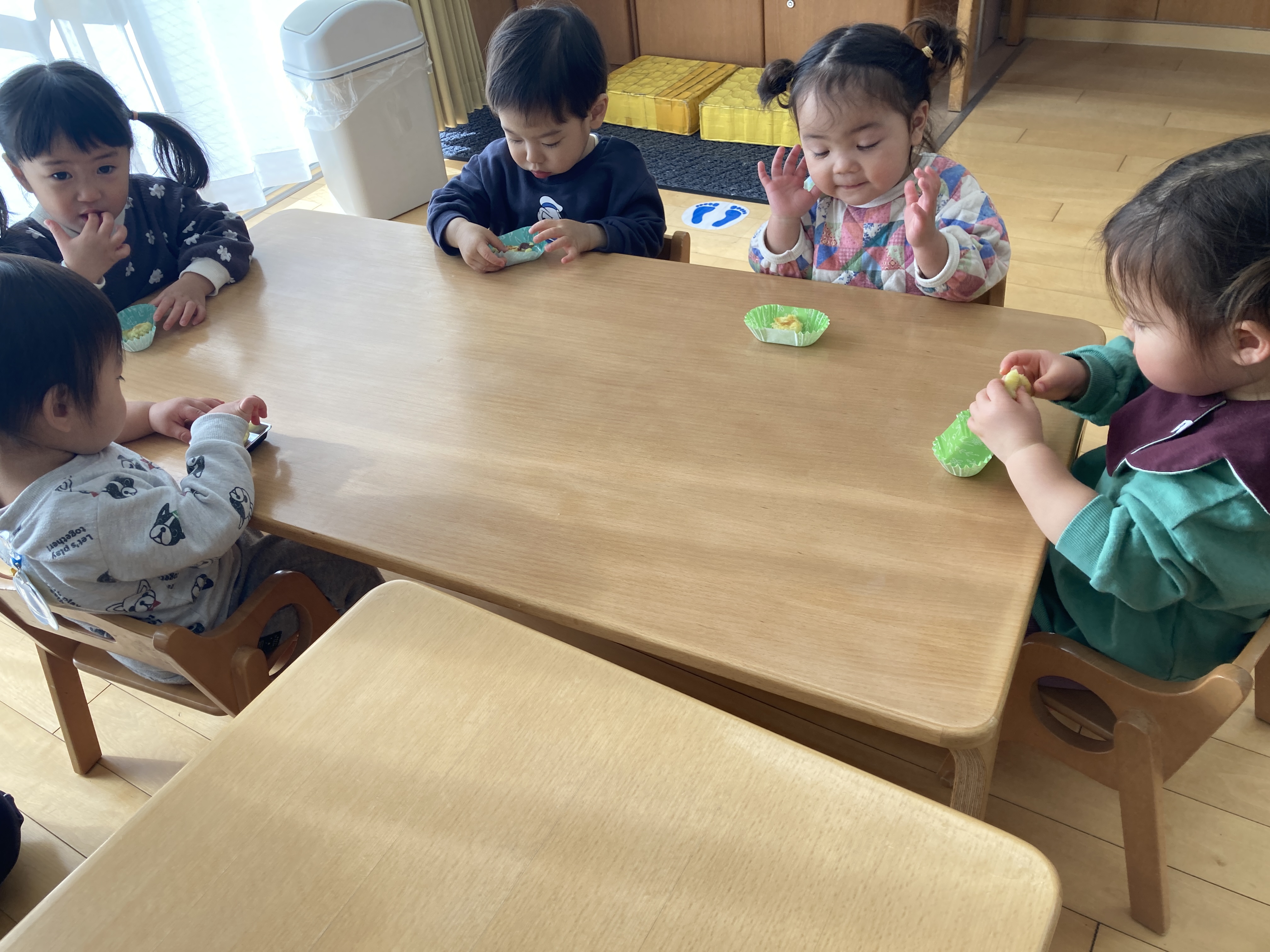 出来上がった、スイートポテトを食べると「美味しい」「おかわりしたい」と大喜びでした。