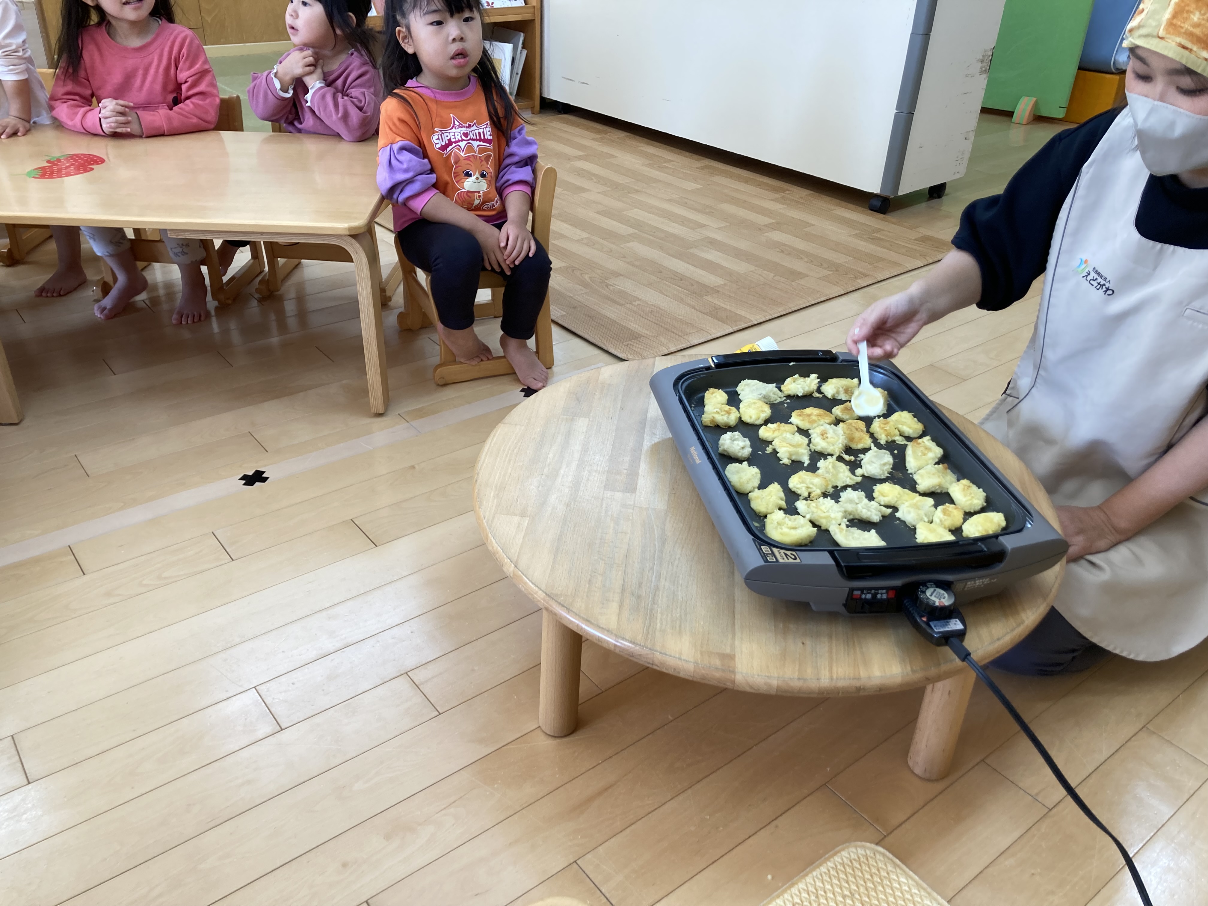 ホットプレートで焼くと「いい匂いしてきた~」「早く食べたい」「美味しそう」という声が聞こえていました。