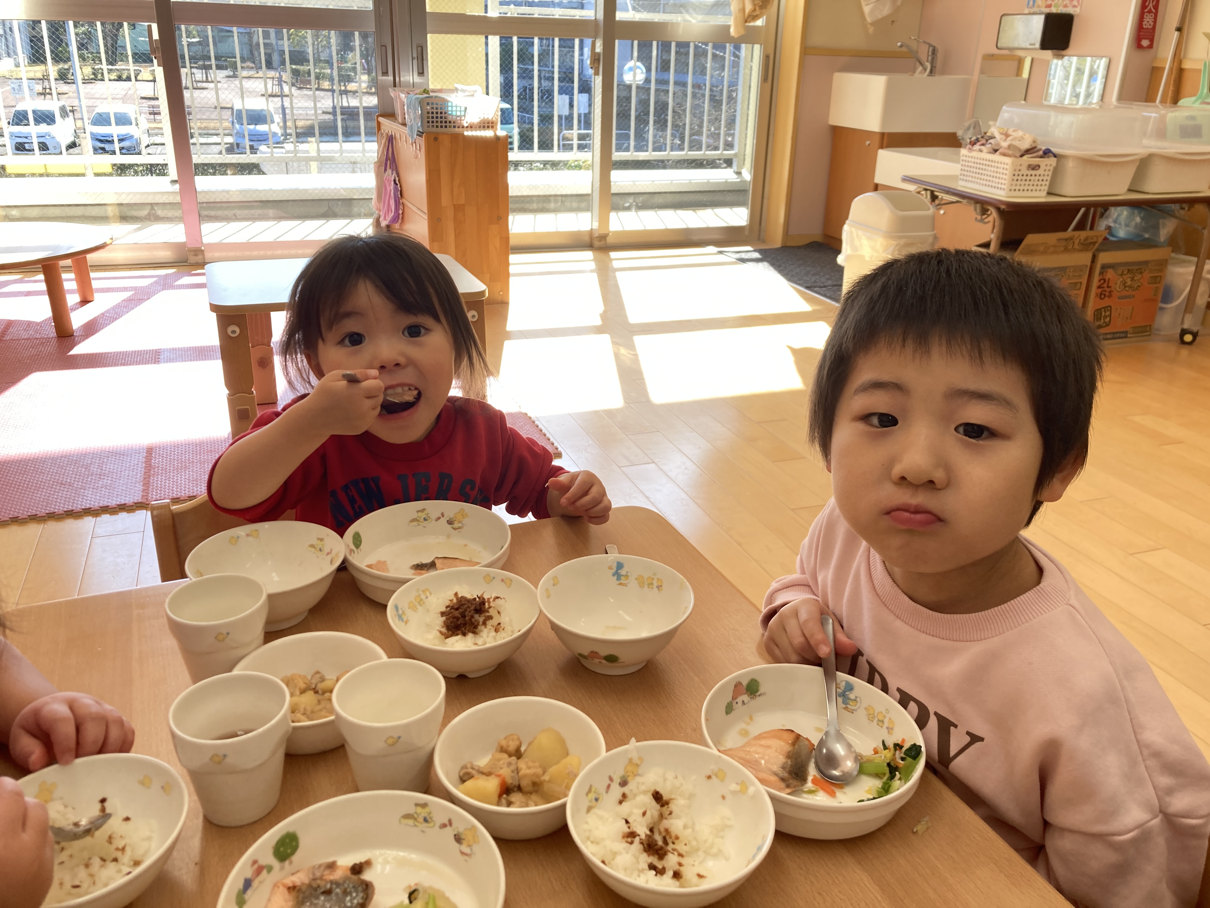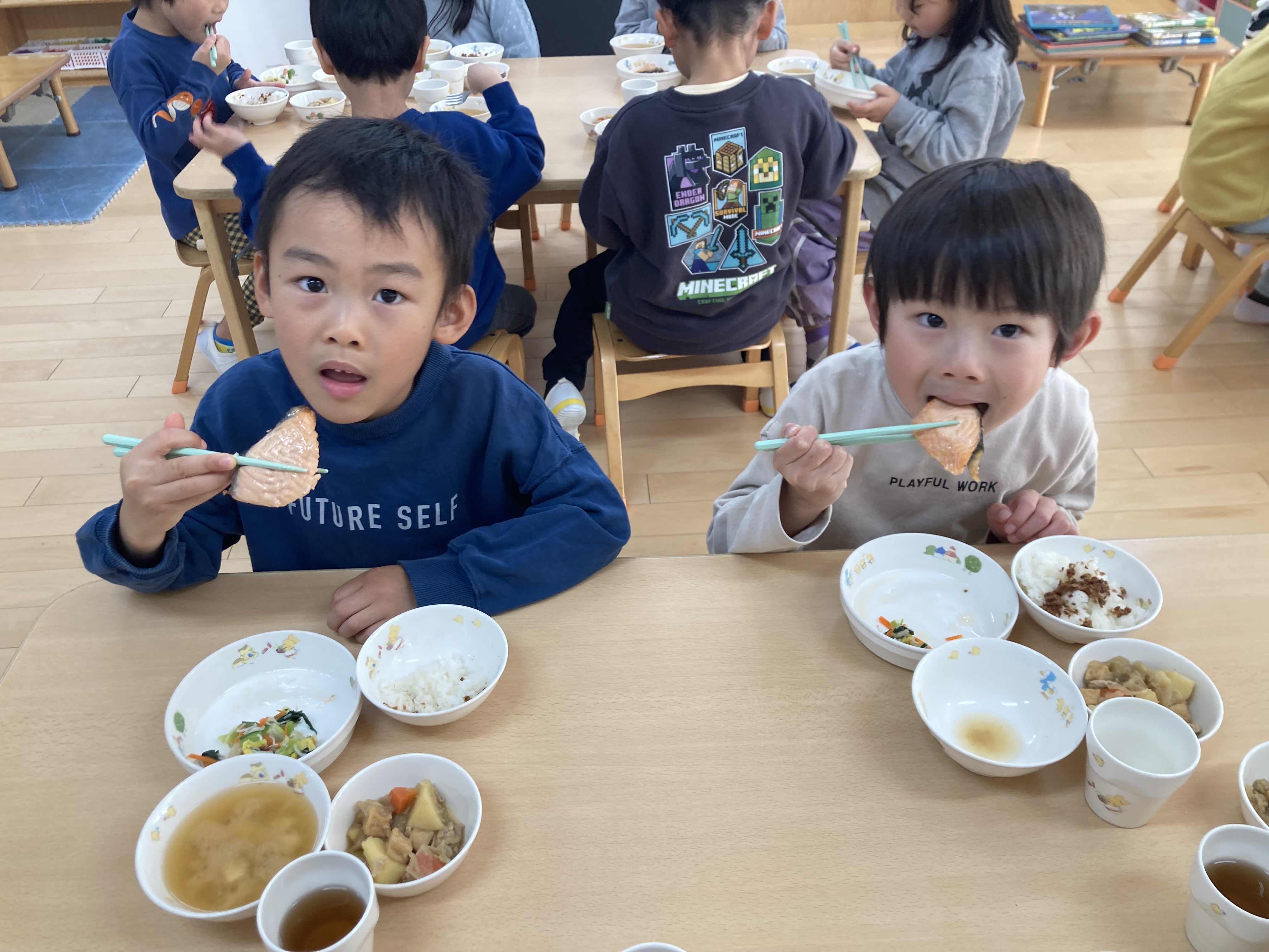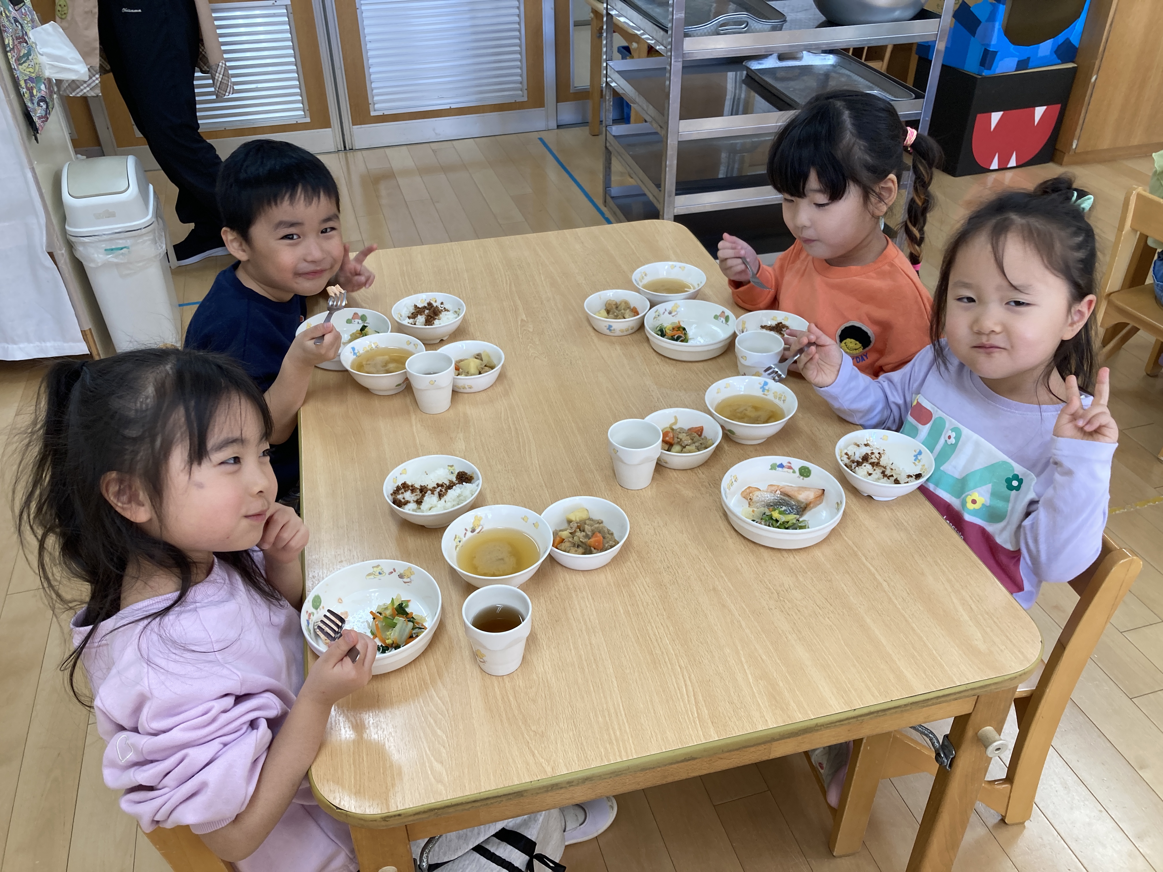 給食で美味しく頂きました。「美味しい」と子ども達から声が上がっていました。