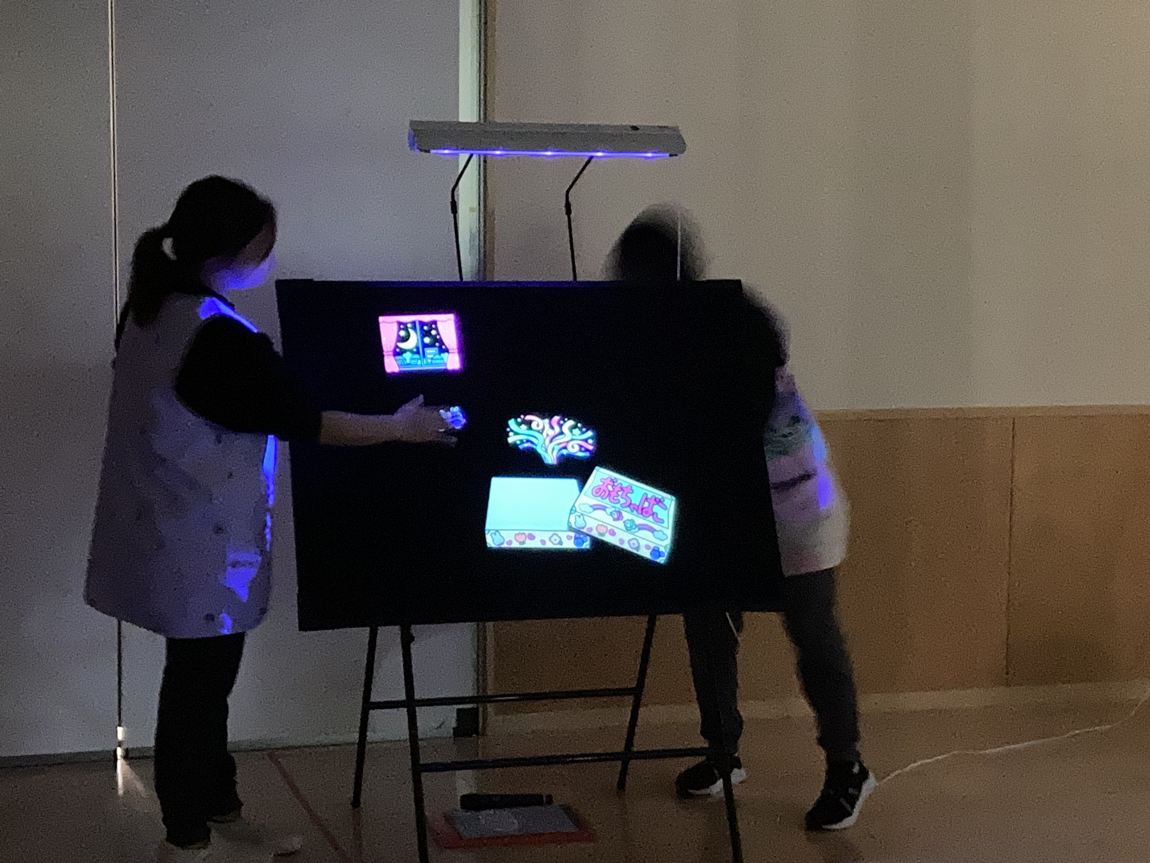 ブラックライトに照らされて、上履きや白いお洋服が光りだすと、 「光ってる〜✧˖°」と嬉しそうな声✧見慣れたものが、光りだすと不思議な体験に、心もぱっと明るくなりました✧♡