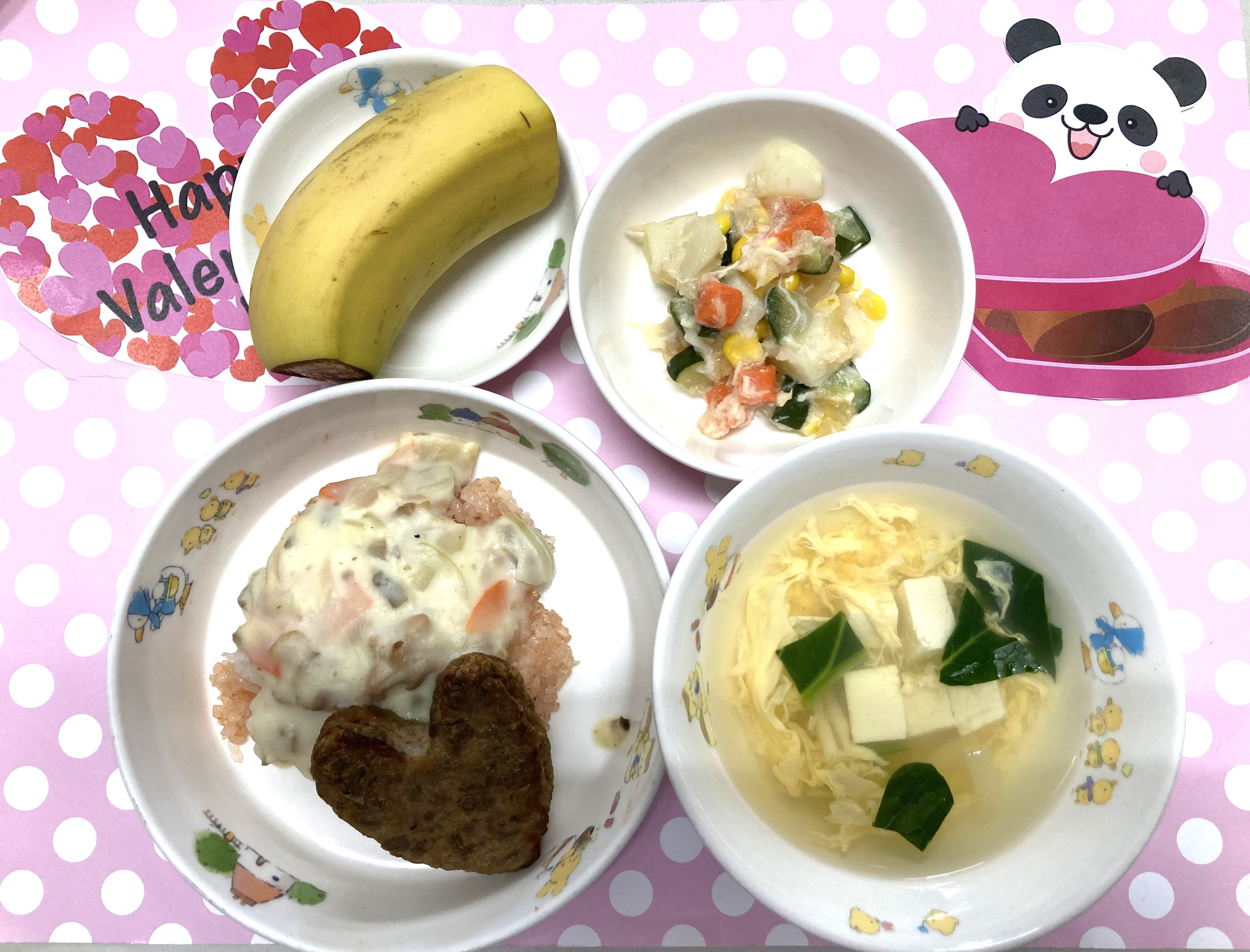 新堀おひさま保育園の今日の献立もバレンタインを感じられるメニューでしたよ♪