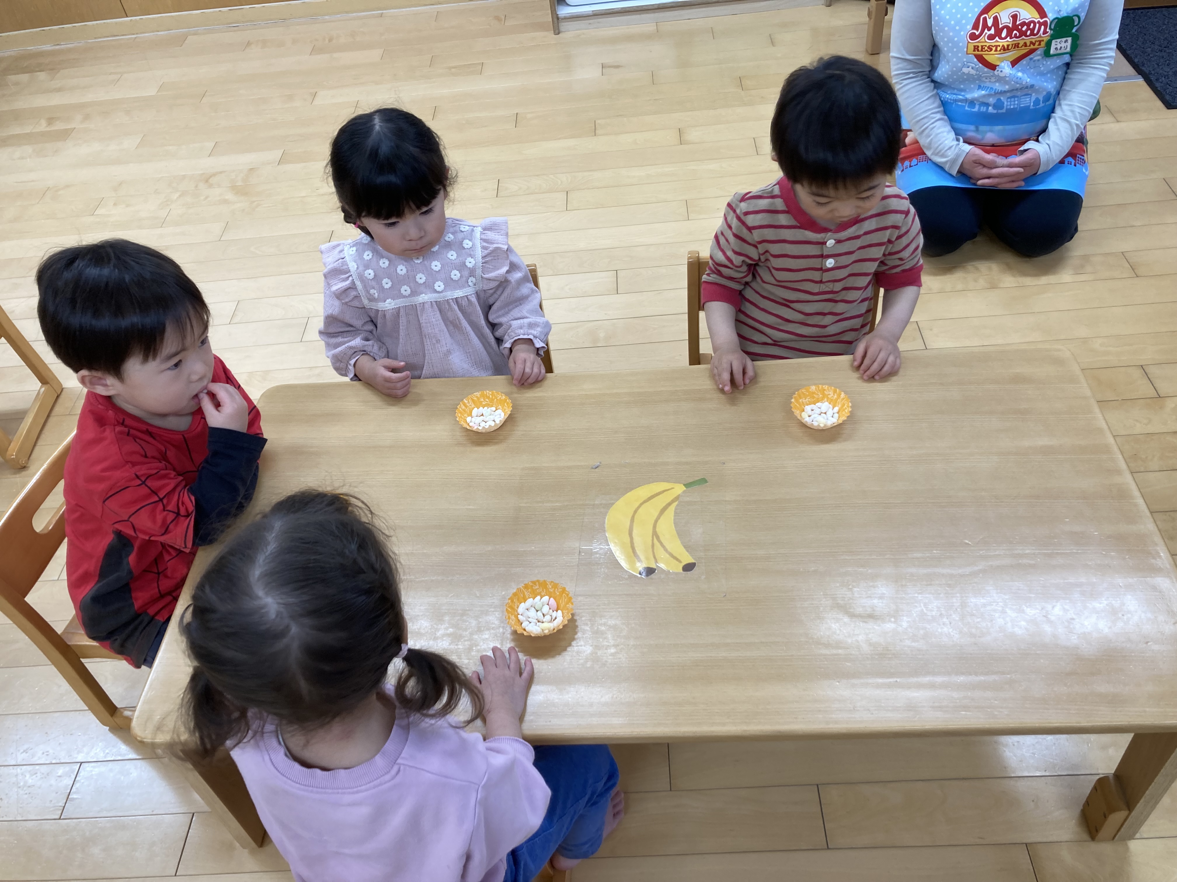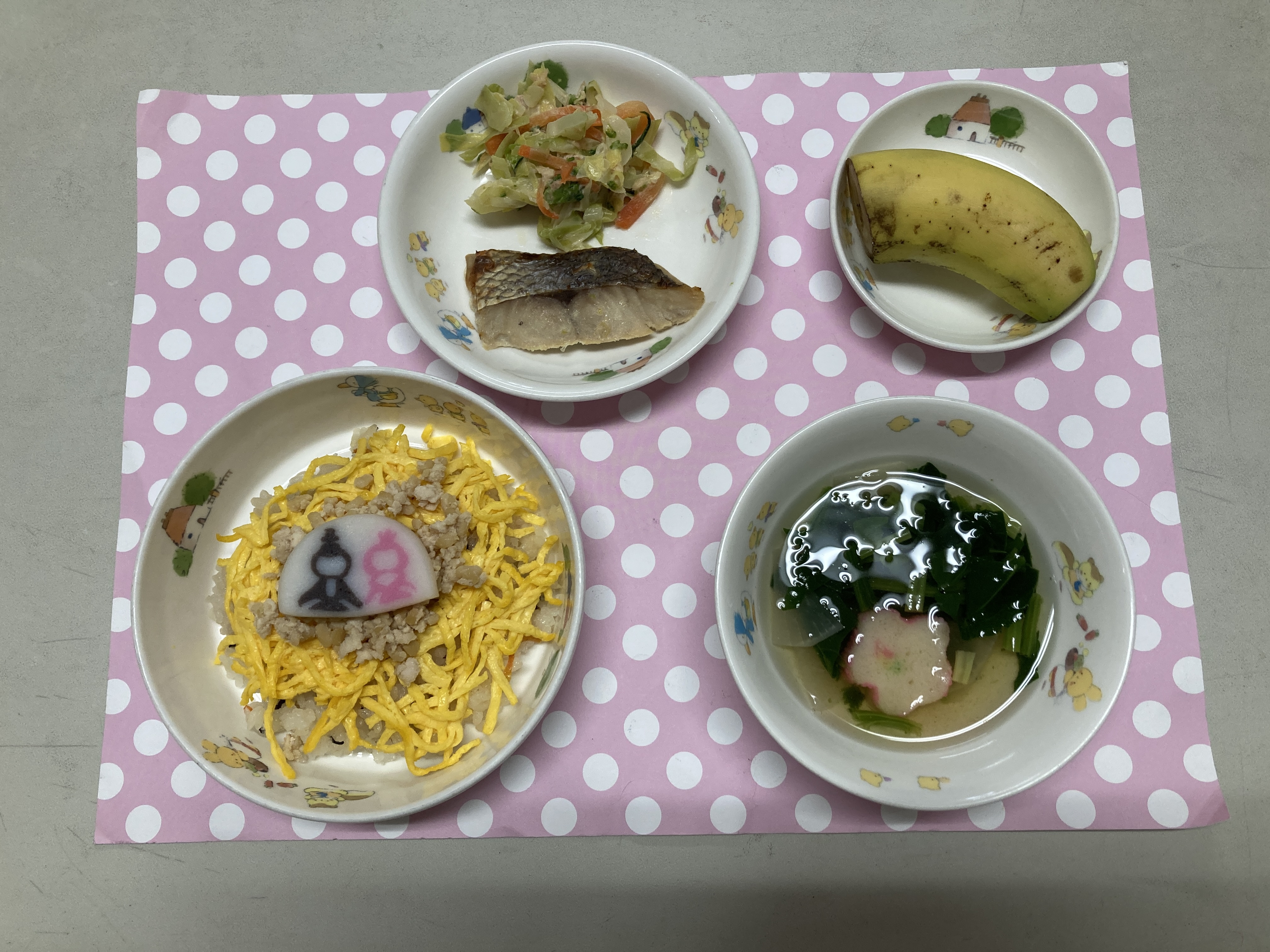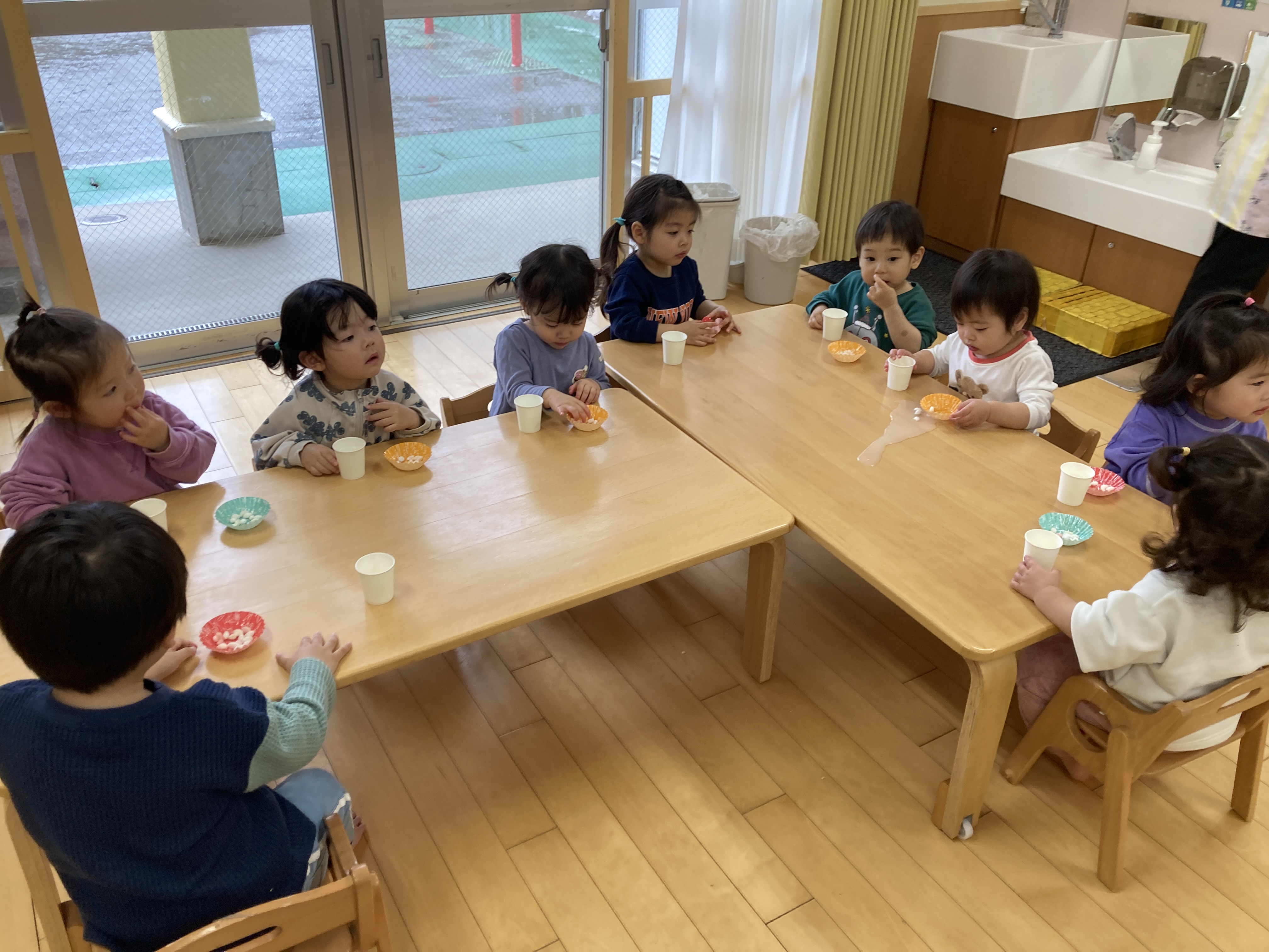 みんなで「いただきます」とご挨拶をして、美味しく頂きました。ひなあられを一粒ひとつぶ大事そうに食べていました。