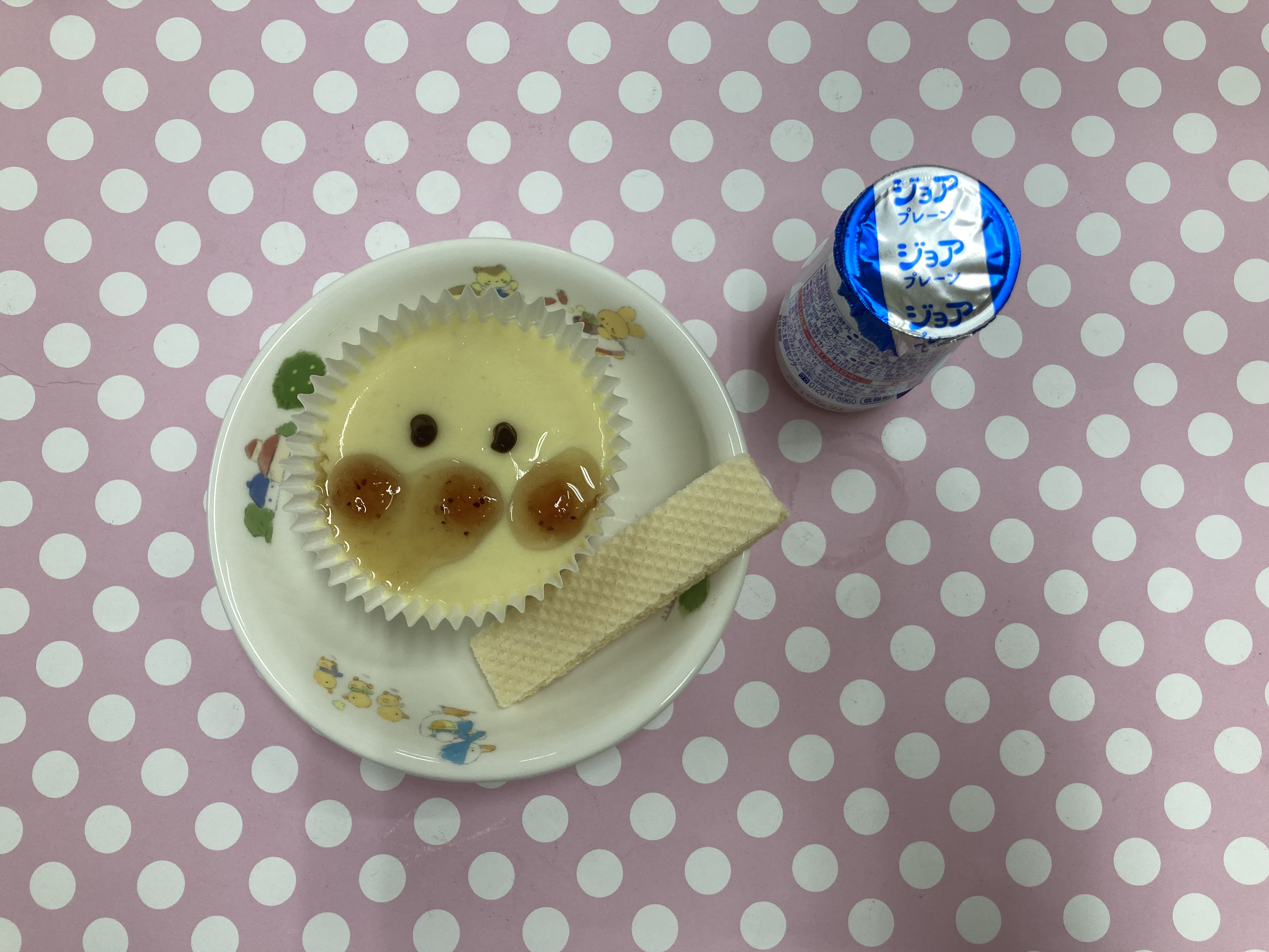 可愛らしいバナナプリンをニコニコで食べていました。