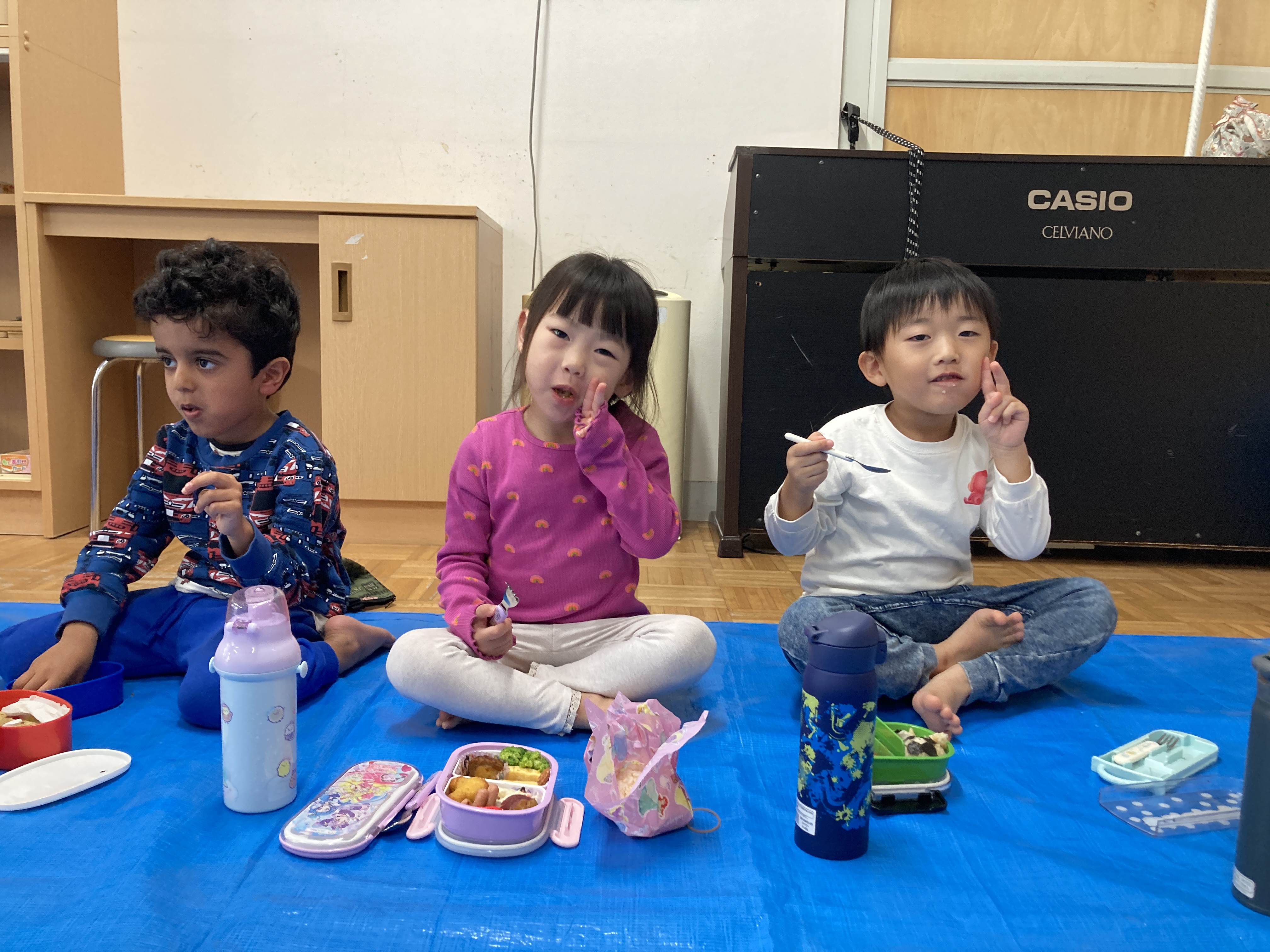 3歳児くるみ組の遠足の様子を紹介します。 初めてのお弁当がとっても嬉しそうでした。