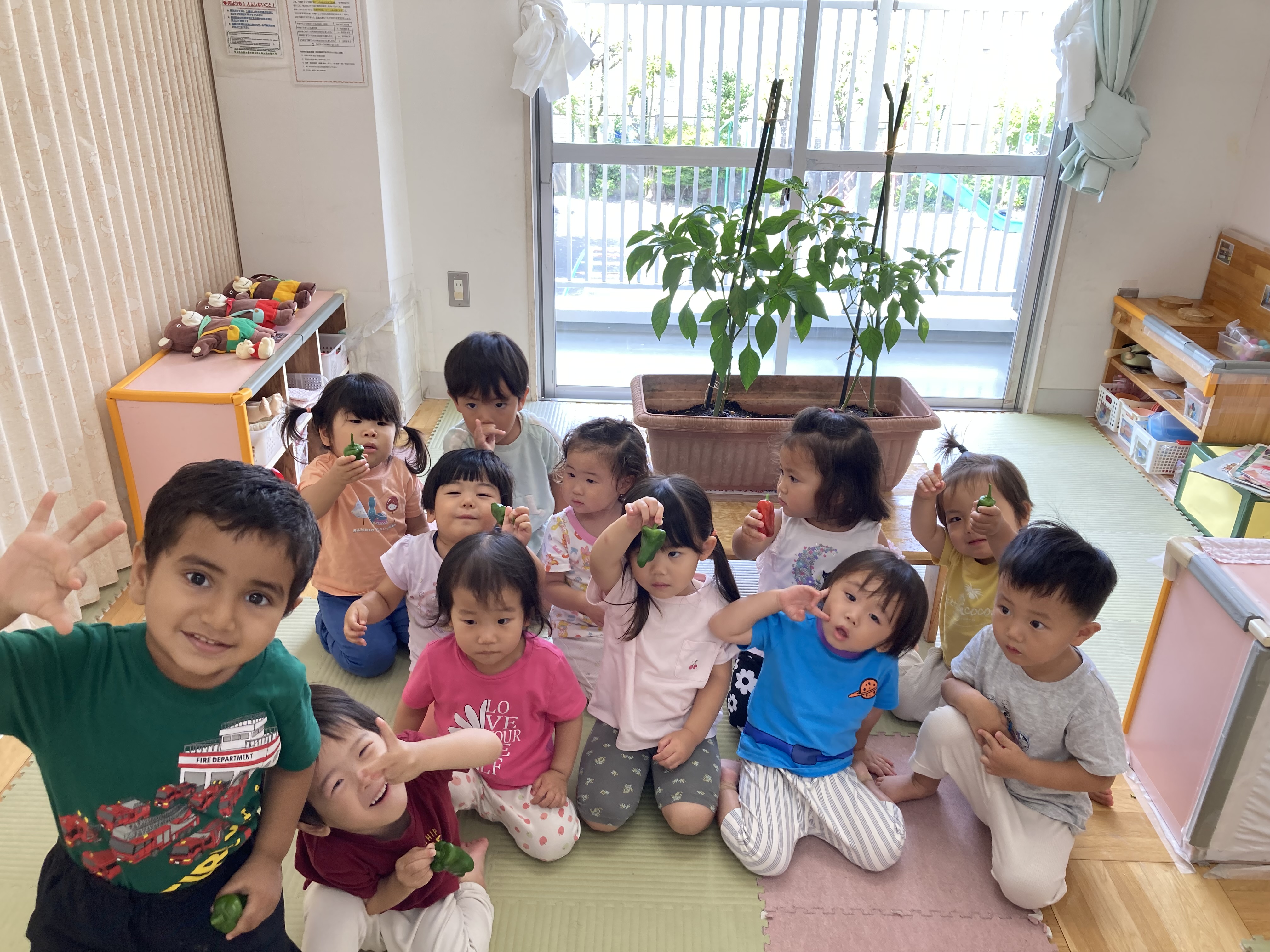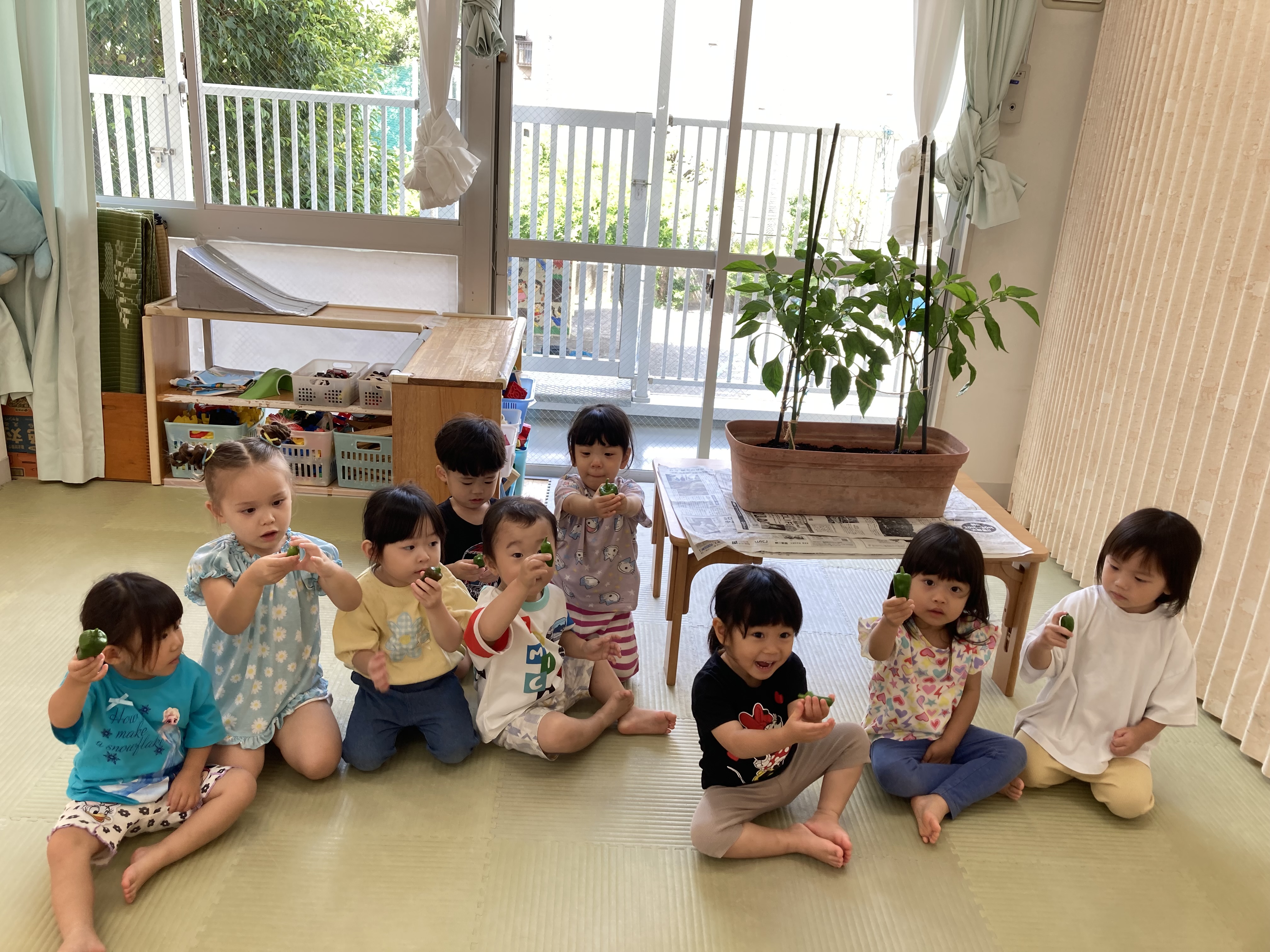 日々生長するピーマンに「大きくなったね!」と興味津々な子ども達♪