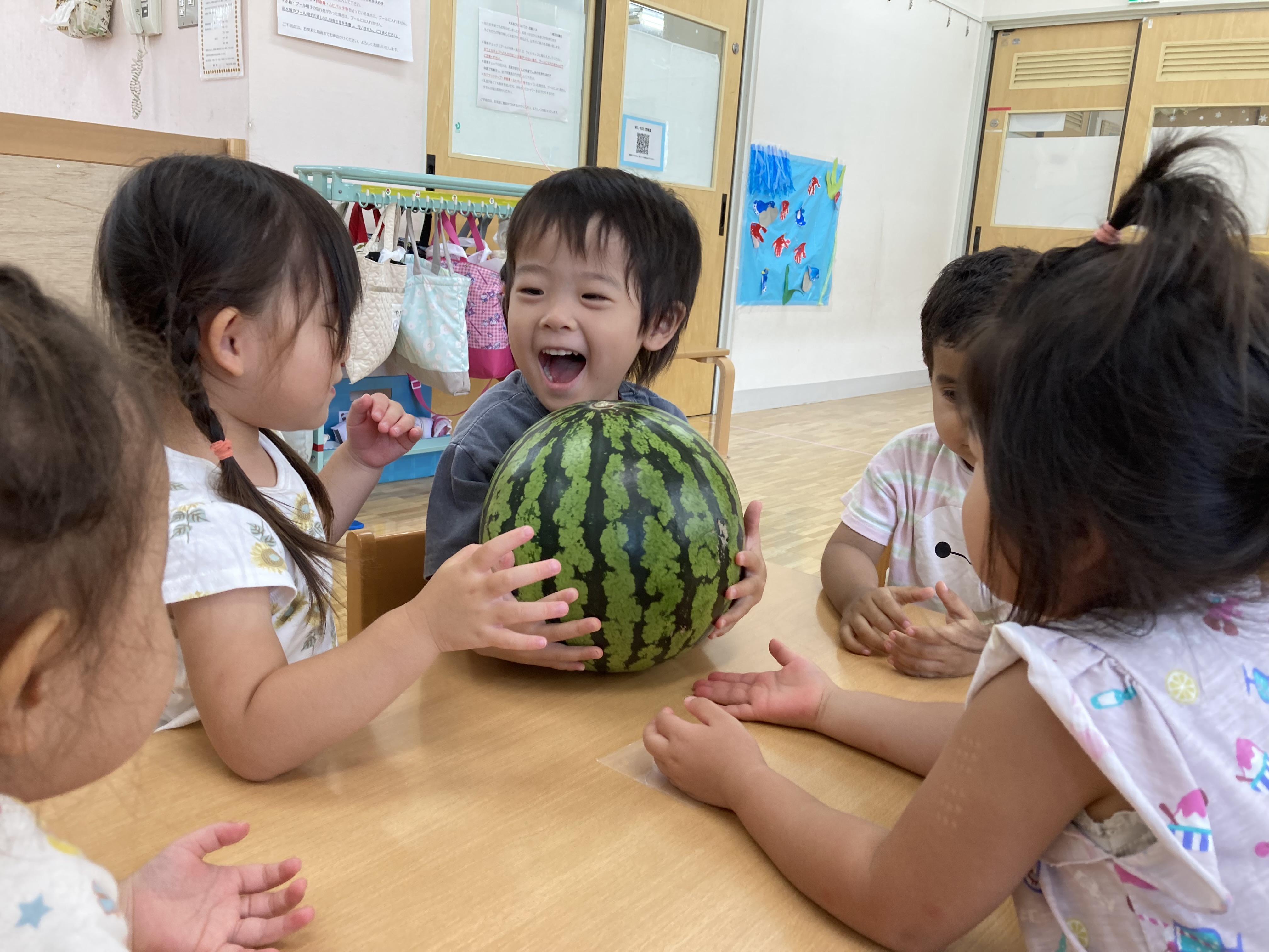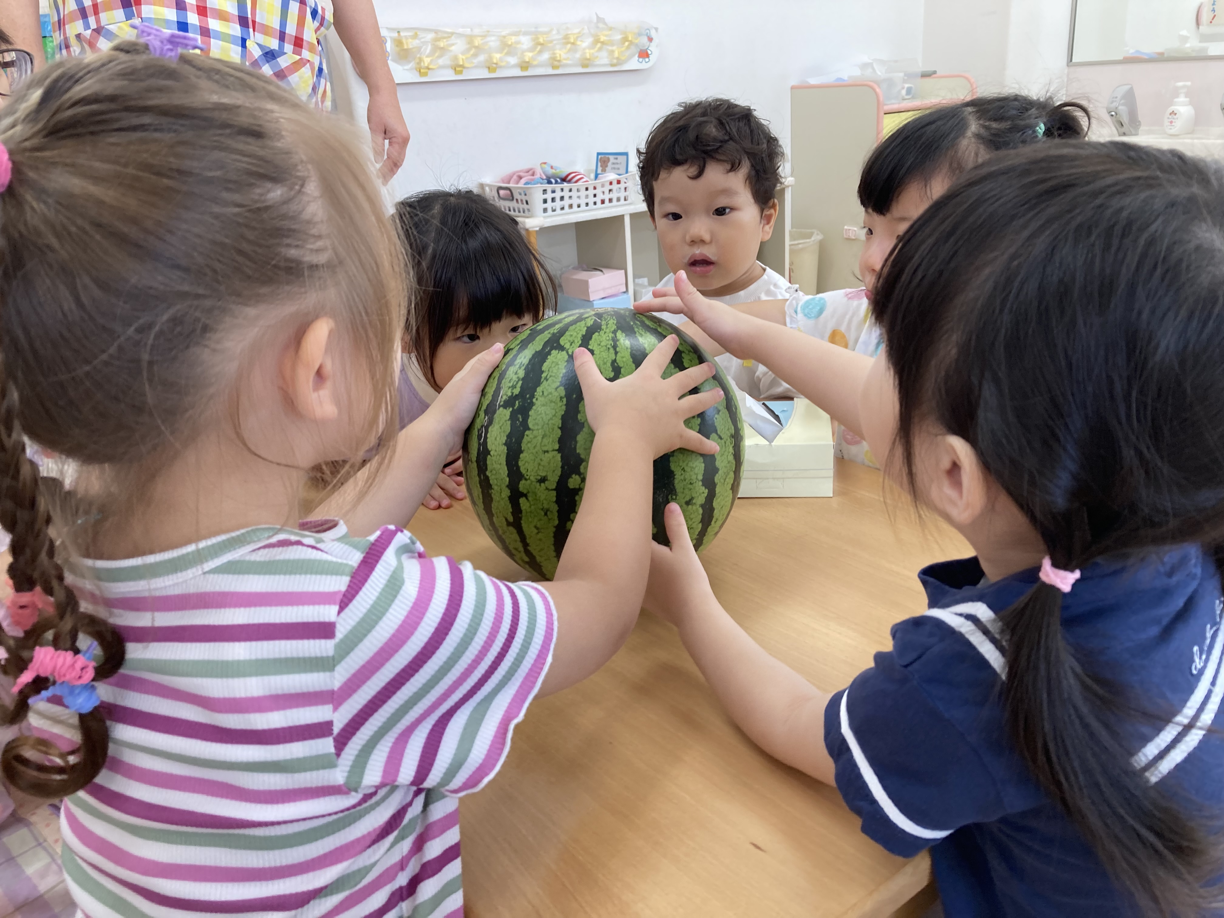 大きなスイカに興味津々な子ども達♪