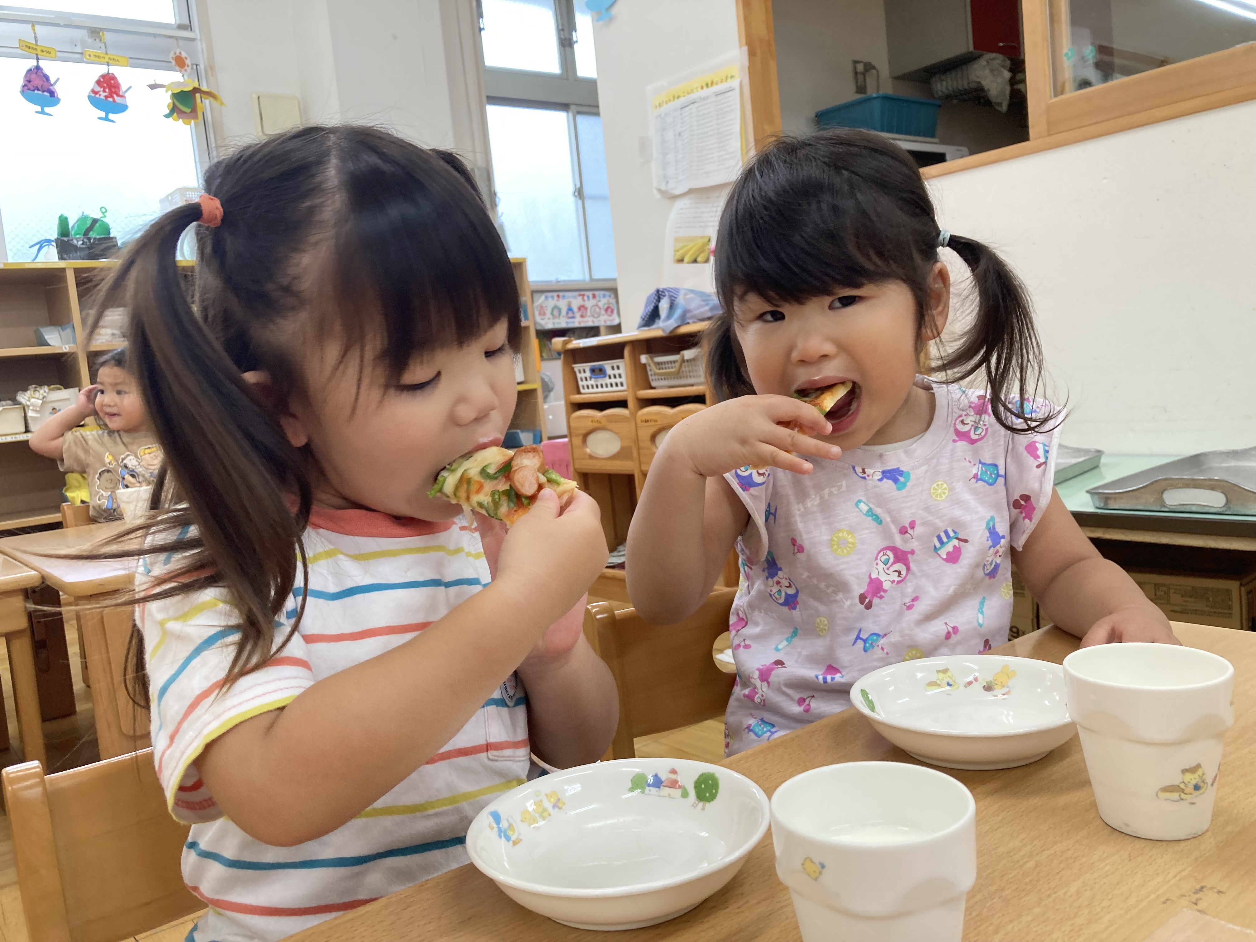 「ピーマン好き!」と言って、野菜が苦手な子も進んでピーマンを食べる姿がありました。