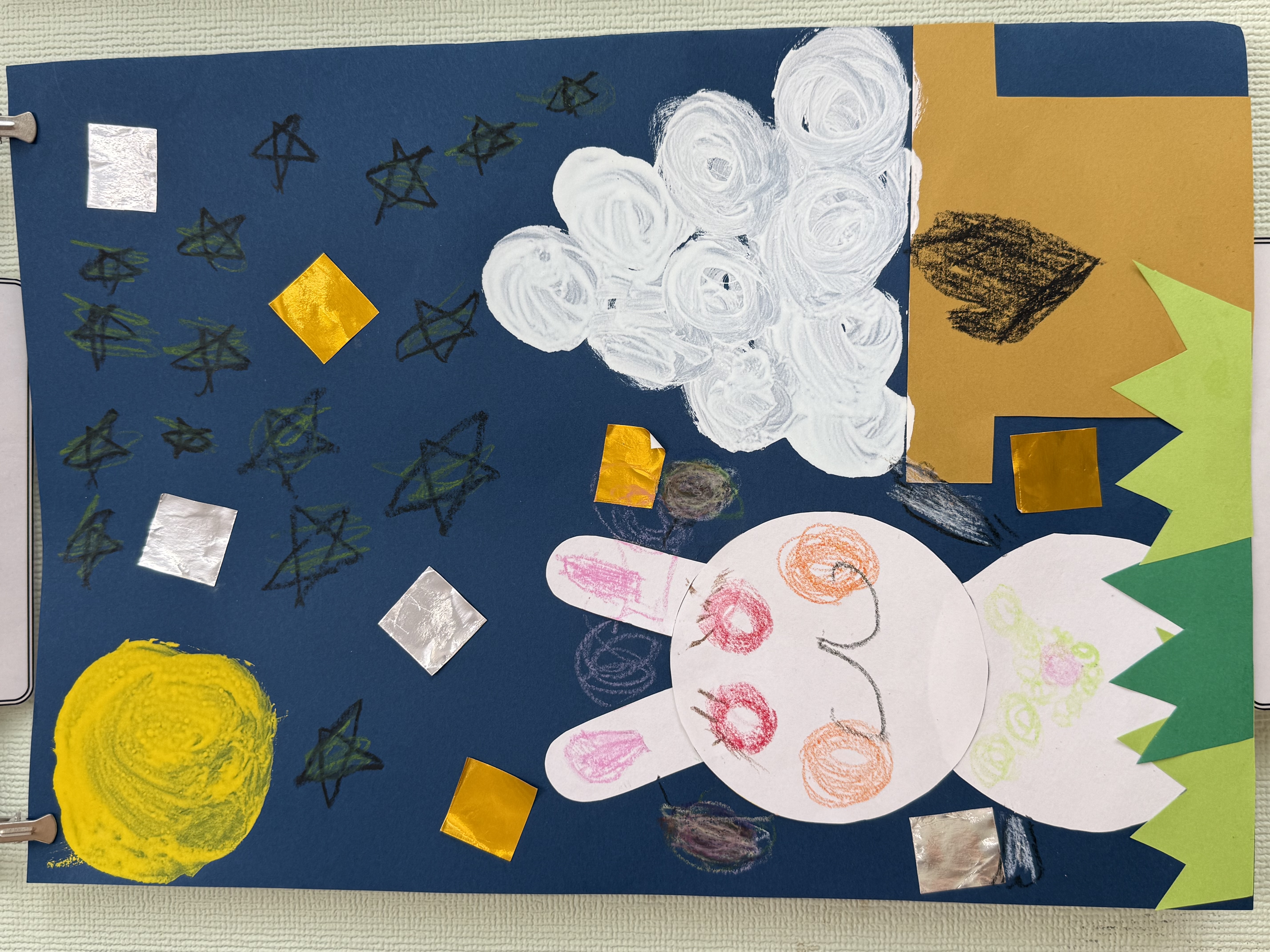 「お月様綺麗だね!」と、完成した作品を見てうっとりした表情をした子も多かったです。