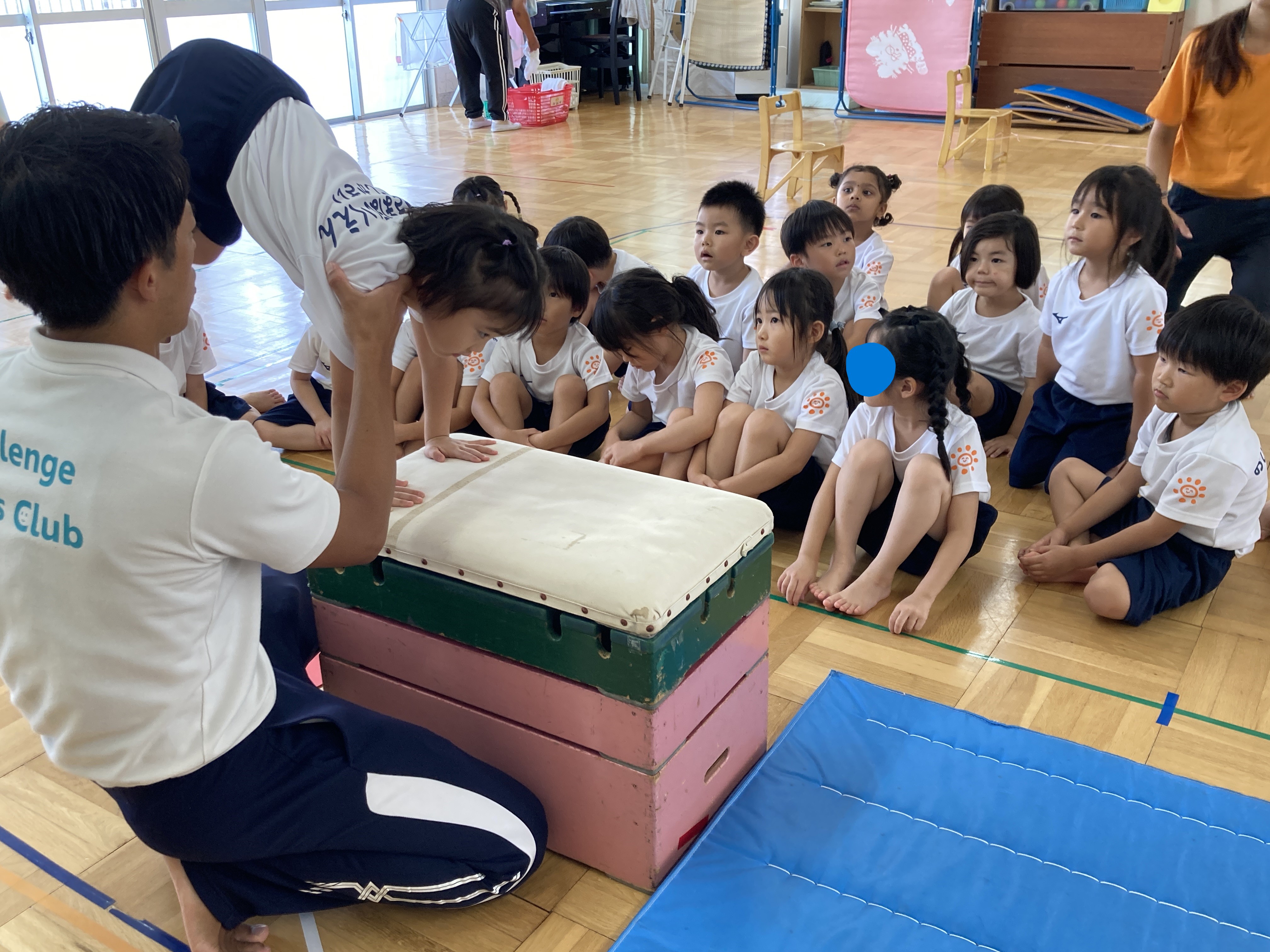 マットの上で前転をしたり、床に手をついて足を高く上げる練習をしたり、成功に向けて、跳び箱以外のトレーニングもたくさんしました。