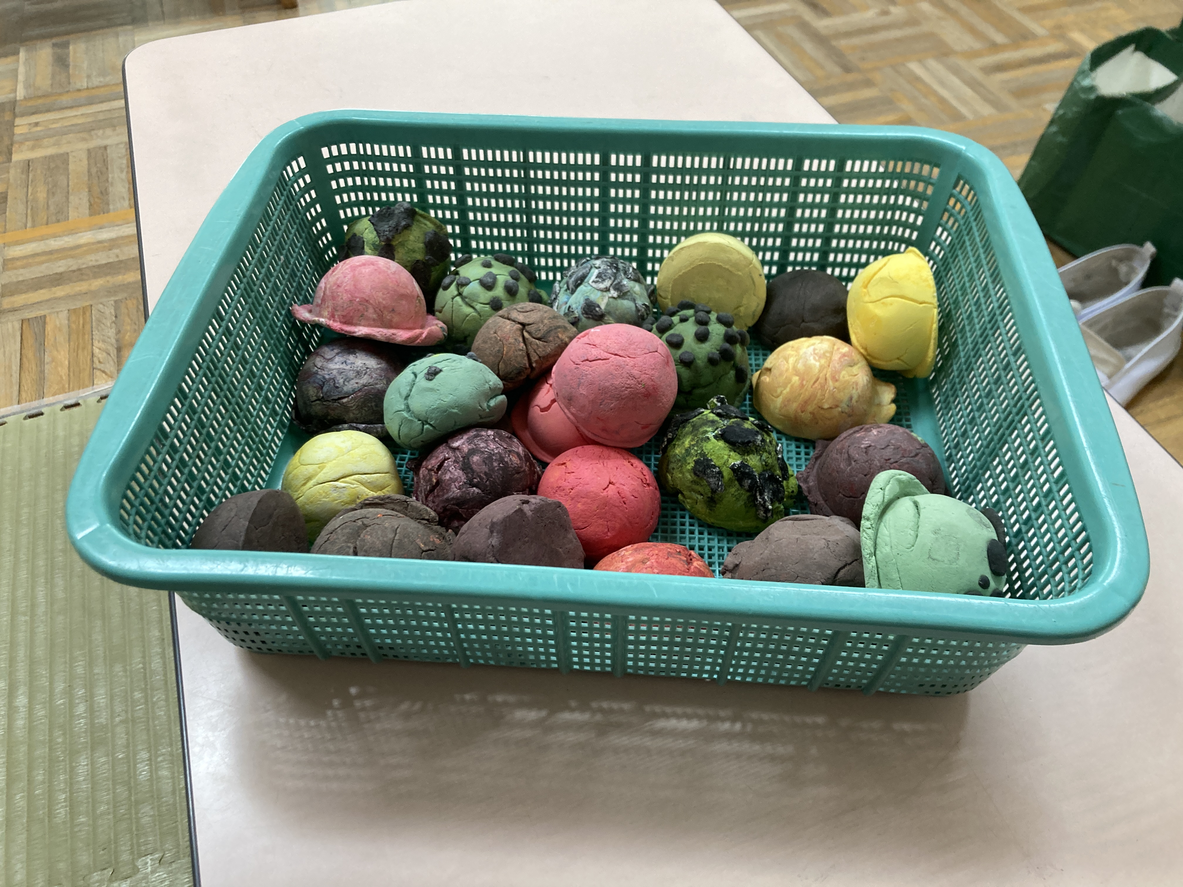紙粘土でアイスも作り、完成後はままごとコーナーの食べ物に新たに追加になりました。