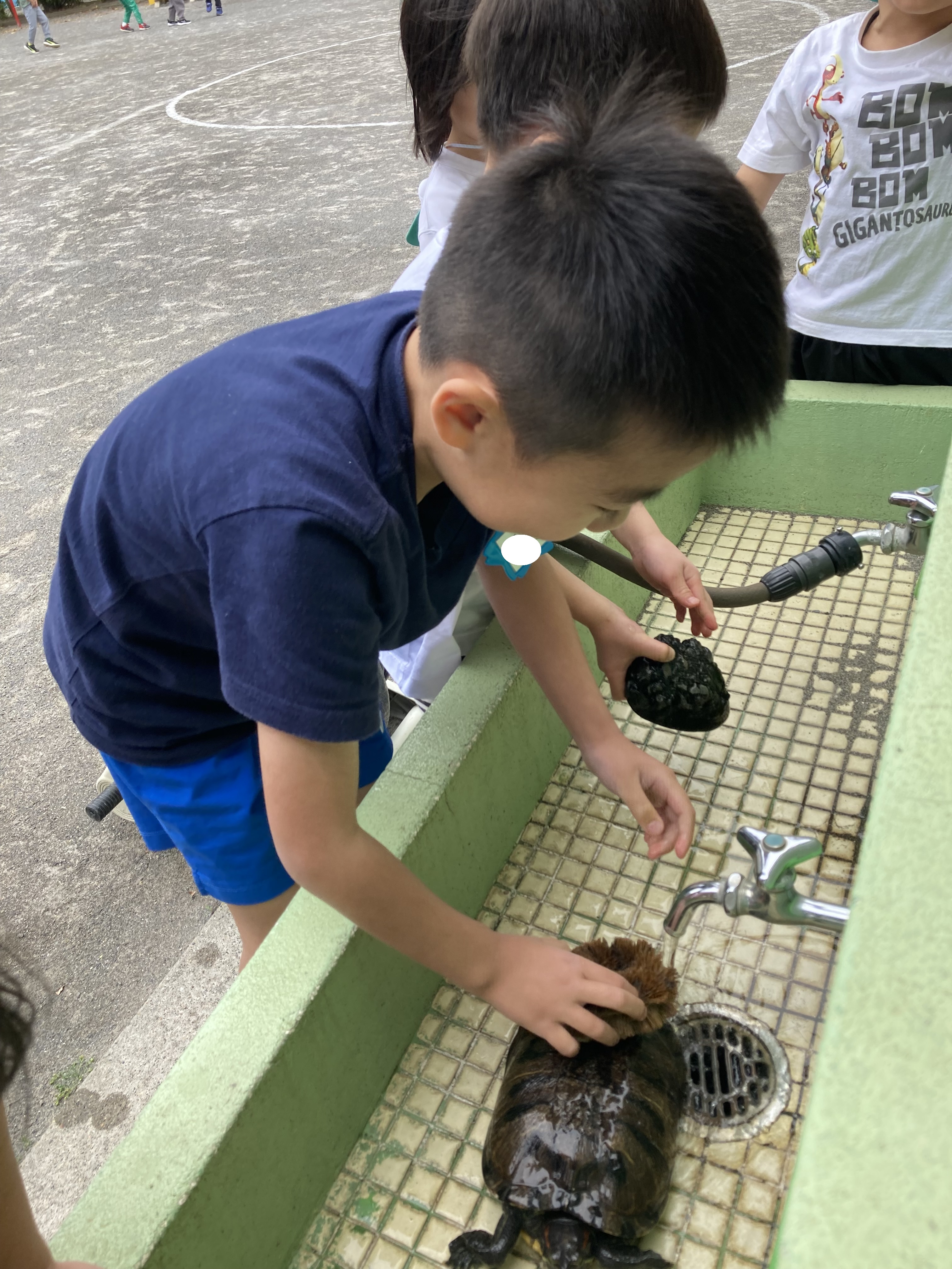 他にも乳児クラスが特に大好きな亀の世話を毎日したり、