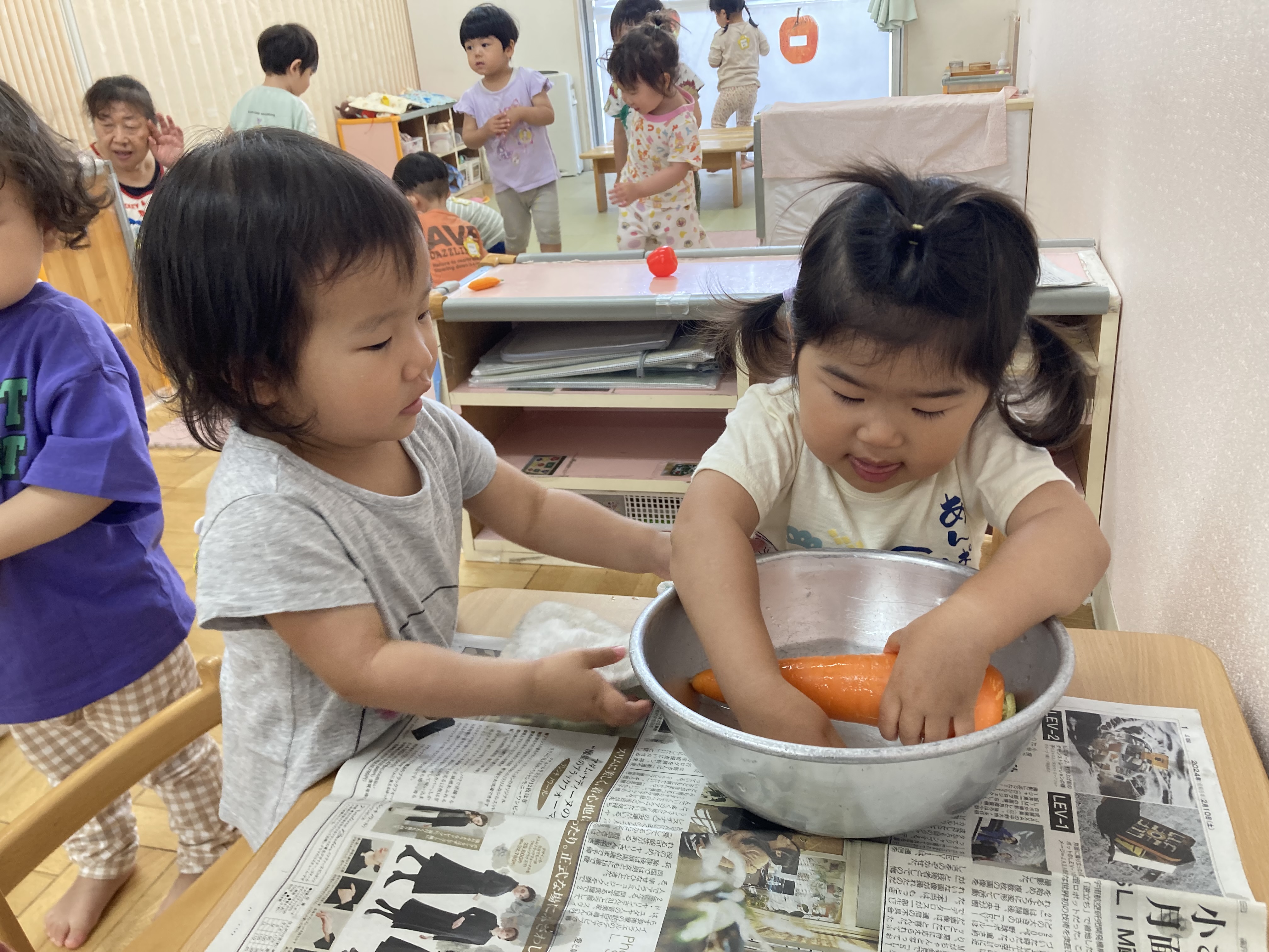 給食さんのお手伝い、食育として様々な野菜に触れてきました。