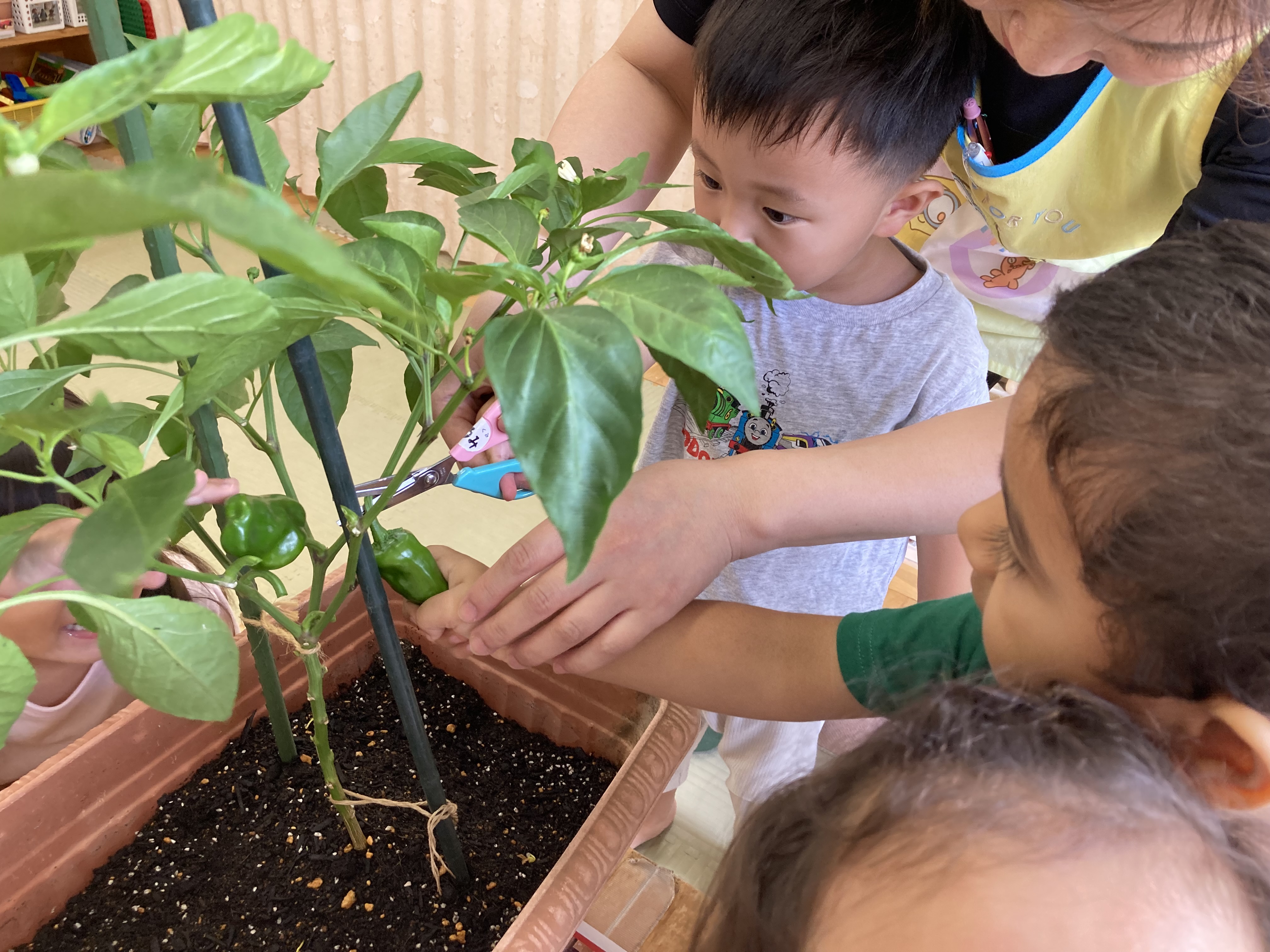 苗からピーマンの生長も見守り、実った時には皆で収穫。