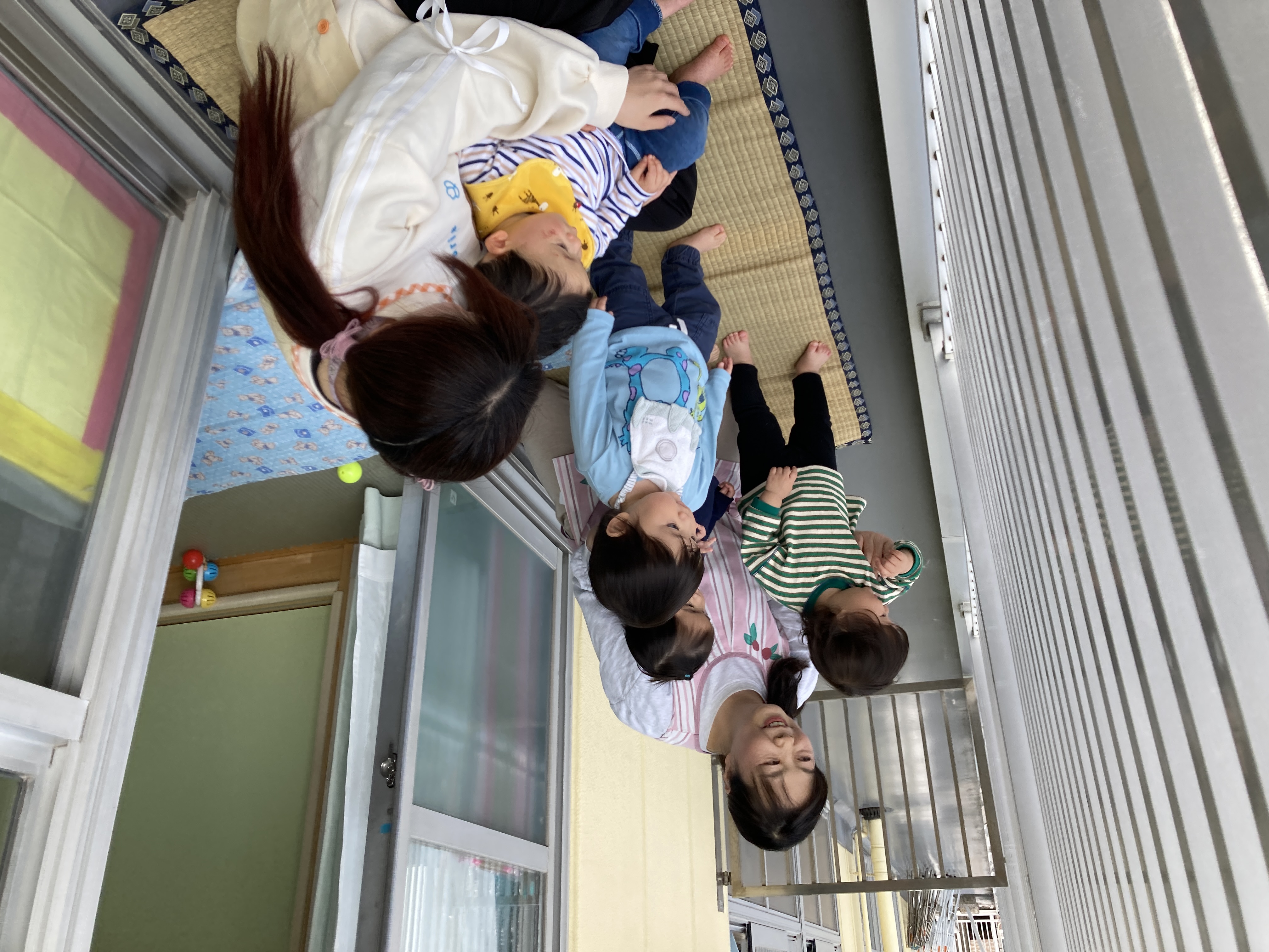 入園した頃は保護者の方と離れて涙も多かったですが、保育室テラスで外気浴をして気分転換。