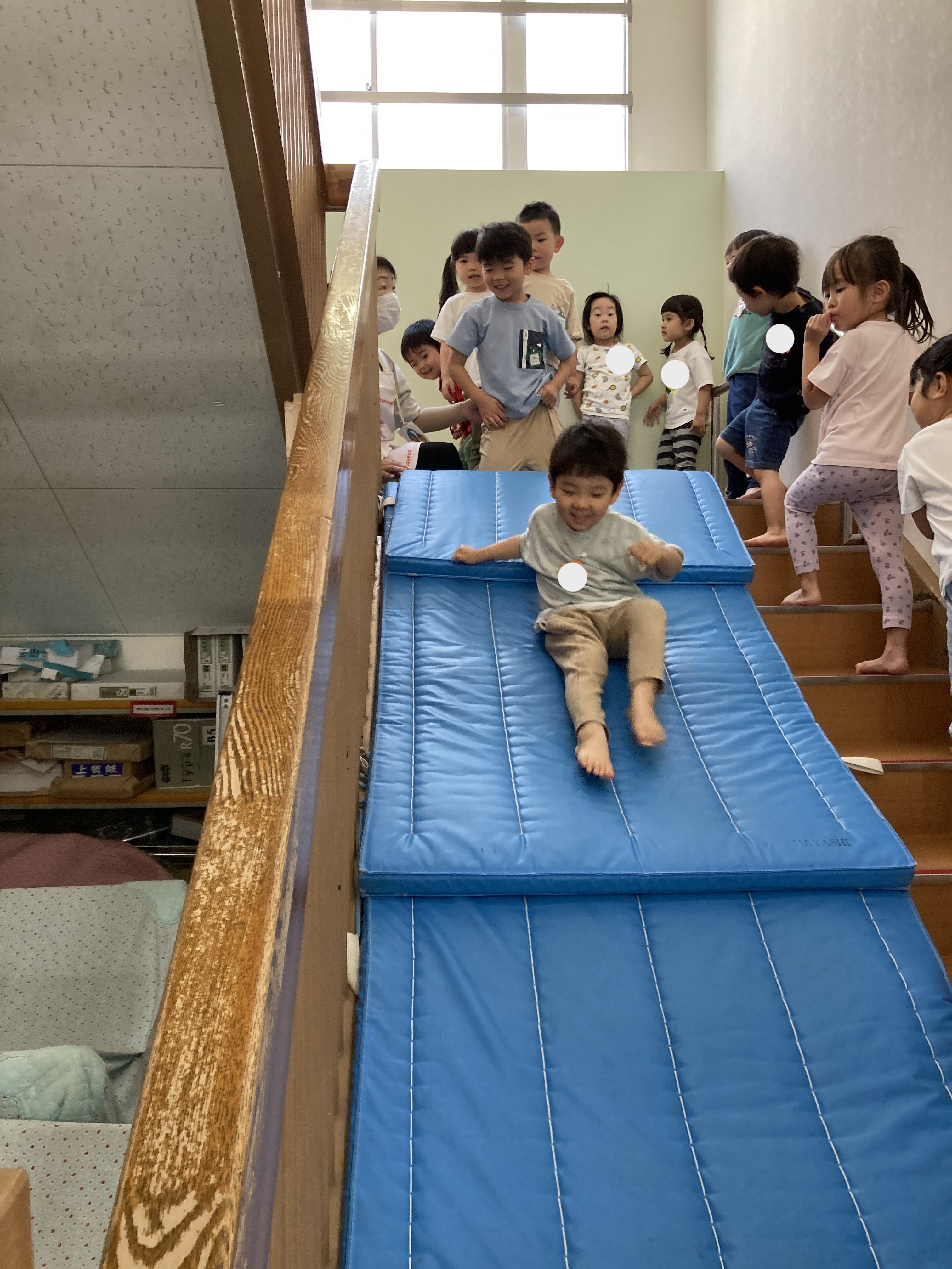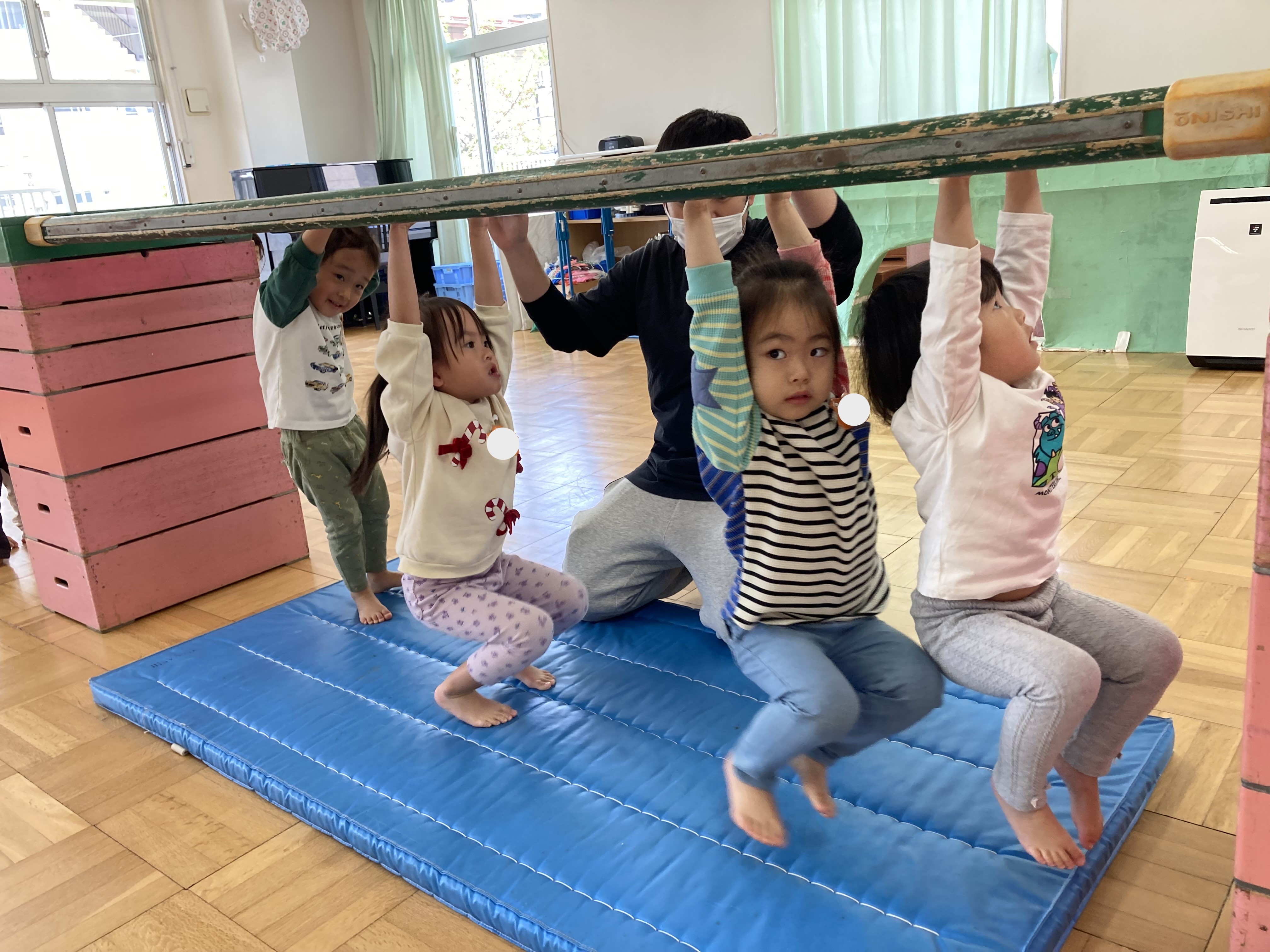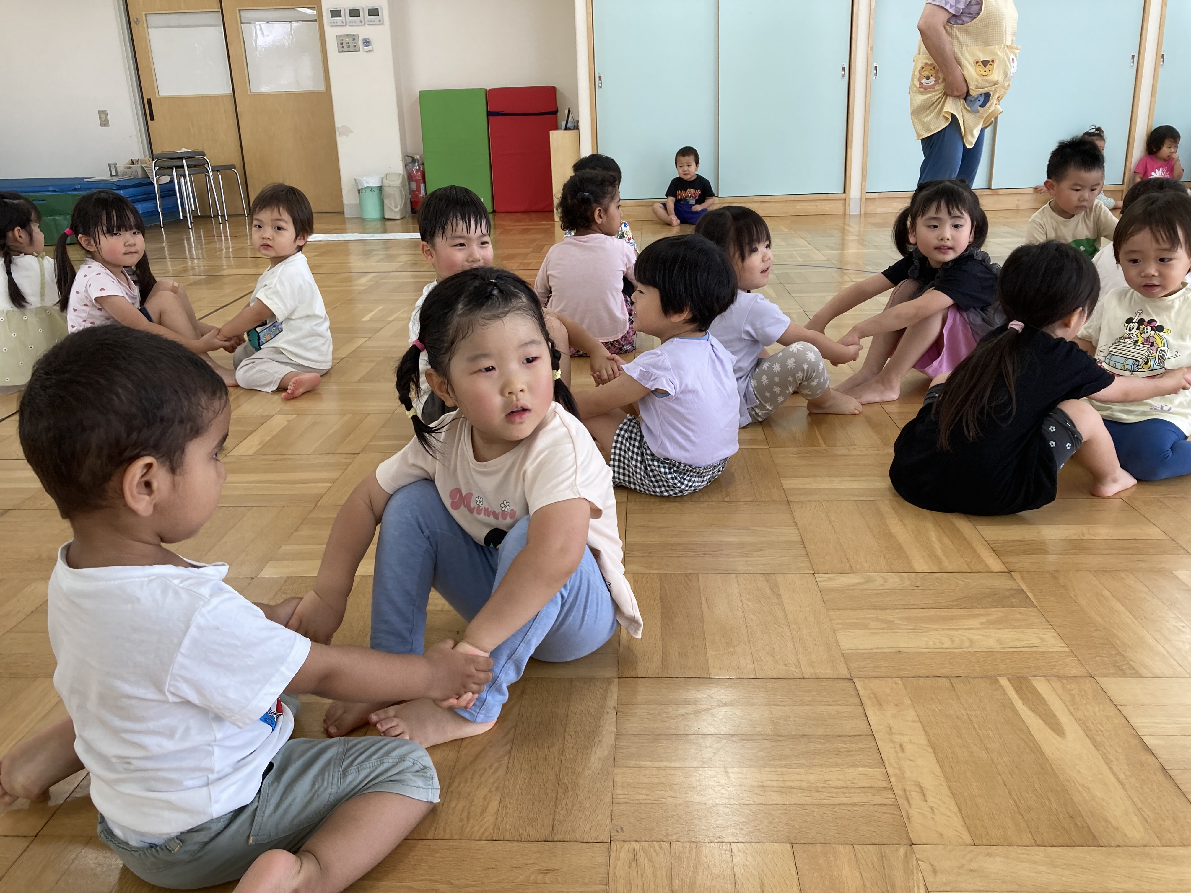 お兄さんお姉さんになってきて、2歳児クラスのお友達と一緒に、リズム遊びもしました。